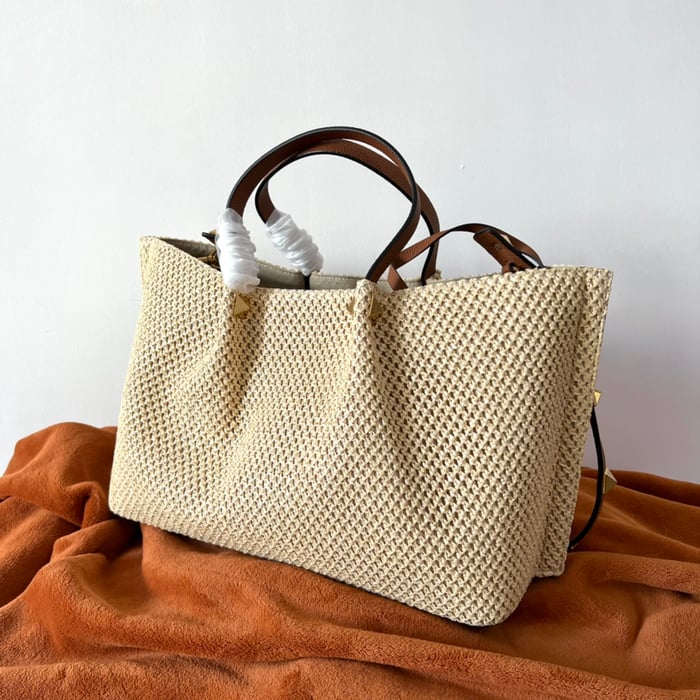 Home Shop All Bags Valentino Valentino Garavani Summer Woven Natural Brown Leather Tote Bag 35cm/13.8in