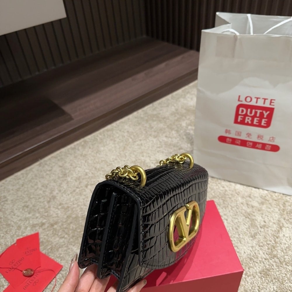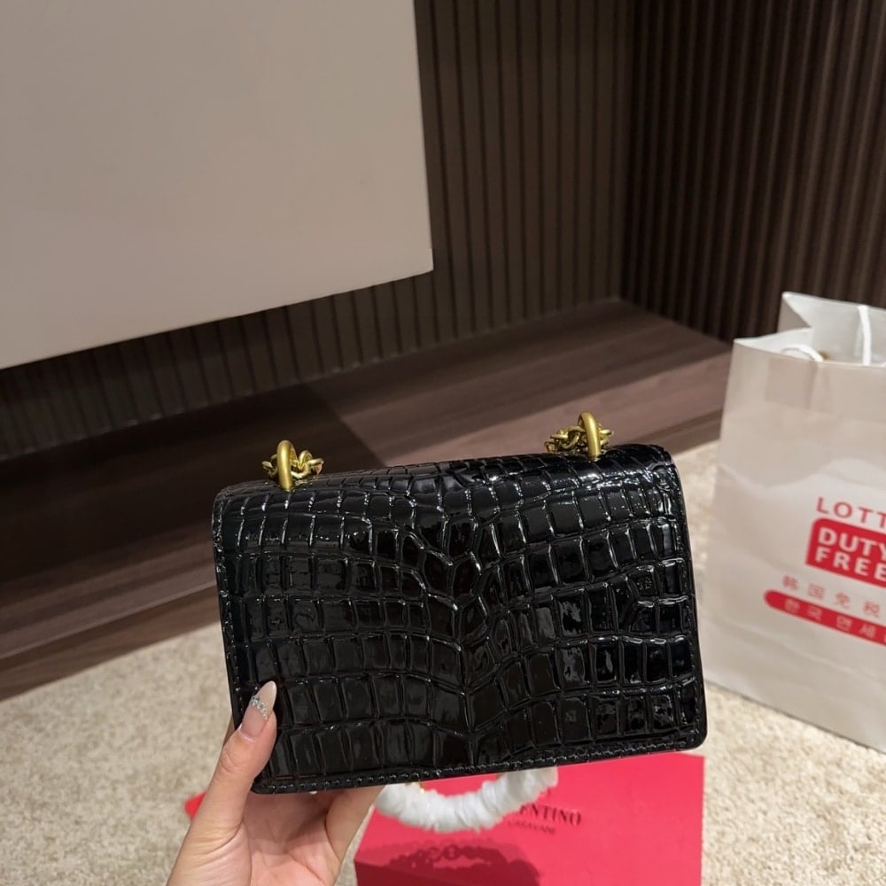 Valentino Garavani Vain Small Shoulder Bag In Crocodile Black 19Cm 6W0B0R17Tvg 0No