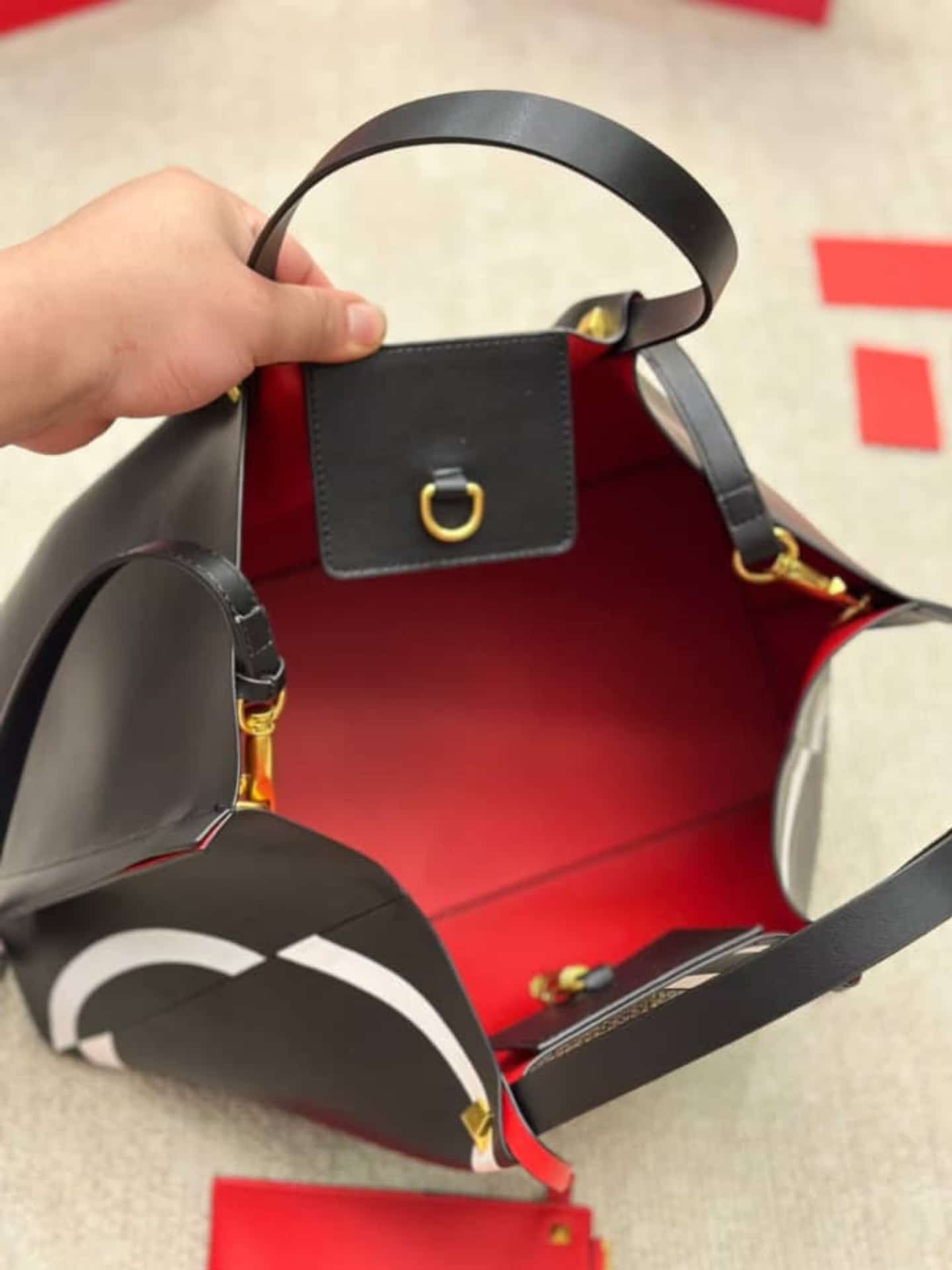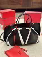 Valentino Garavani Vlogo Escape Calf Leather Tote Bag In Black 38Cm