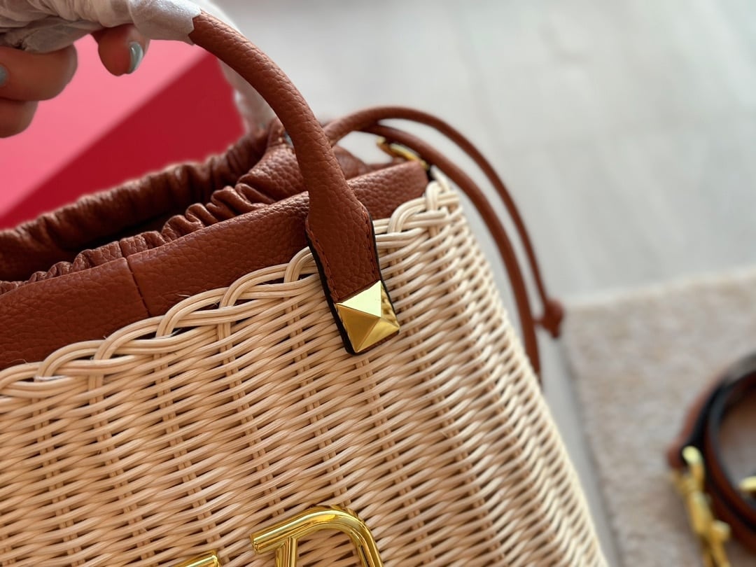 Valentino Garavani Wo Vlogo Small Wicker Basket Bag Beige 25Cm Xw2B0K41Ymp 43S
