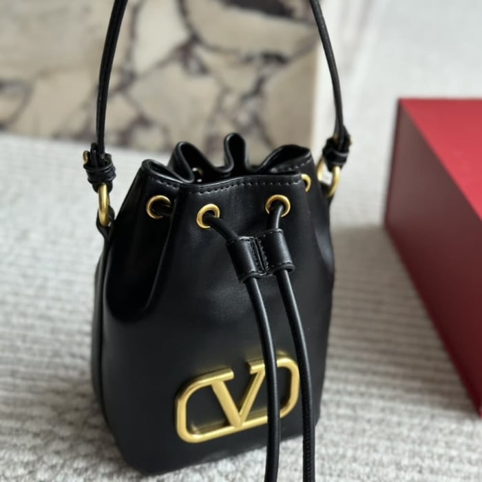 Valentino Mini Vlogo Signature Bucket Bag In Nappa Leather Black 22Cm 5W2P0Z44Vnl 0No
