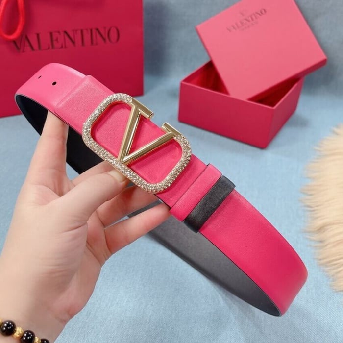 Valentino Garavini VLogo Pearl-Embellished Reversible Leather Belt