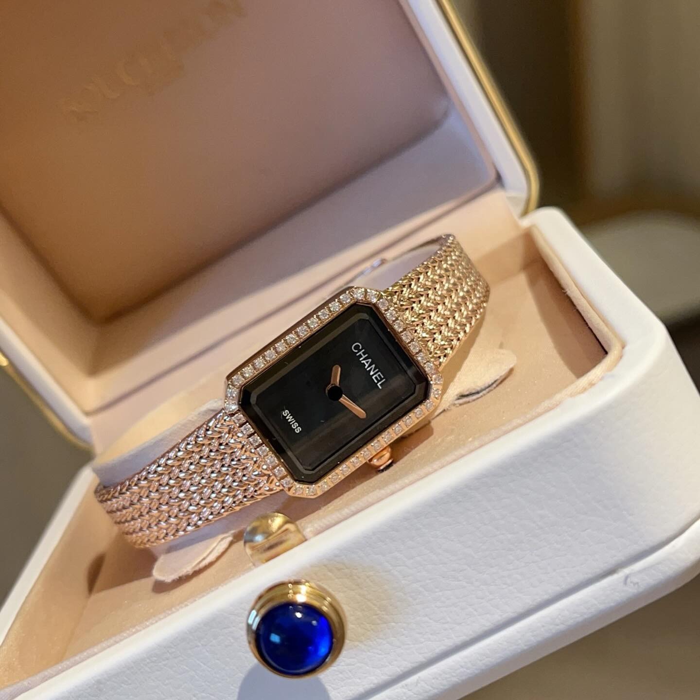 Chanel Première Diamond Mesh Watch Black Dial is a symbol of timeless elegance and sophistication. Each design embodies the distinctive spirit of Chanel – minimalist, refined, yet irresistibly captivating, reflecting the unique style and exquisite taste of the modern woman. Every watch is a masterpiece that represents the philosophy of “simple is elegance,” a hallmark that Chanel has defined in the world of fashion for decades.