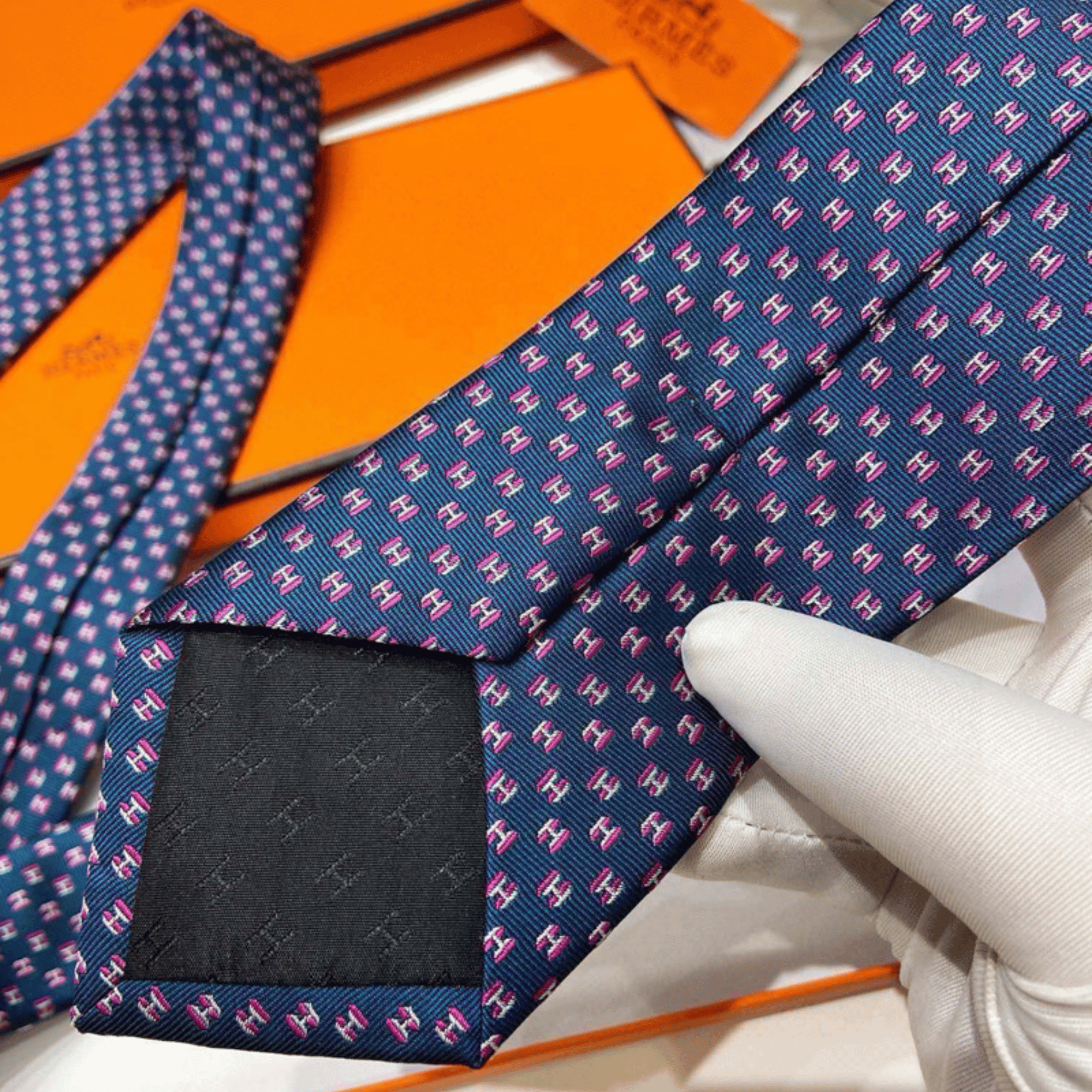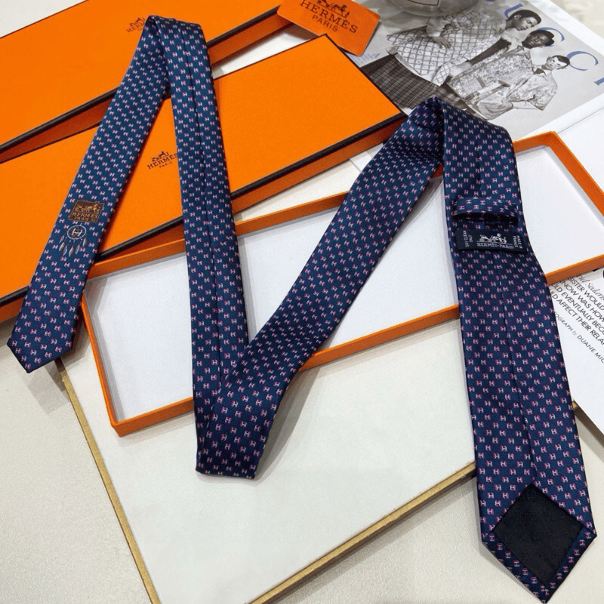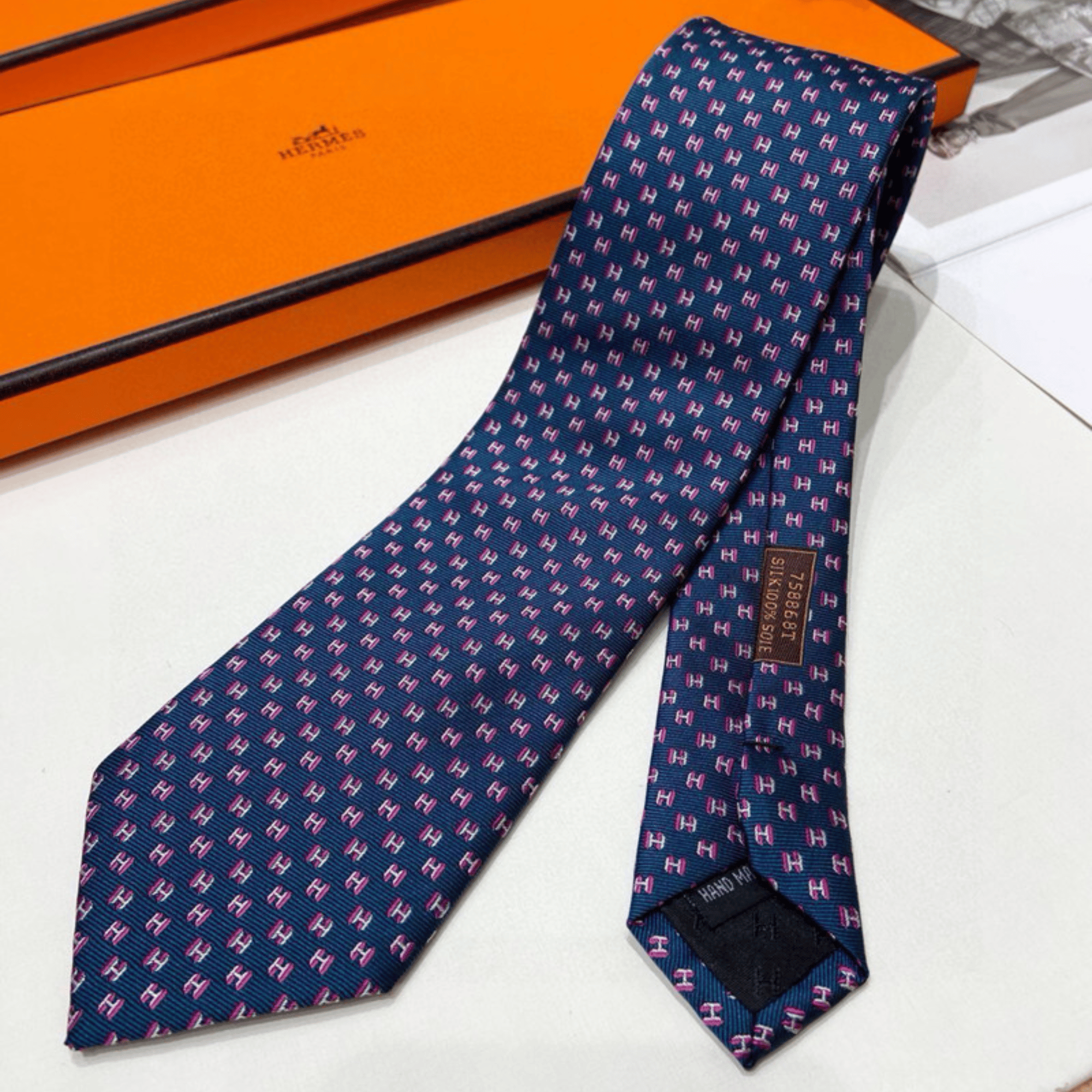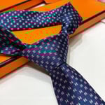 Hermes Navy Blue Mini H Pattern Canvas Tie For Men $180.00