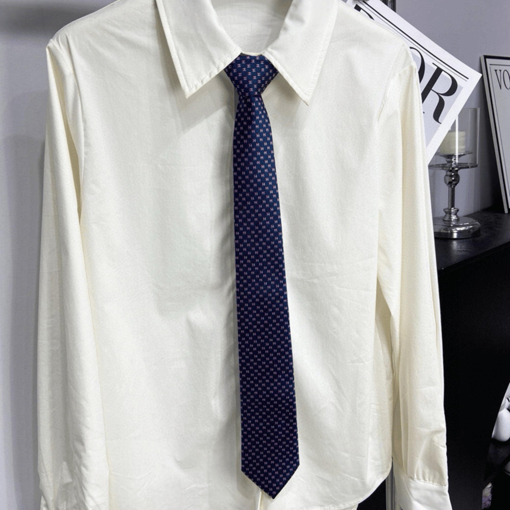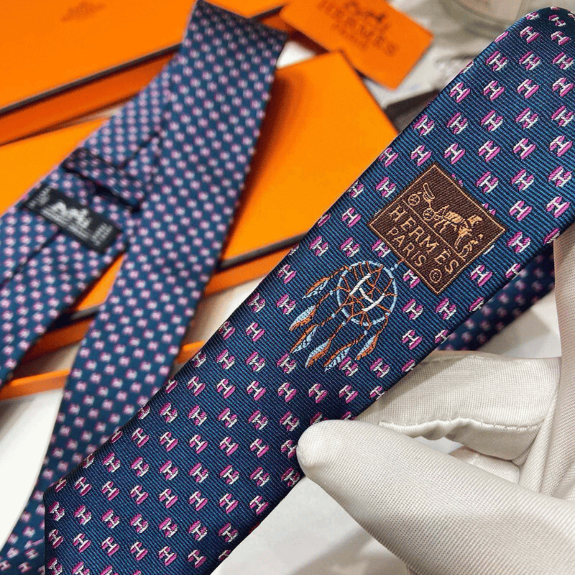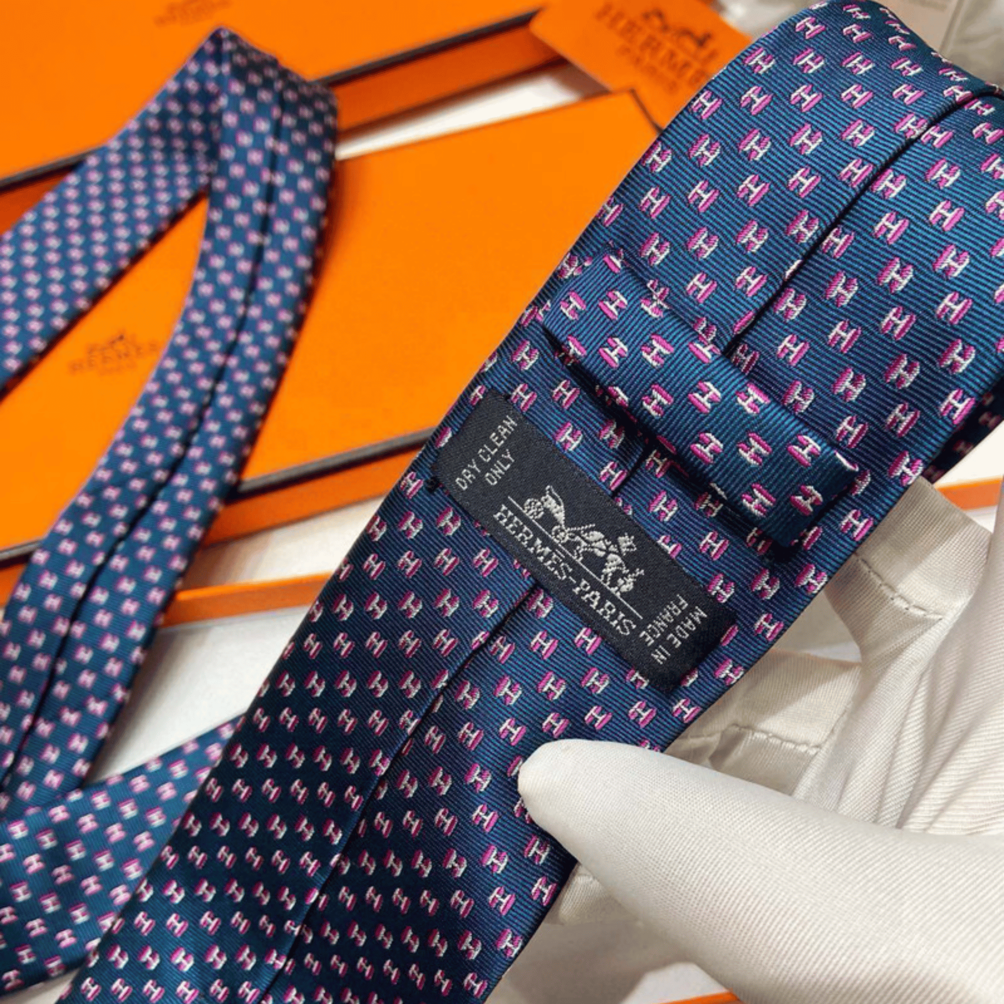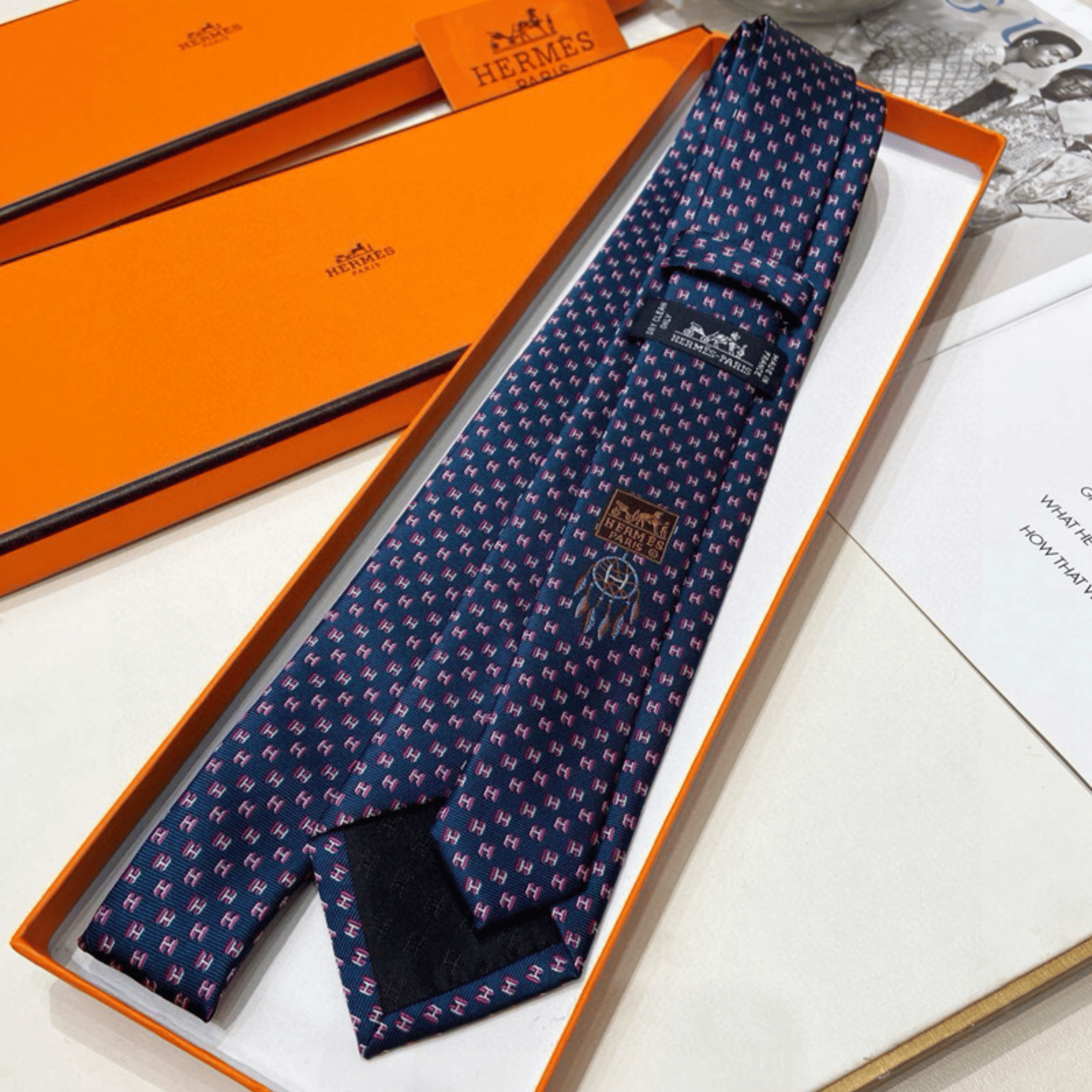 Hermes Navy Blue Mini H Pattern Canvas Tie For Men $180.00