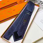 Hermes Navy Blue Mini H Pattern Canvas Tie For Men