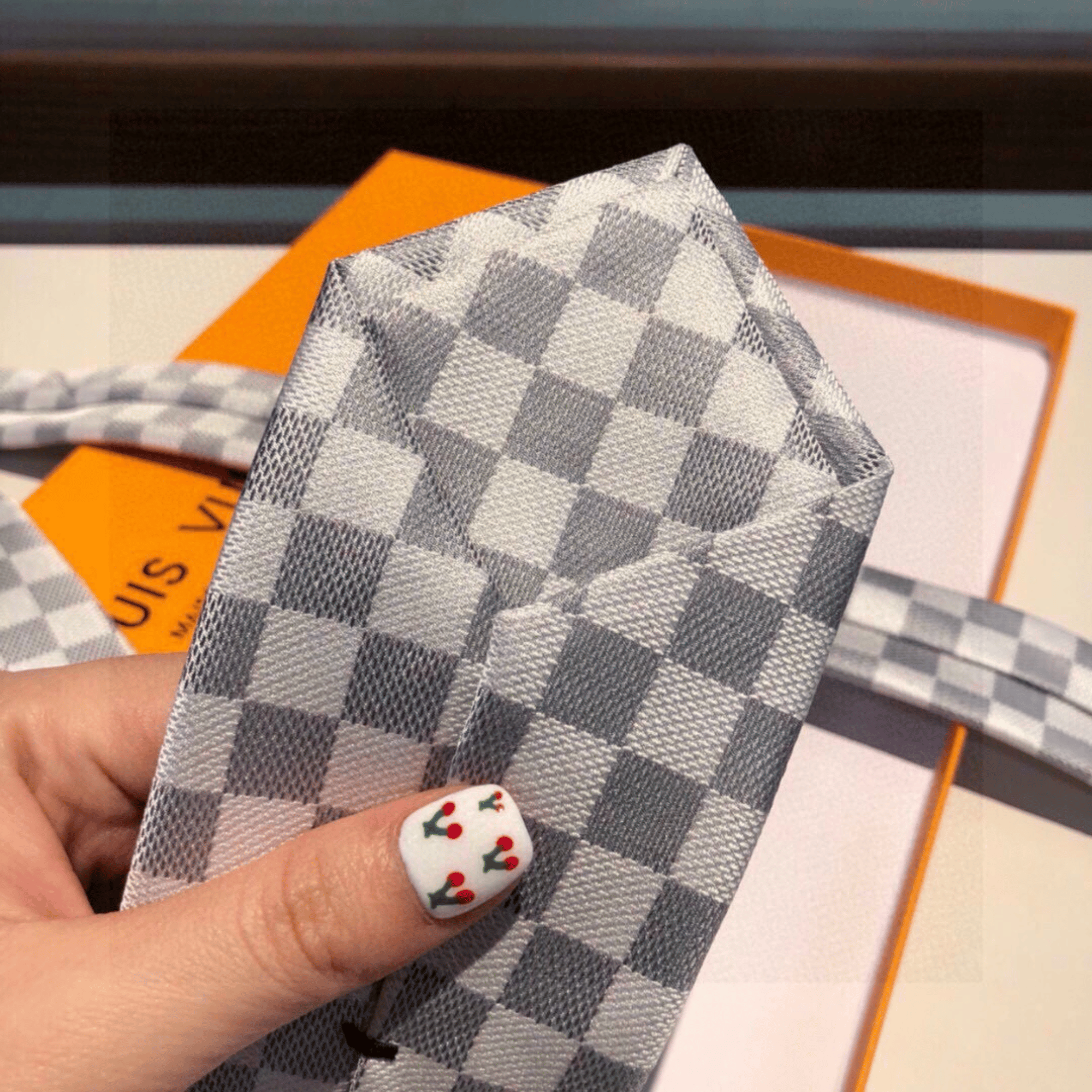 Louis Vuitton Damier Grey – White Canvas Tie For Men