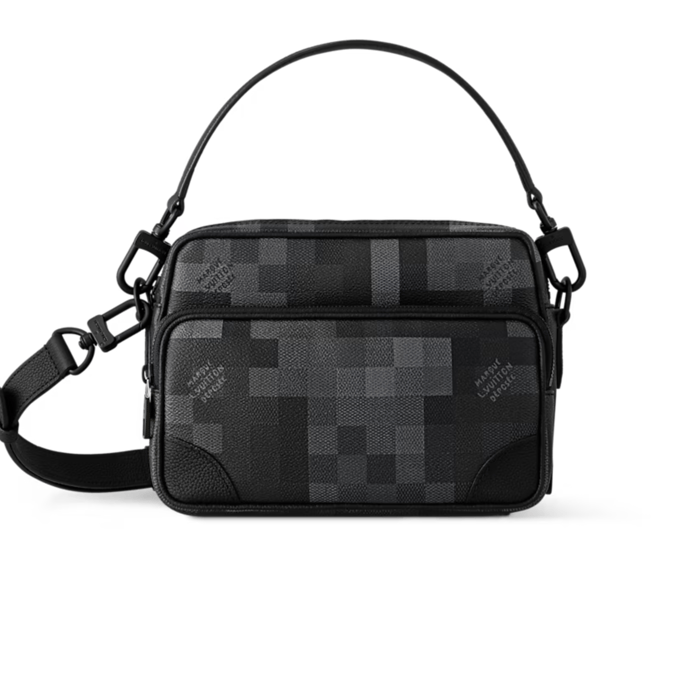 The versatile Nil Messenger bag is crafted from Pharrell Williams’ new Damoflage Black coated canvas. Blending Louis Vuitton heritage with Williams’ unique vision, the iconic Damier pattern is delicately pixelated, creating a monochromatic camouflage effect in greys and blacks. The Nil features a front zipped pocket in addition to its main compartment. Appearance may vary slightly from photos, depending on the placement of the pattern.