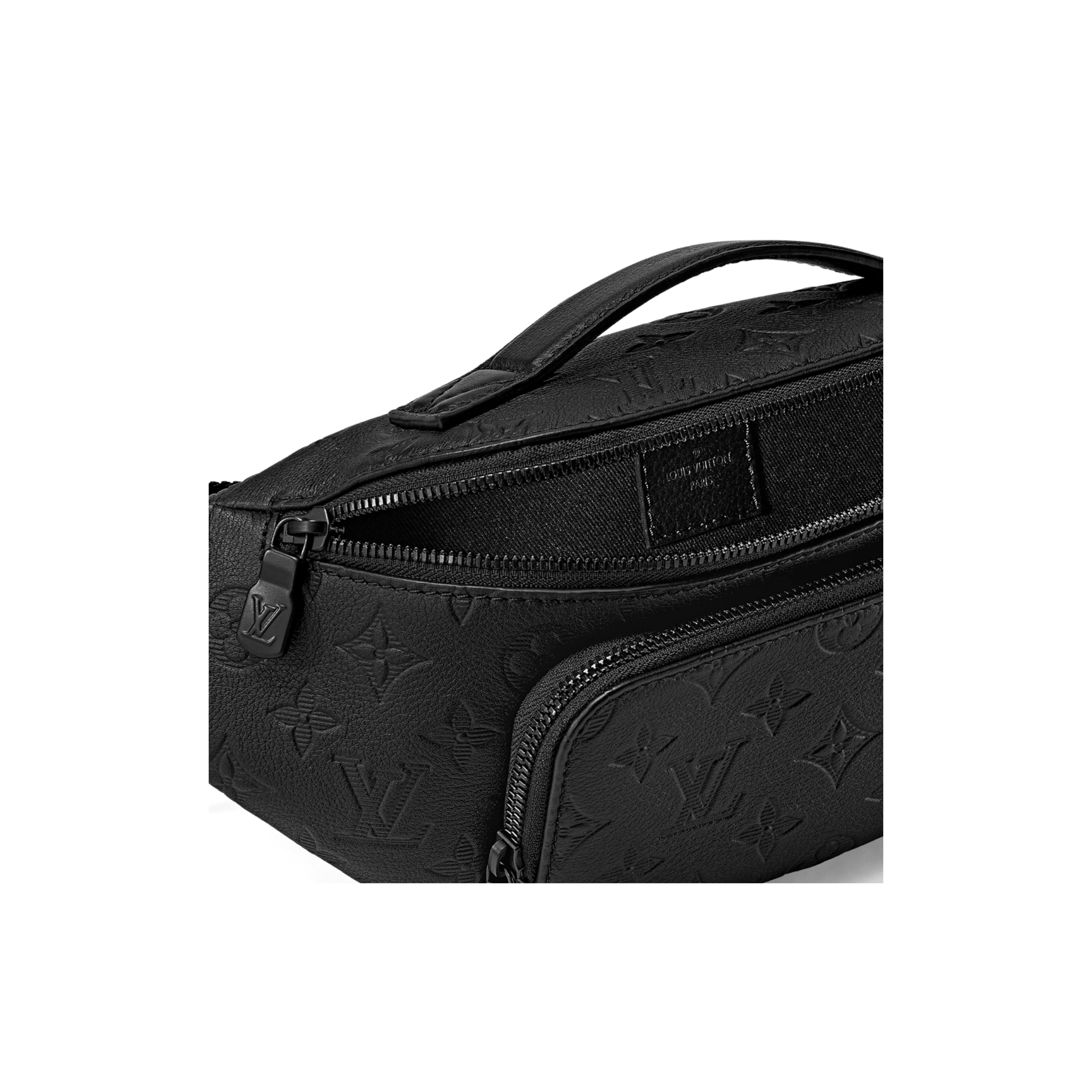 The body-friendly Rush Bumbag is made from Monogram Shadow calfskin. Functional and easy to wear, it features a front zipped pocket for quick access to phone, keys, or cards. The adjustable belt adapts to waist, over-the-shoulder, and cross-body wear and closes easily thanks to a sliding hook. The top leather handle offers hand carry while adding a sporty look.