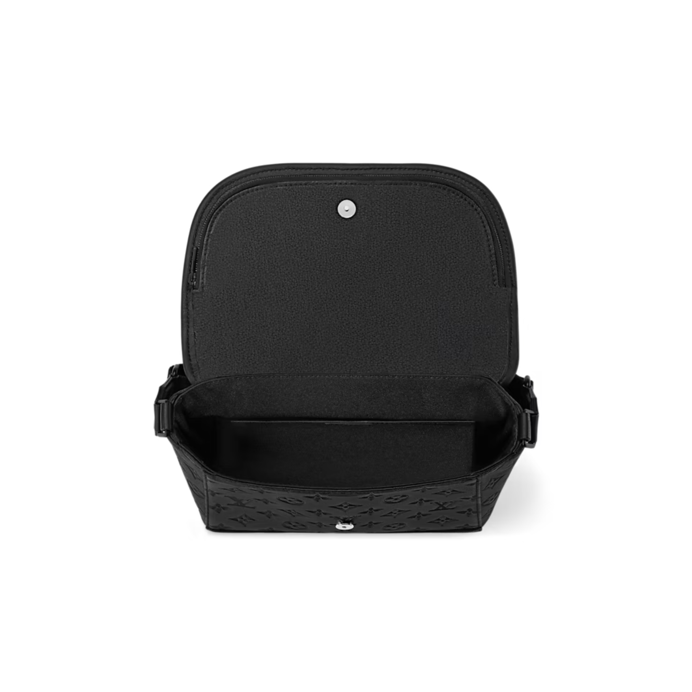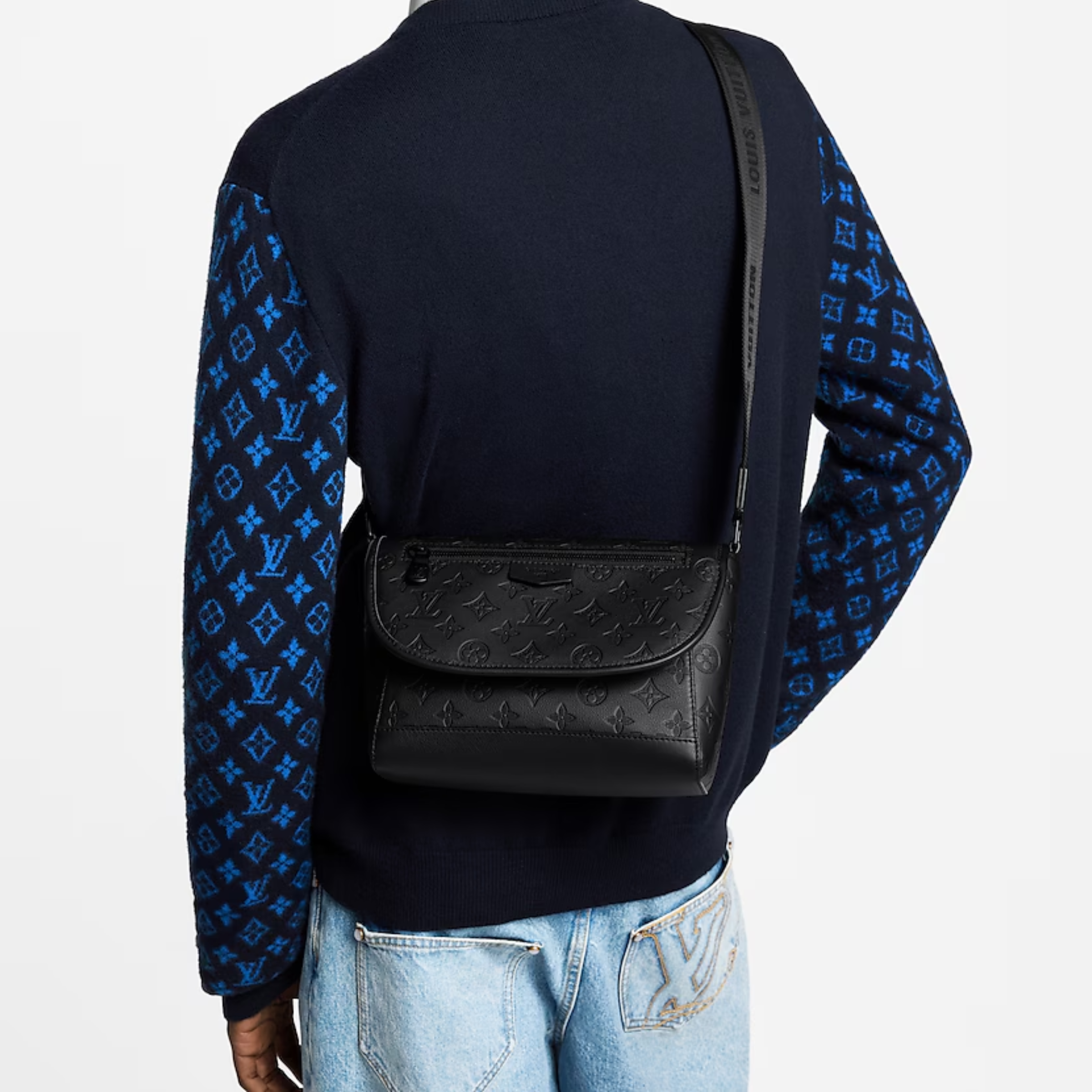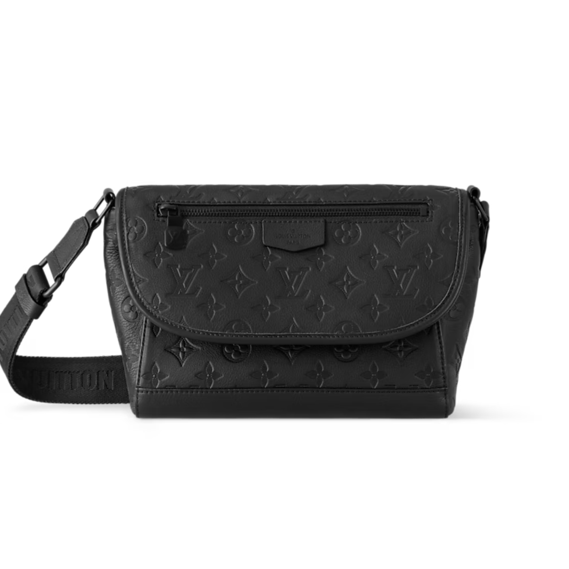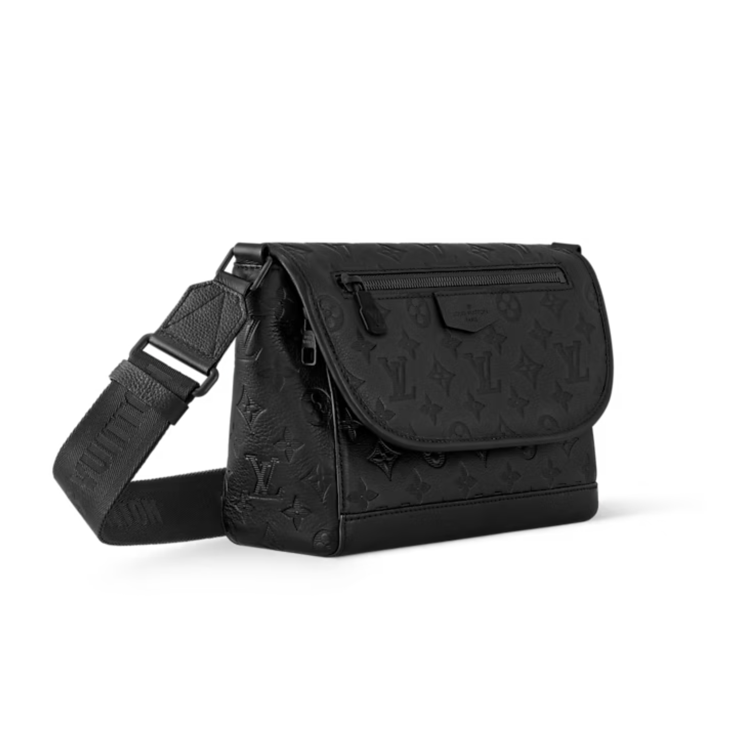 Monogram Shadow embossed leather and black hardware bring sophistication to the sporty Pulse Messenger Bag. Unique design with an exterior zipper pocket on the flap, plus a second zipper pocket on the underside of the flap. Adjustable webbing strap for shoulder or crossbody wear.