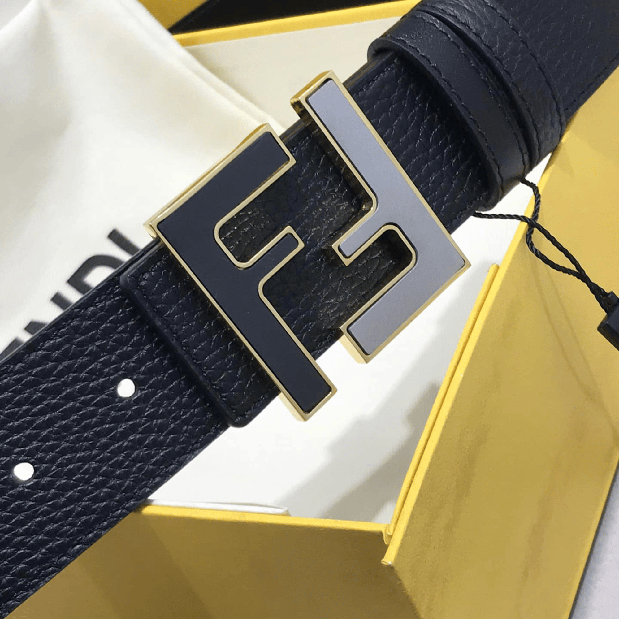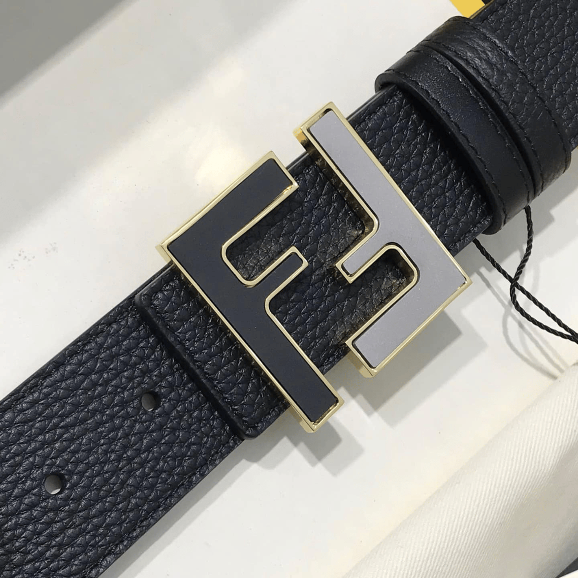 Fendi Iconic FF Gold Buckle Leather 35mm Belt For Men