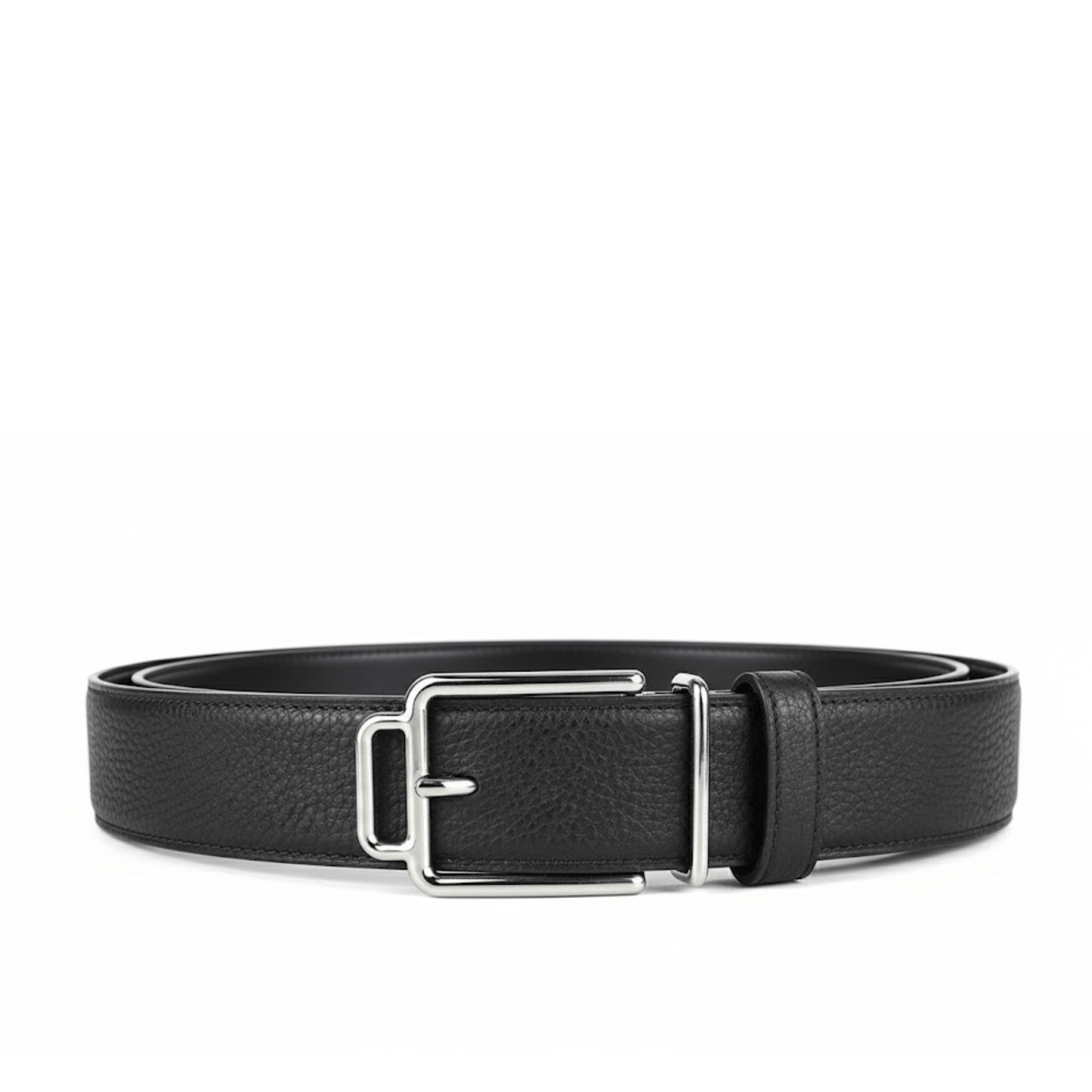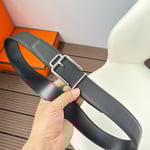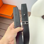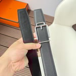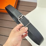 Hermes Black Silver Metal Buckle 38mm Belt For Men
