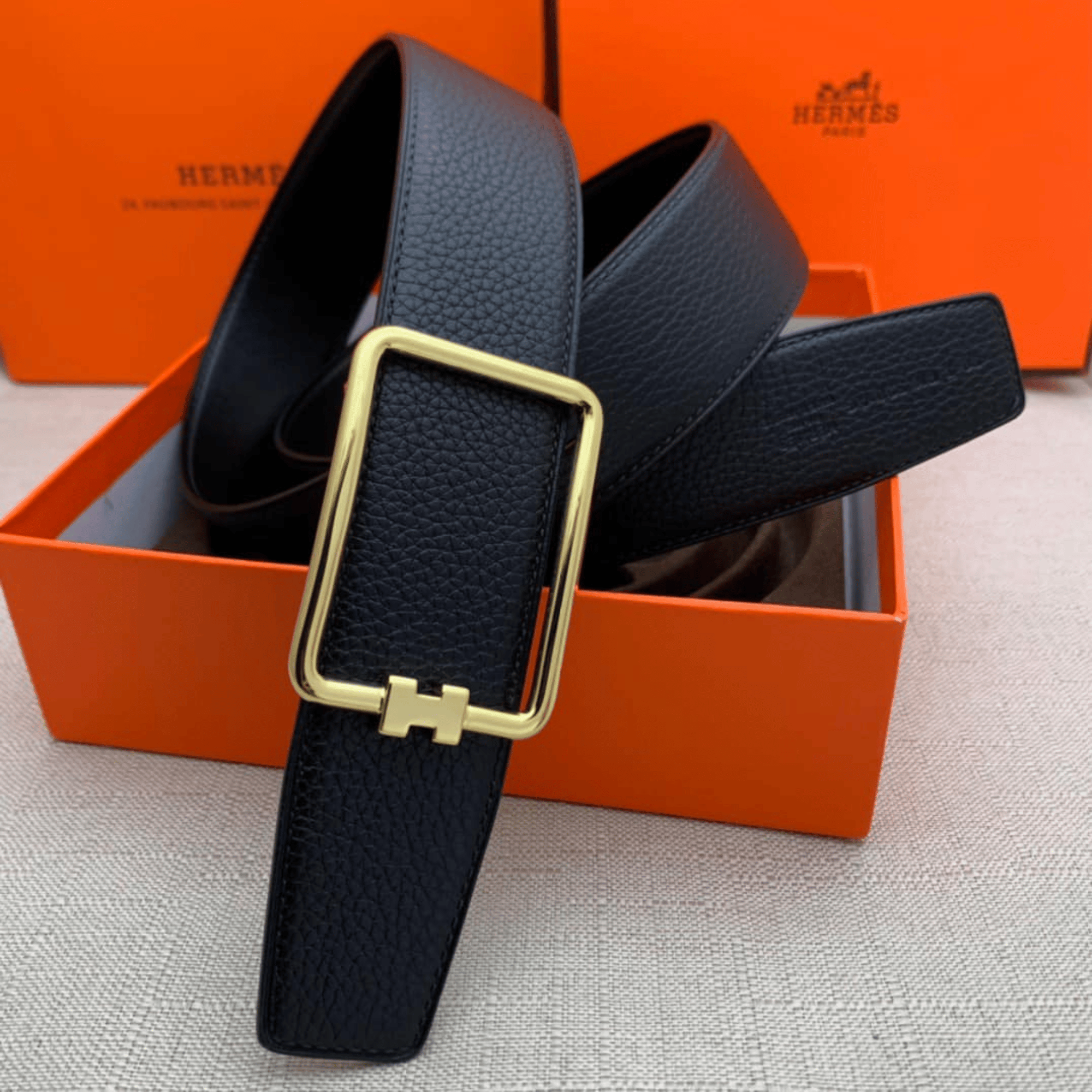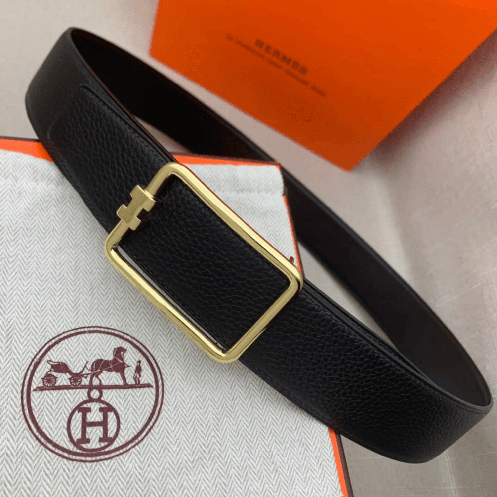 Hermes Frame Gold Buckle 38mm For Men Belt