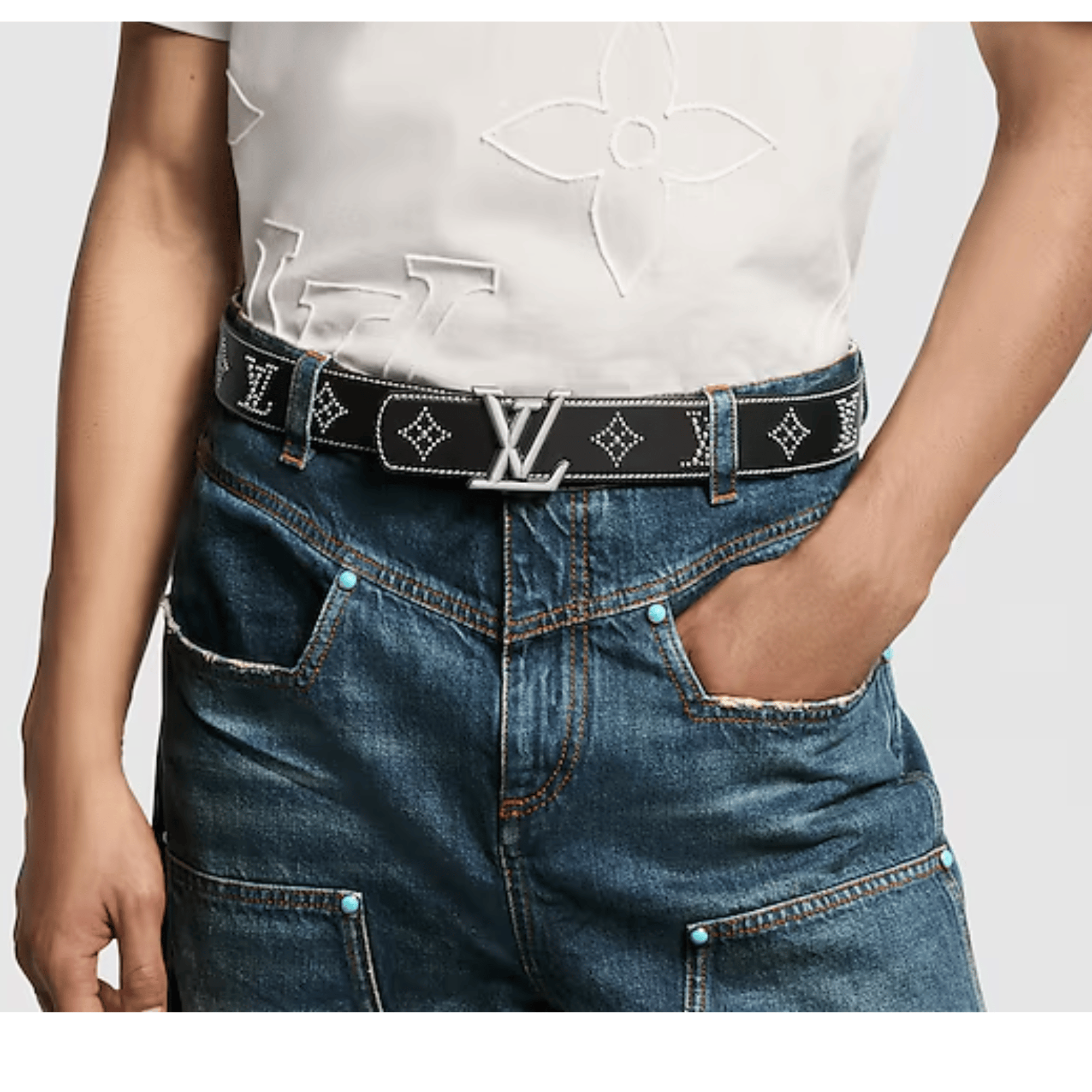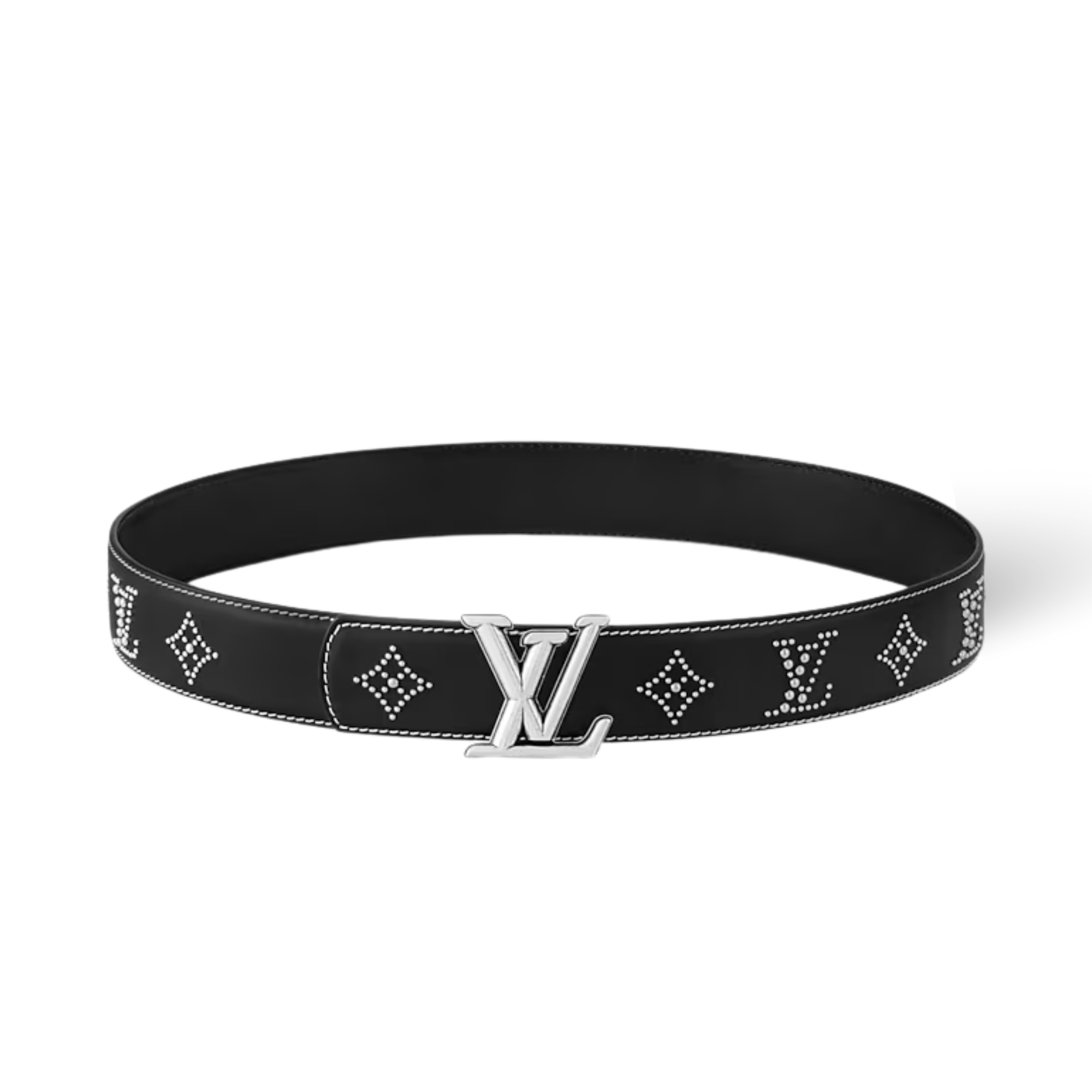 In this version of the LV Dimension 40mm Belt, smooth leather is elevated by a studded treatment of the House Monogram. Antiqued LV Dimension at the buckle and evident stitching around the edge lend a sophisticated Western flavor to the style, without compromising its timeless, universal appeal.