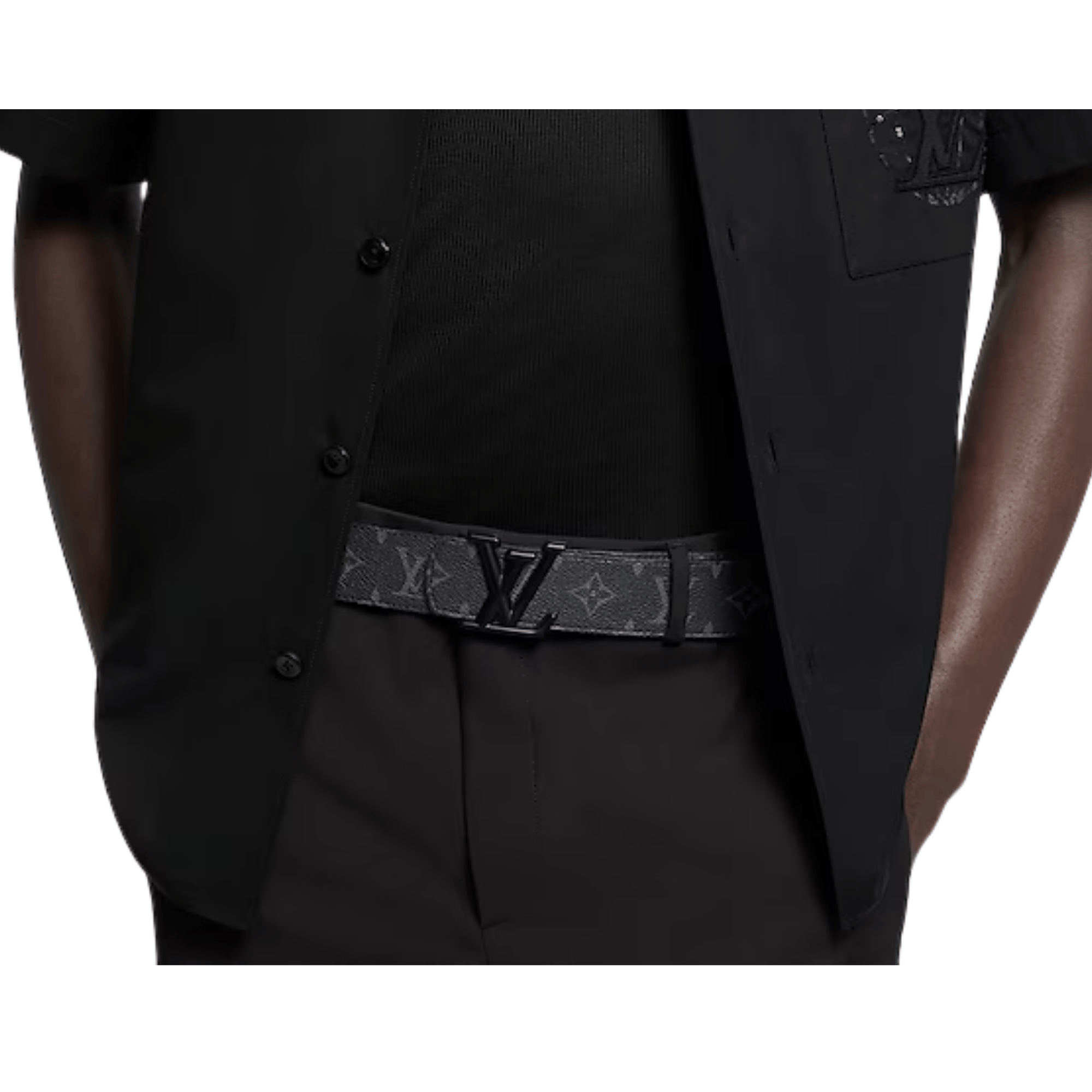 The LV Dimension 40mm Reversible Belt is a tribute to the meeting of tradition and innovation. The fine canvas belt front is clad in eclipse Monogram, matched by matte black Initials that serve as the buckle. This sleek palette serves a bold and harmonious look that feels current and cutting-edge.