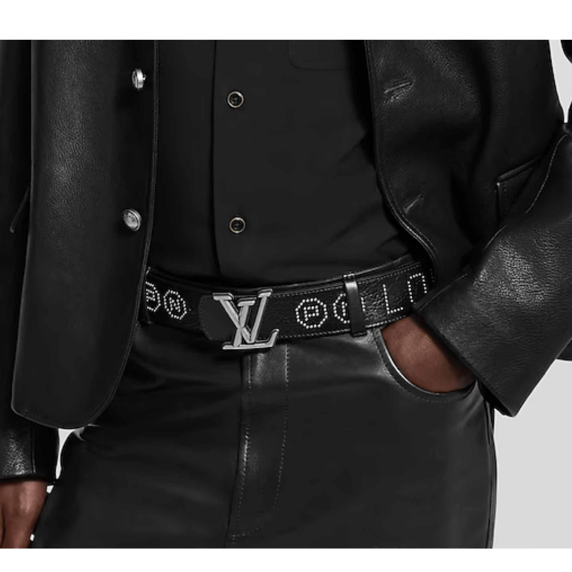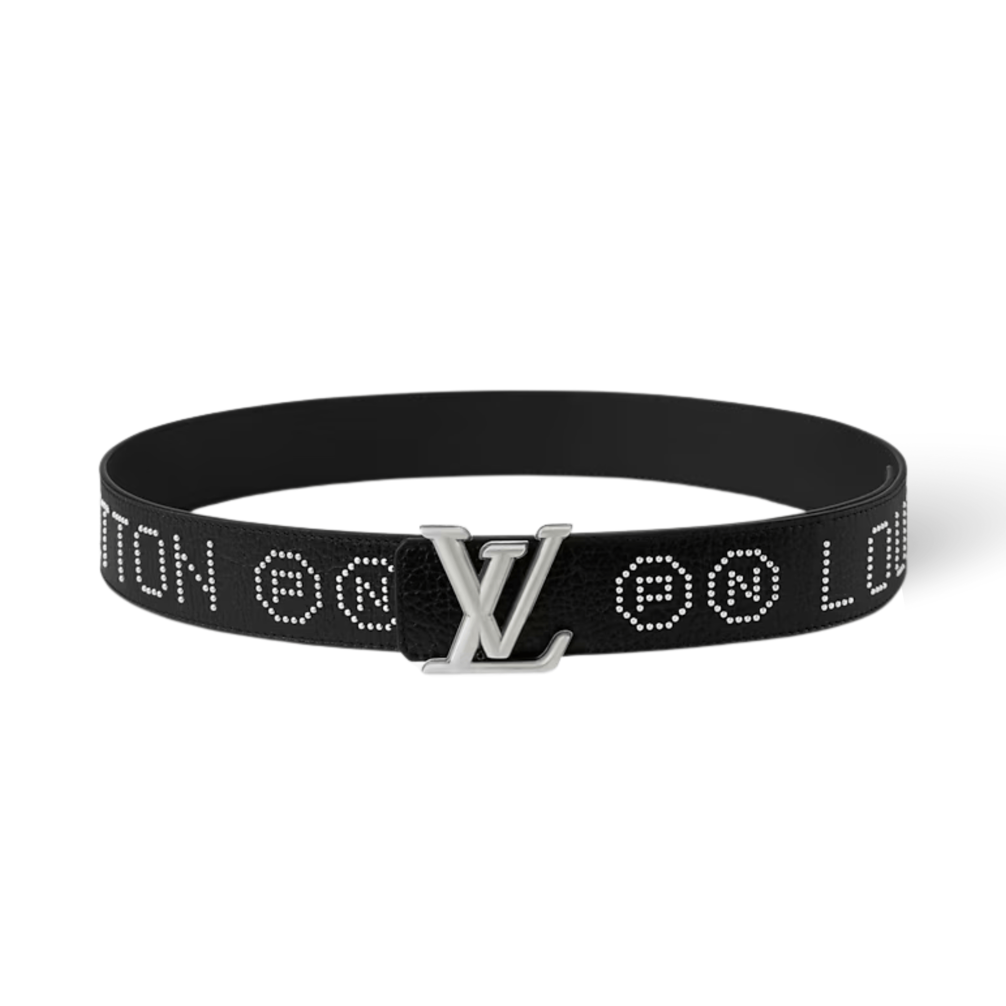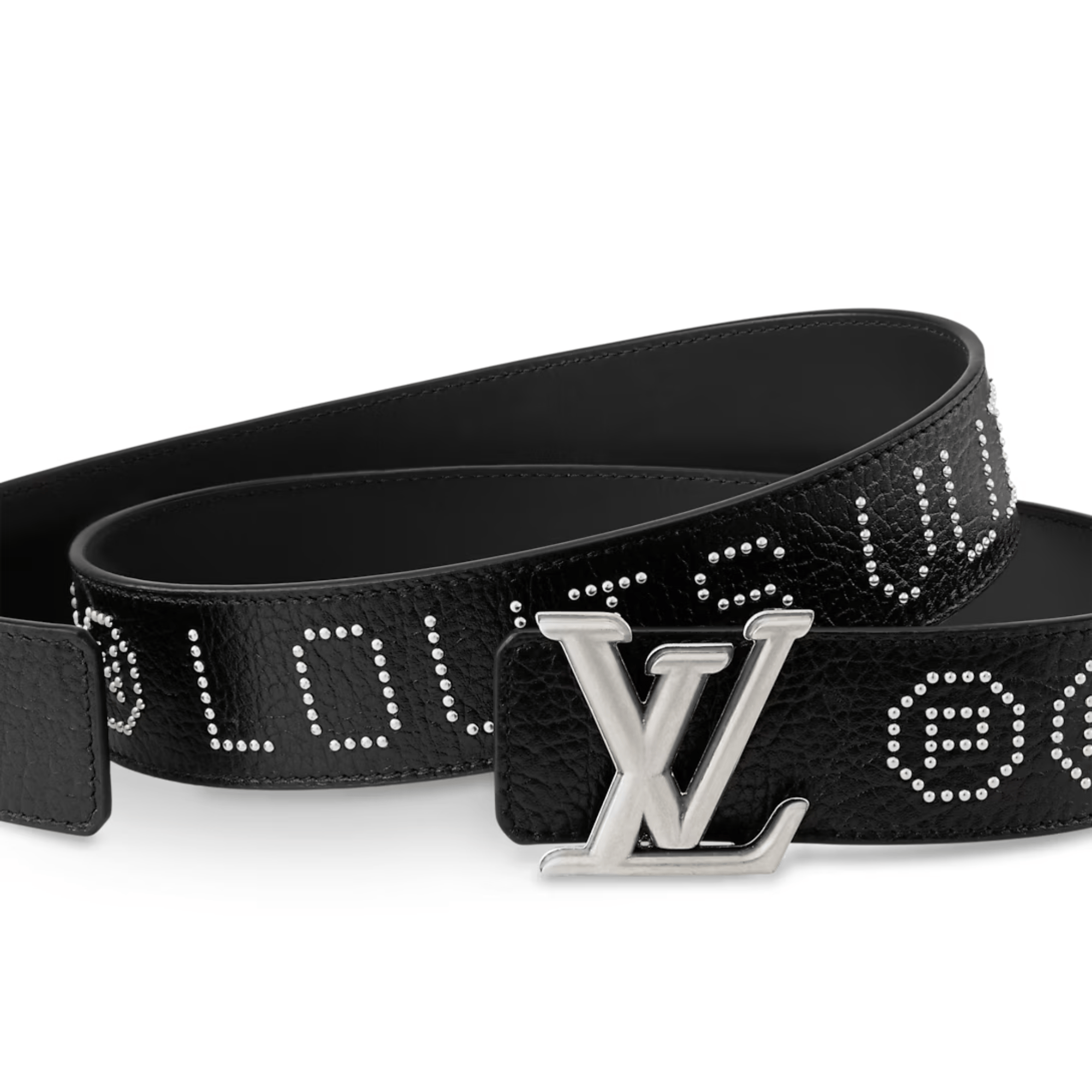 The black LV Dimension Rockabilly Studs 40mm Reversible Belt is bold yet thoughtfully showcases its vintage and modern influences. LOUIS VUITTON and P and N, for Pharrell Williams and his collaborator Nigo, encircle one side of the leather strap in small, silver-toned studs.The simple buckle grounds this intricate detail and complements the plain reverse.
