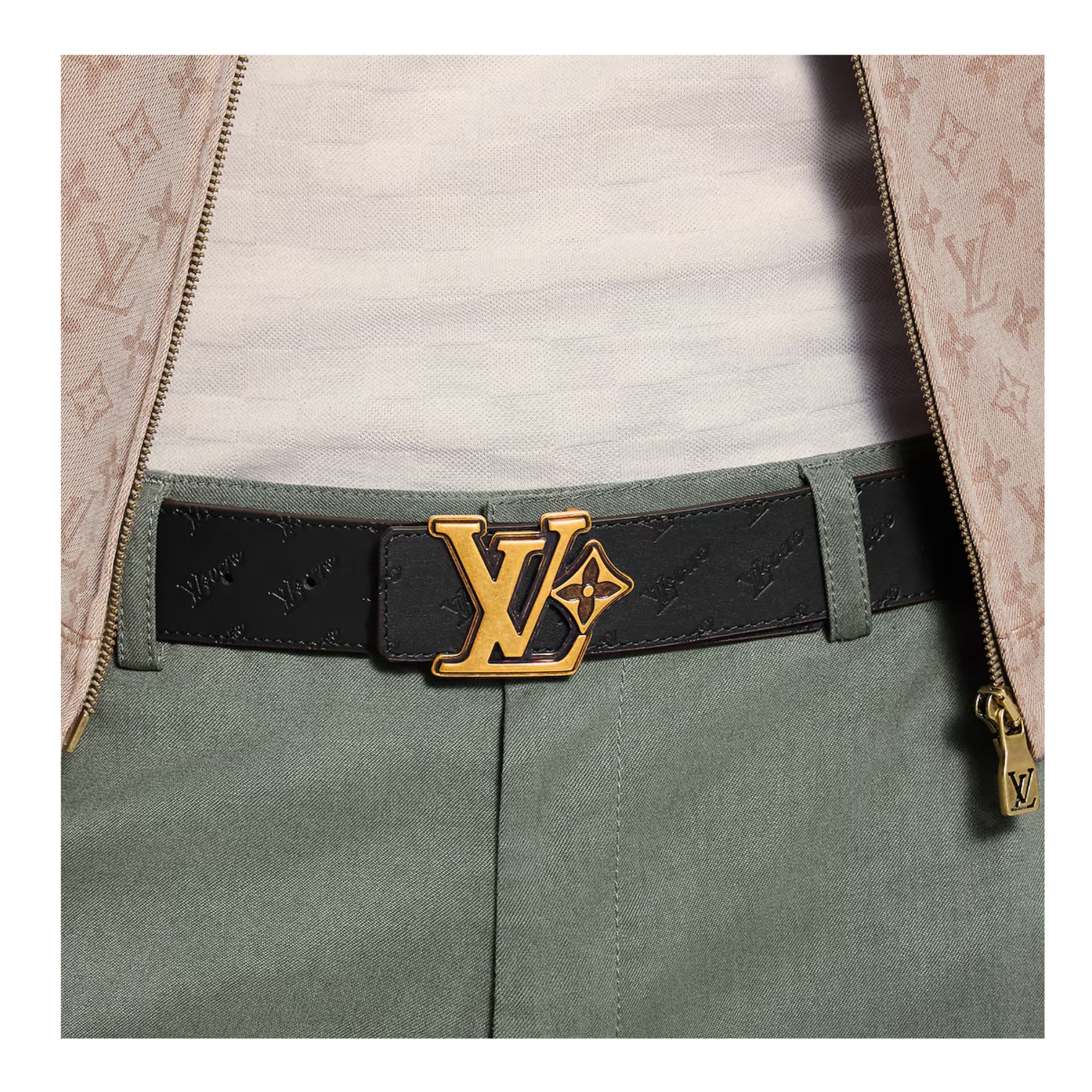 Uniting the House Héritage with contemporary embellishments, the LV Flower 40mm Reversible belt invites adoration and conversation. On one side, the coated features the House Monogram, and on the other, leather is embossed with the LV Flower emblem. The buckle is a provocative element, pairing a flower with initials in a take-notice size.
