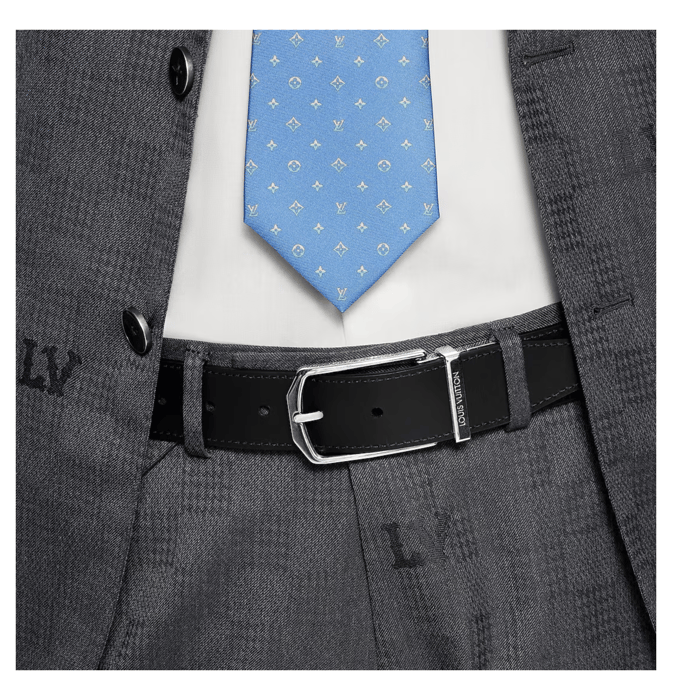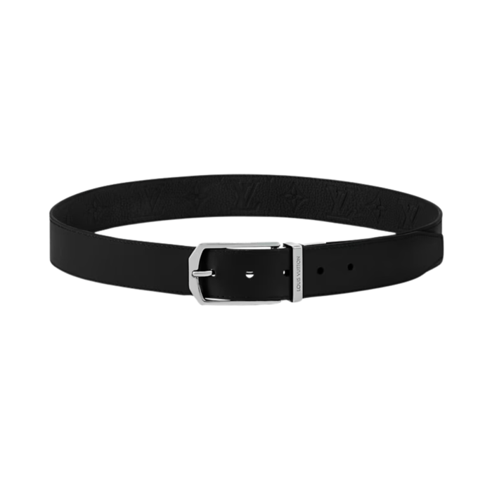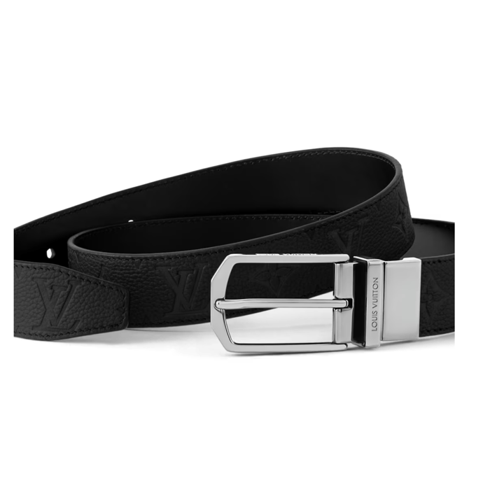 The Slender 35mm Reversible belt is a streamlined, modern style with unparalleled versatility. Crafted from moody black leather, the strap is smooth on one side and embossed with the Monogram on the other. In a final flourish, the buckle hardware is constructed from silvery, striking Ruthenium, and features a loop engraved with LOUIS VUITTON.