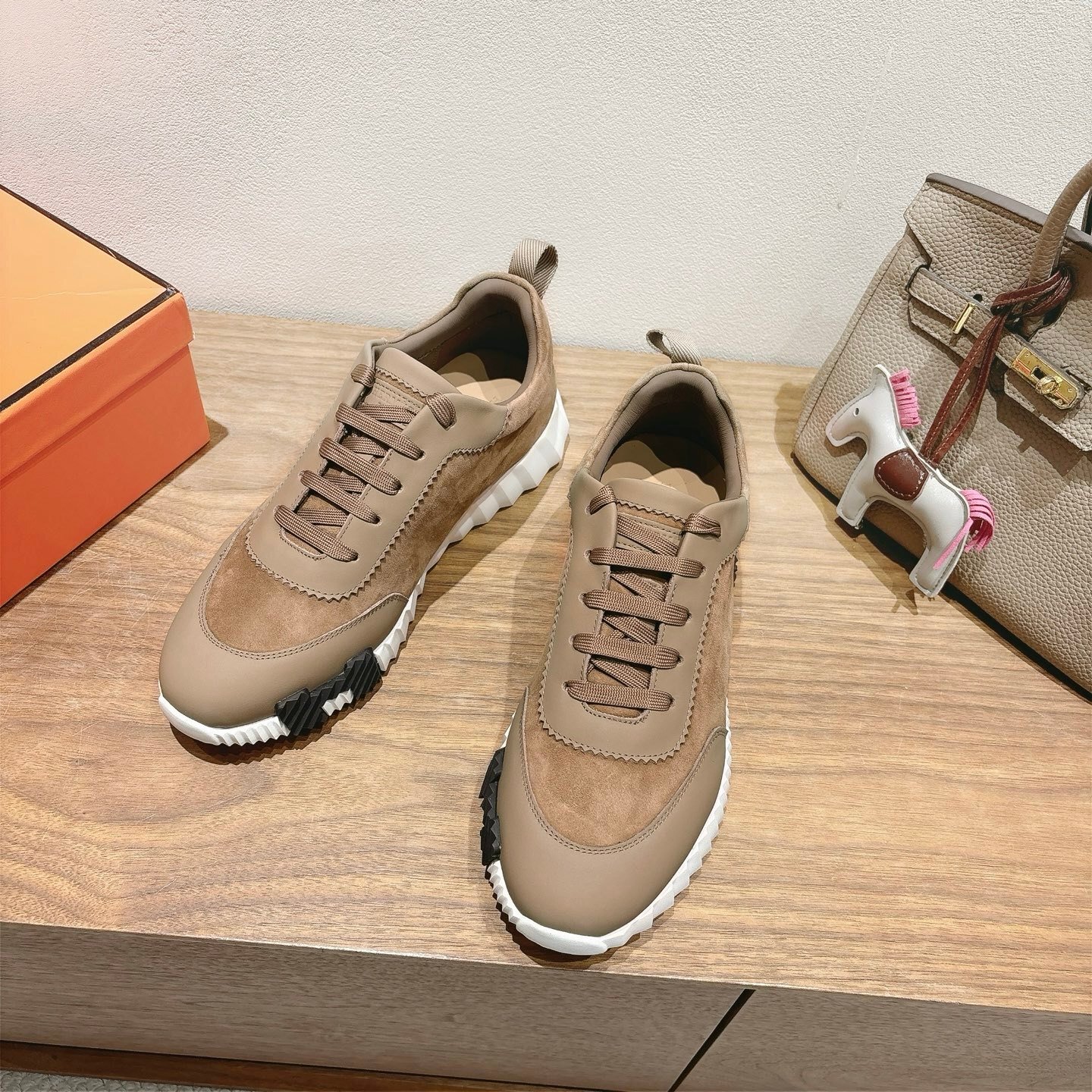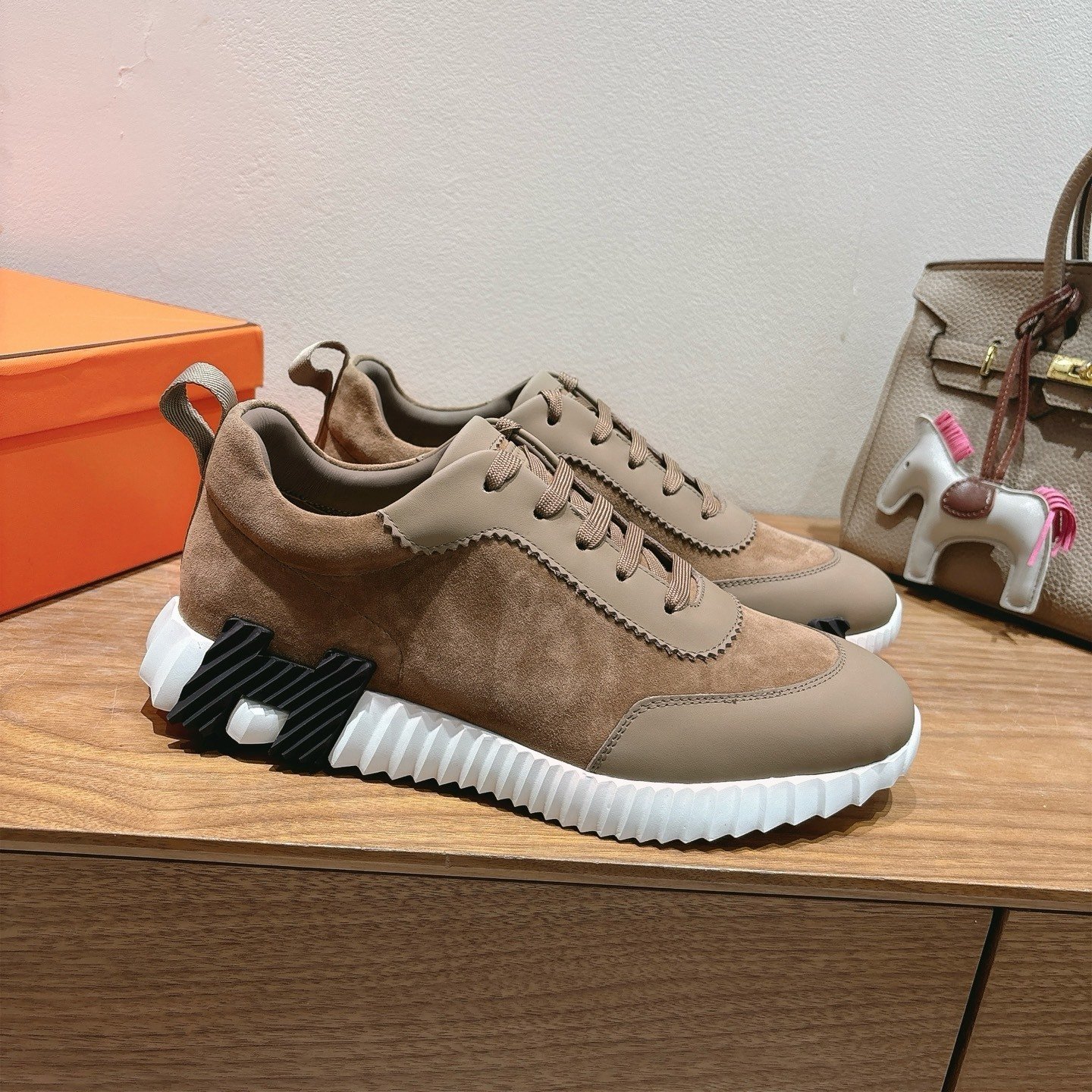 Hermes Bounce Sneakers In Suede And Calfskin Brown- Shoes for Men