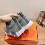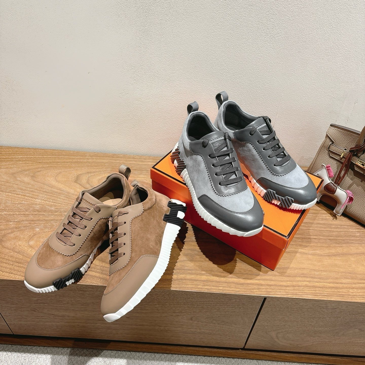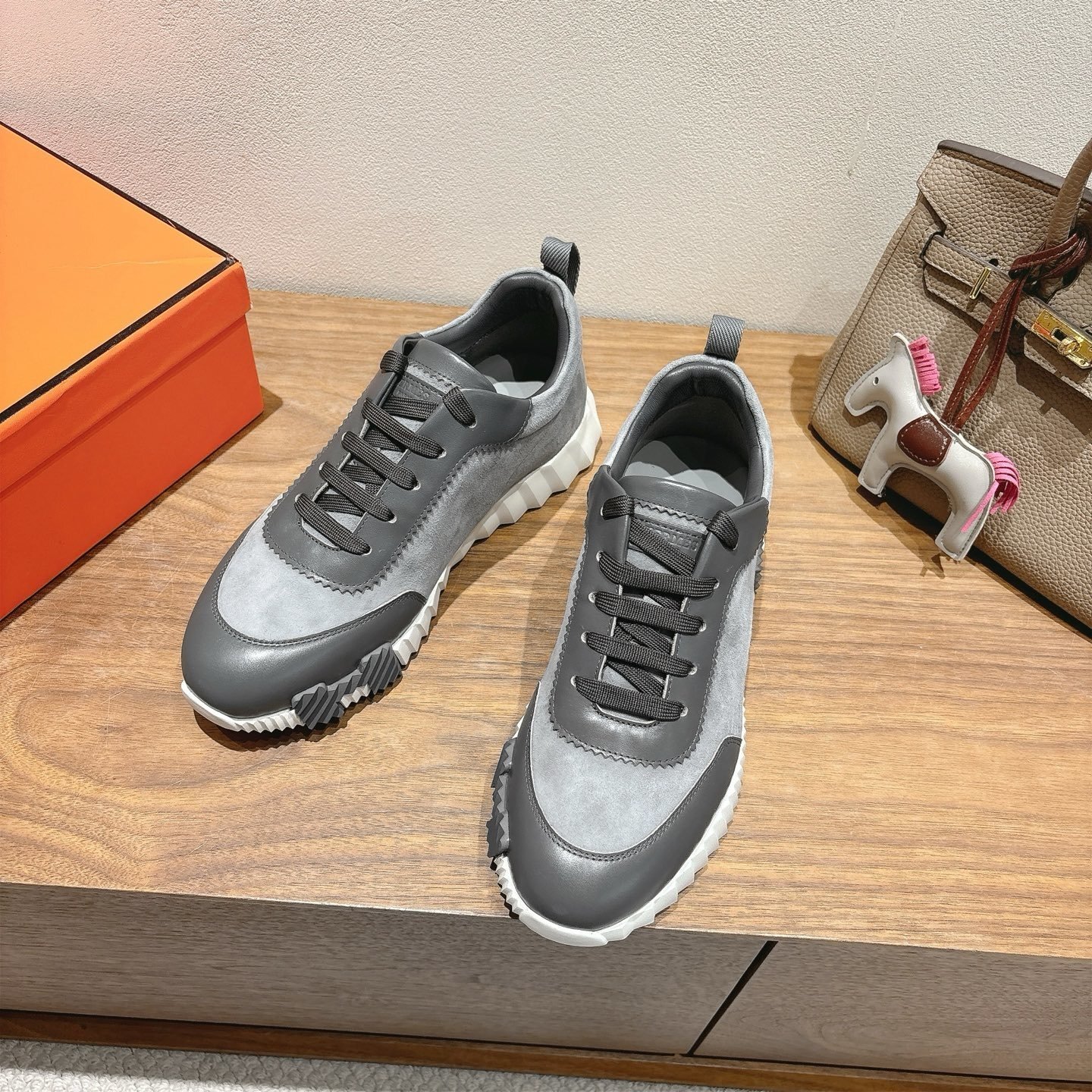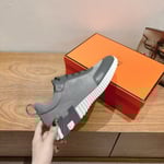 Hermes Bounce Sneakers In Suede And Calfskin Grey- Shoes for Men
