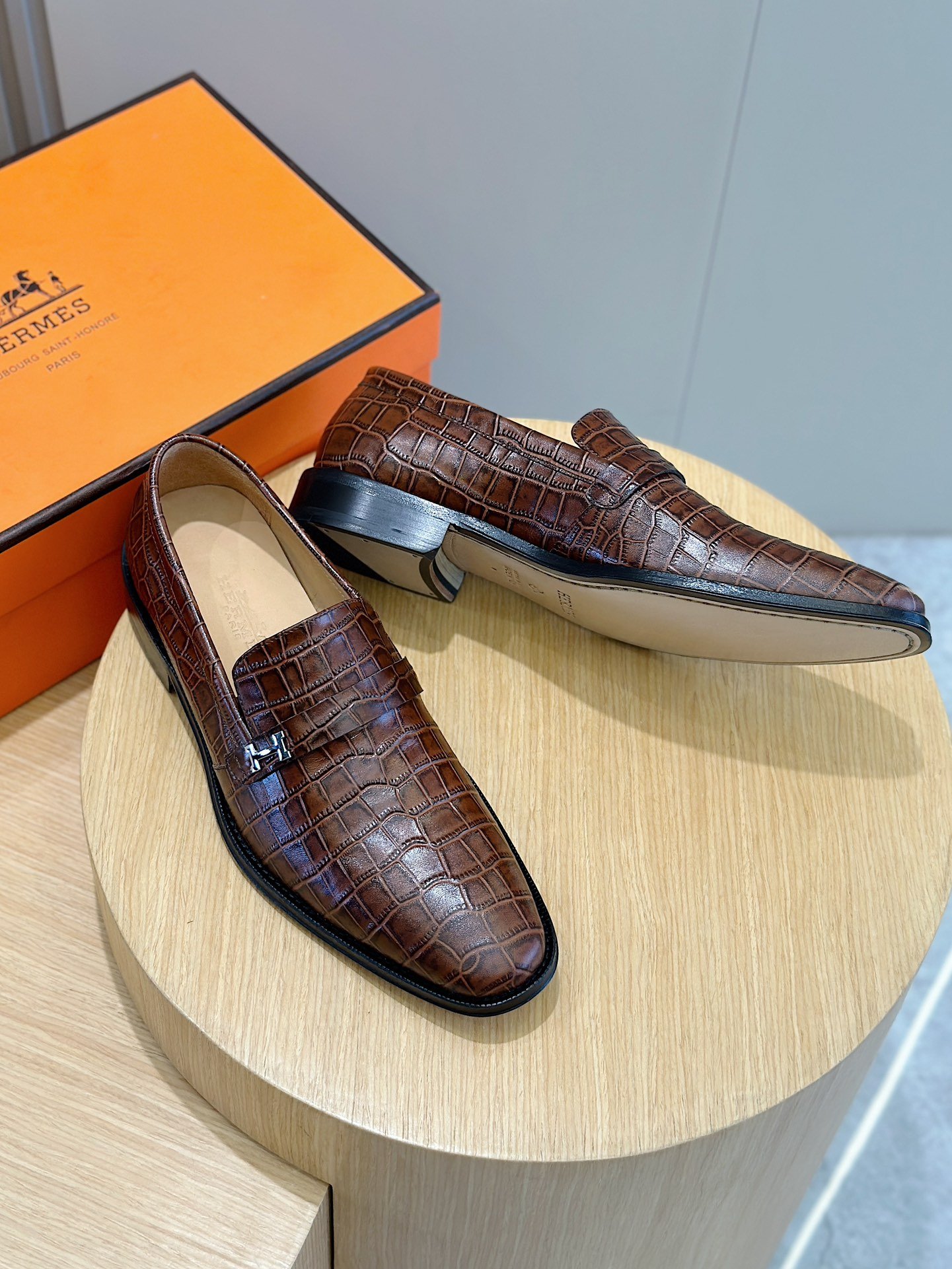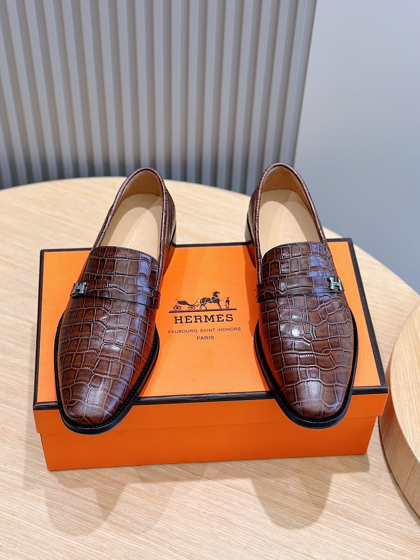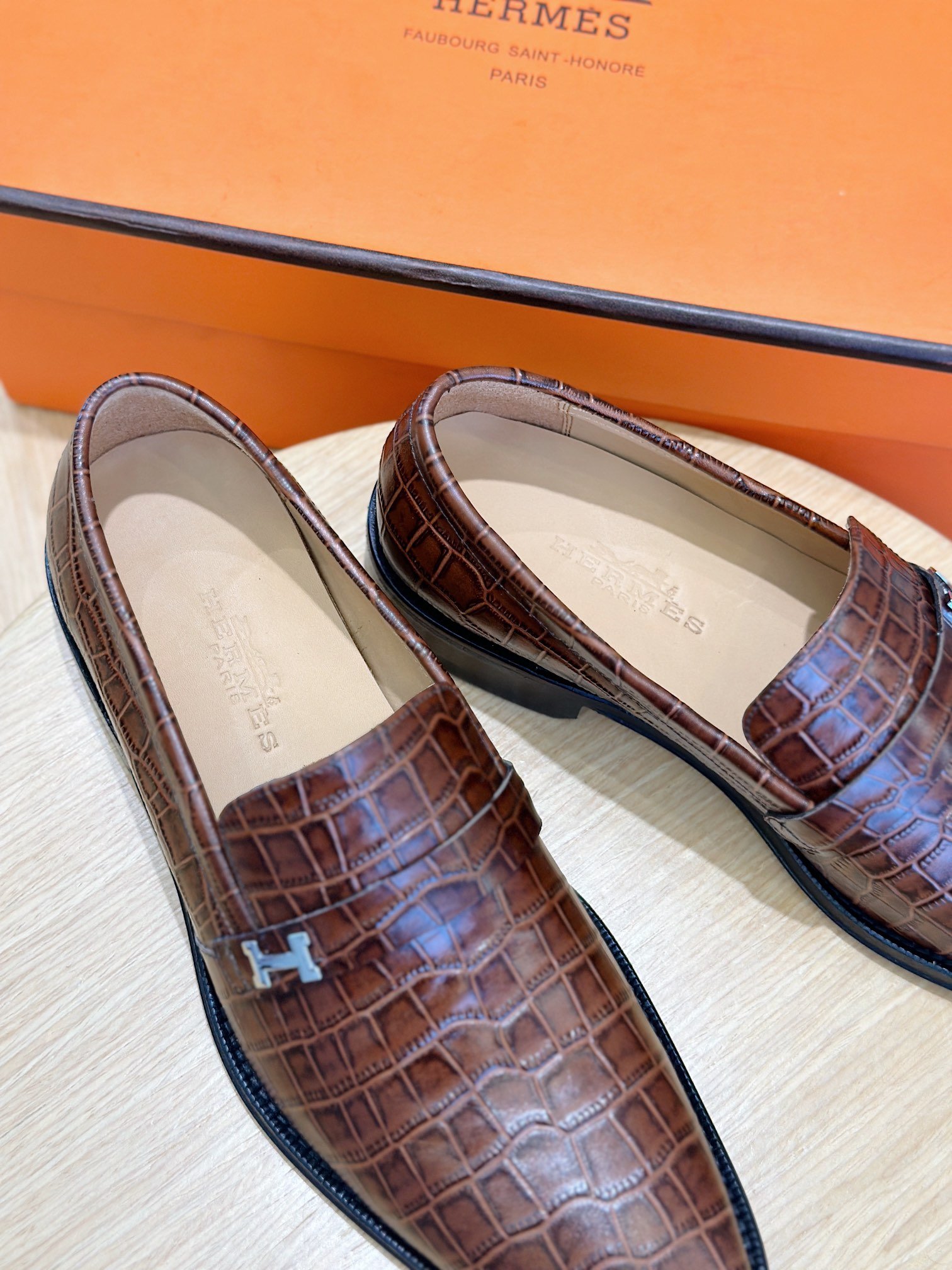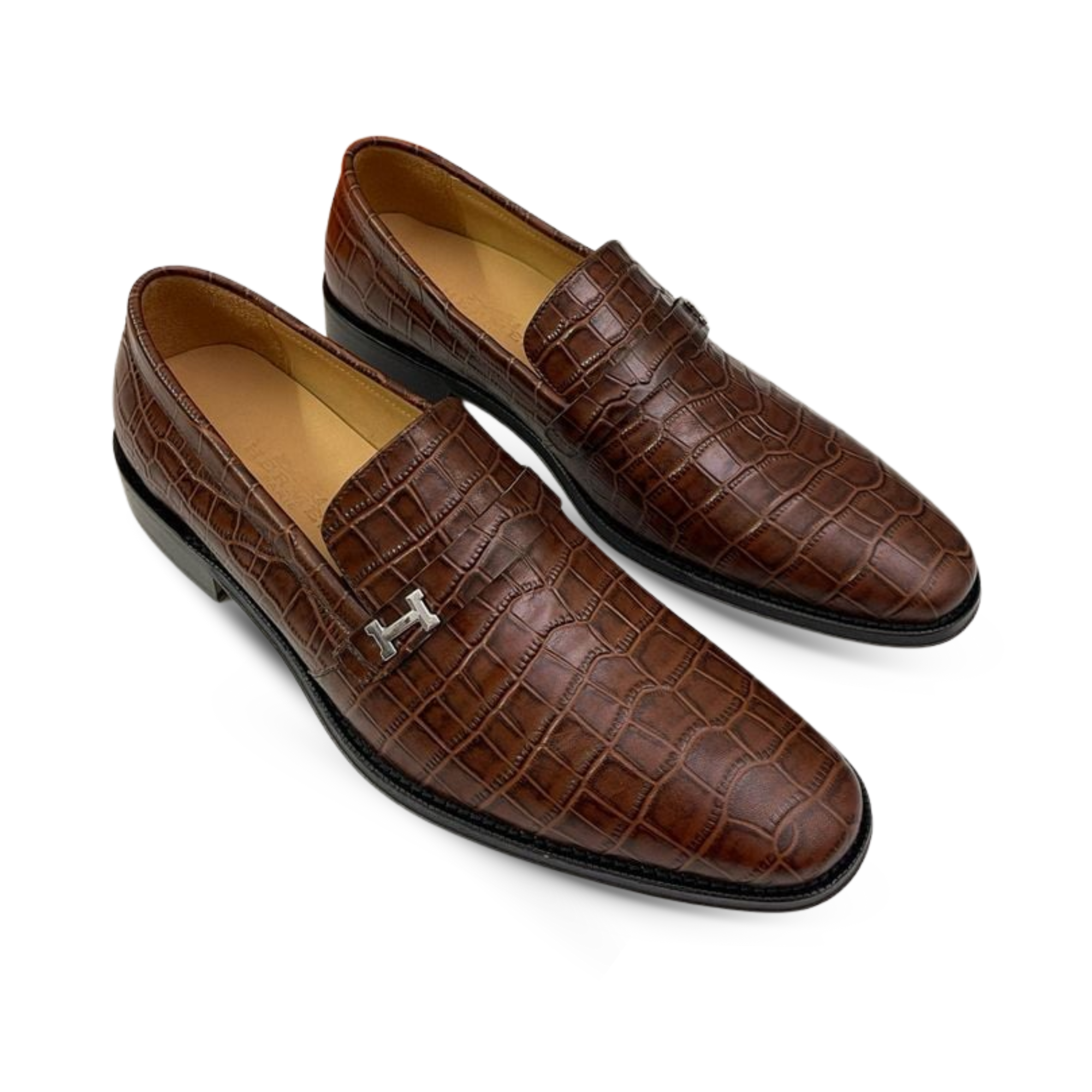 Hermès Crocodile Leather Loafers Brown Signature H Buckle- Shoes for Men