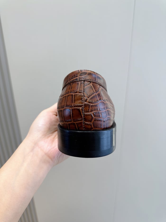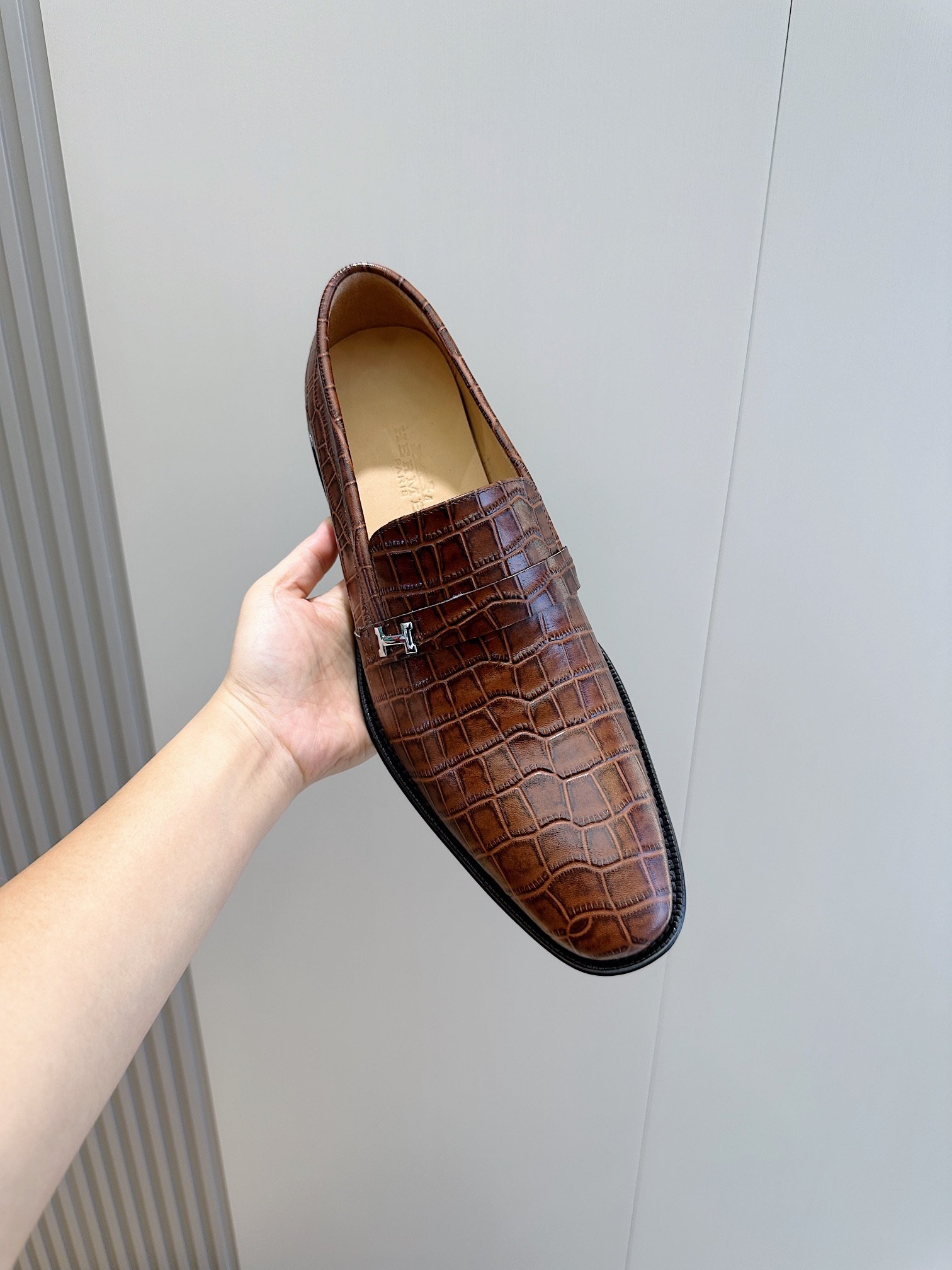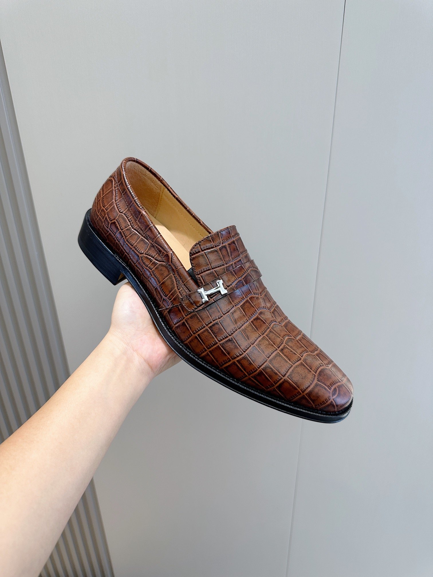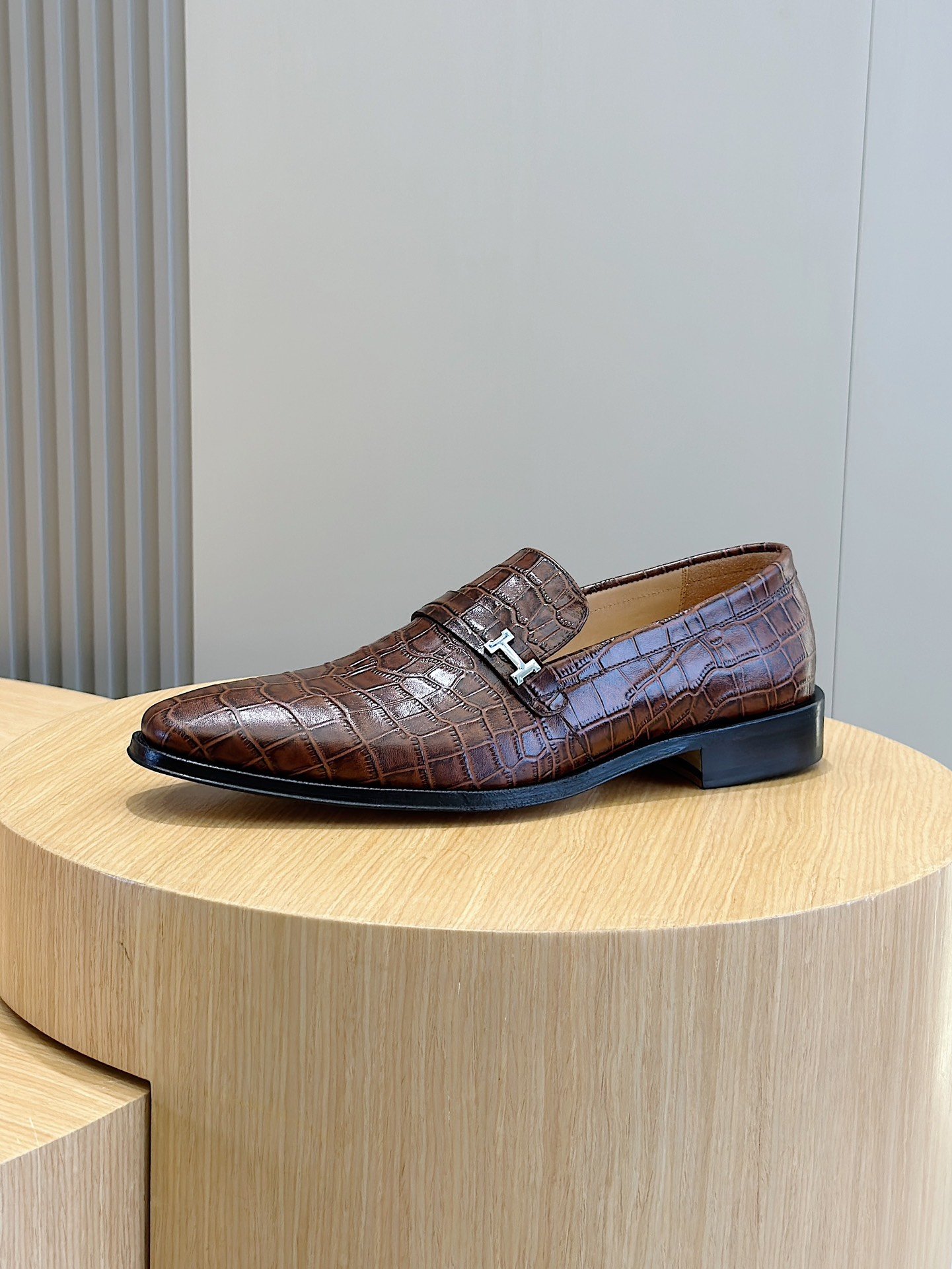 Hermès Crocodile Leather Loafers Brown Signature H Buckle- Shoes for Men