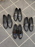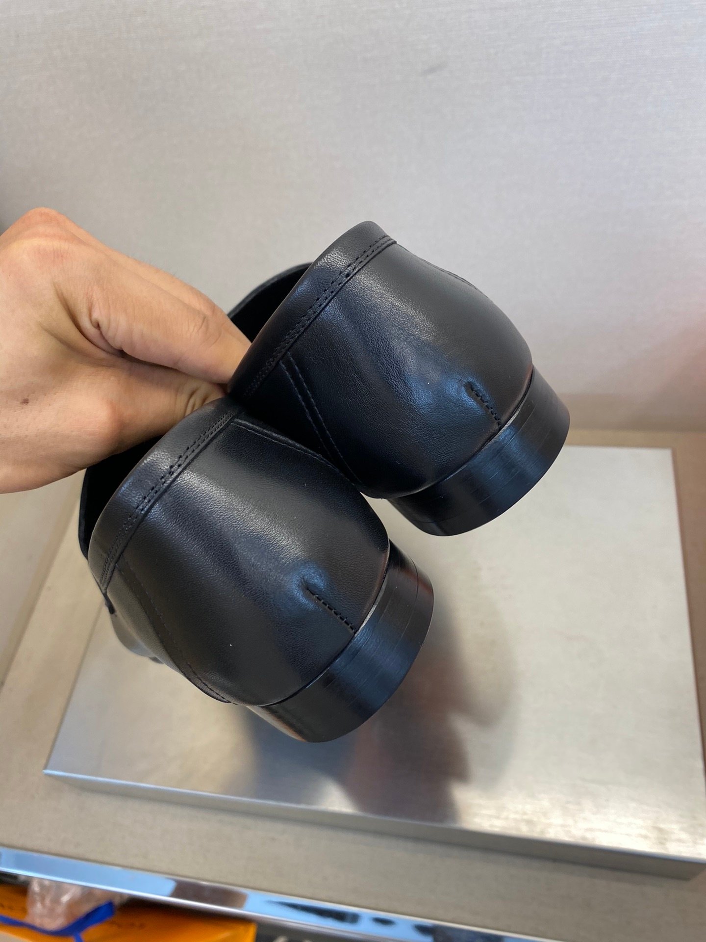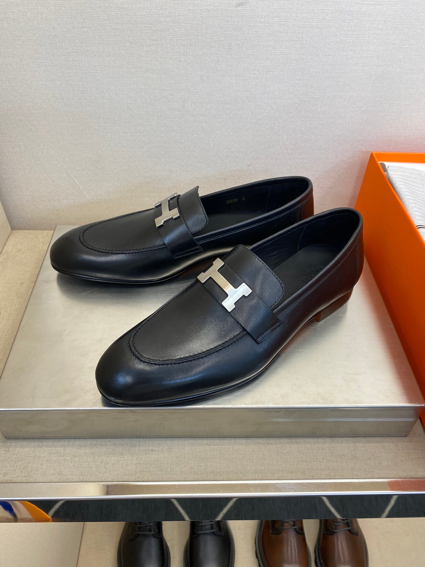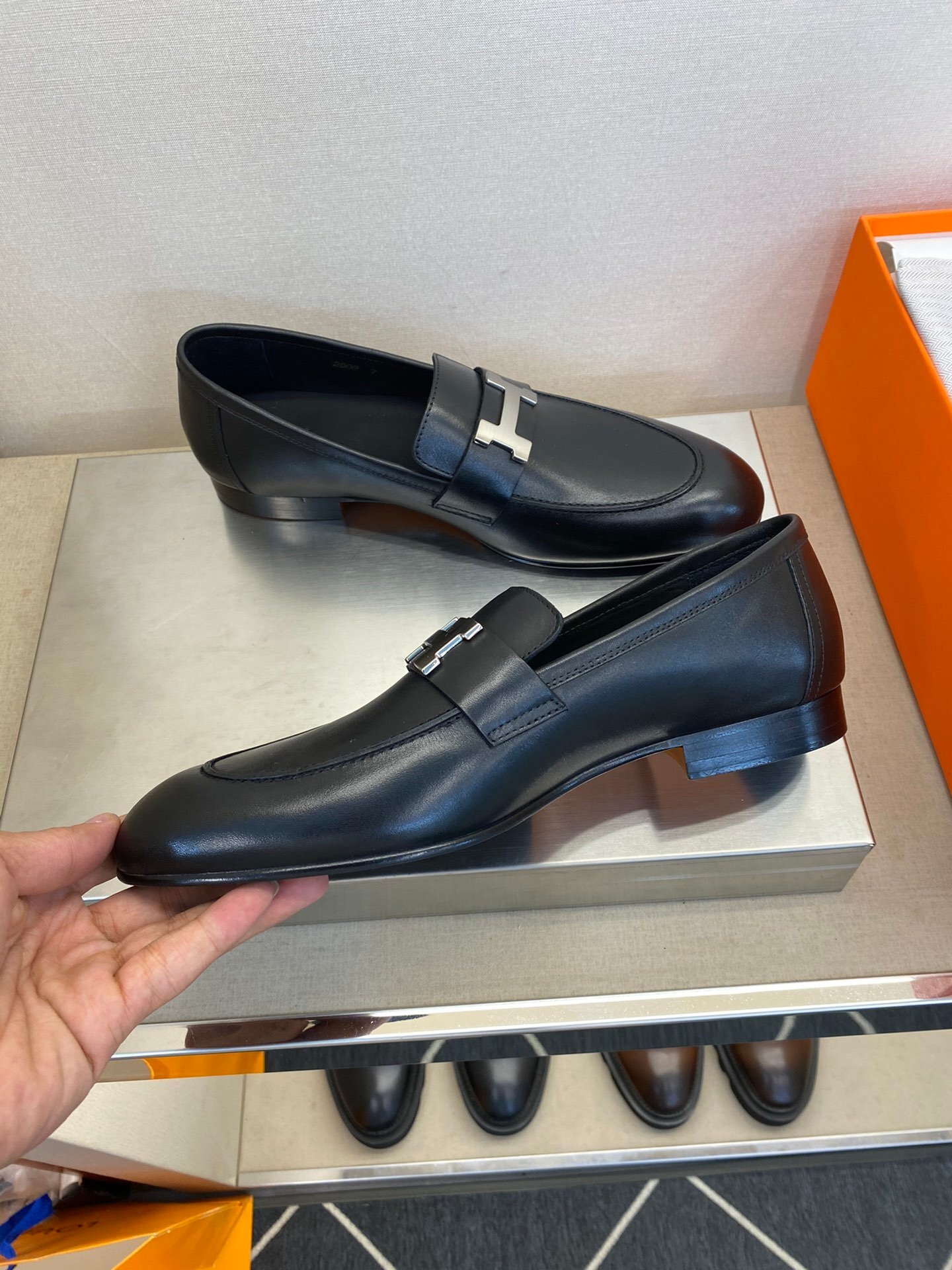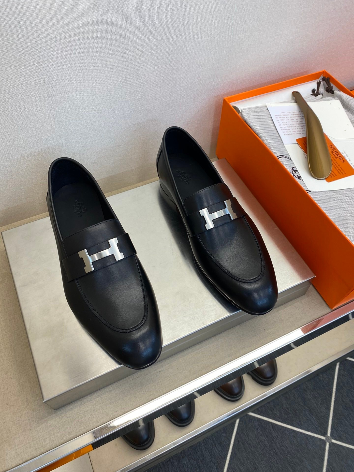 Hermes H-Buckle Black Smooth Leather Loafers- Shoes for Men