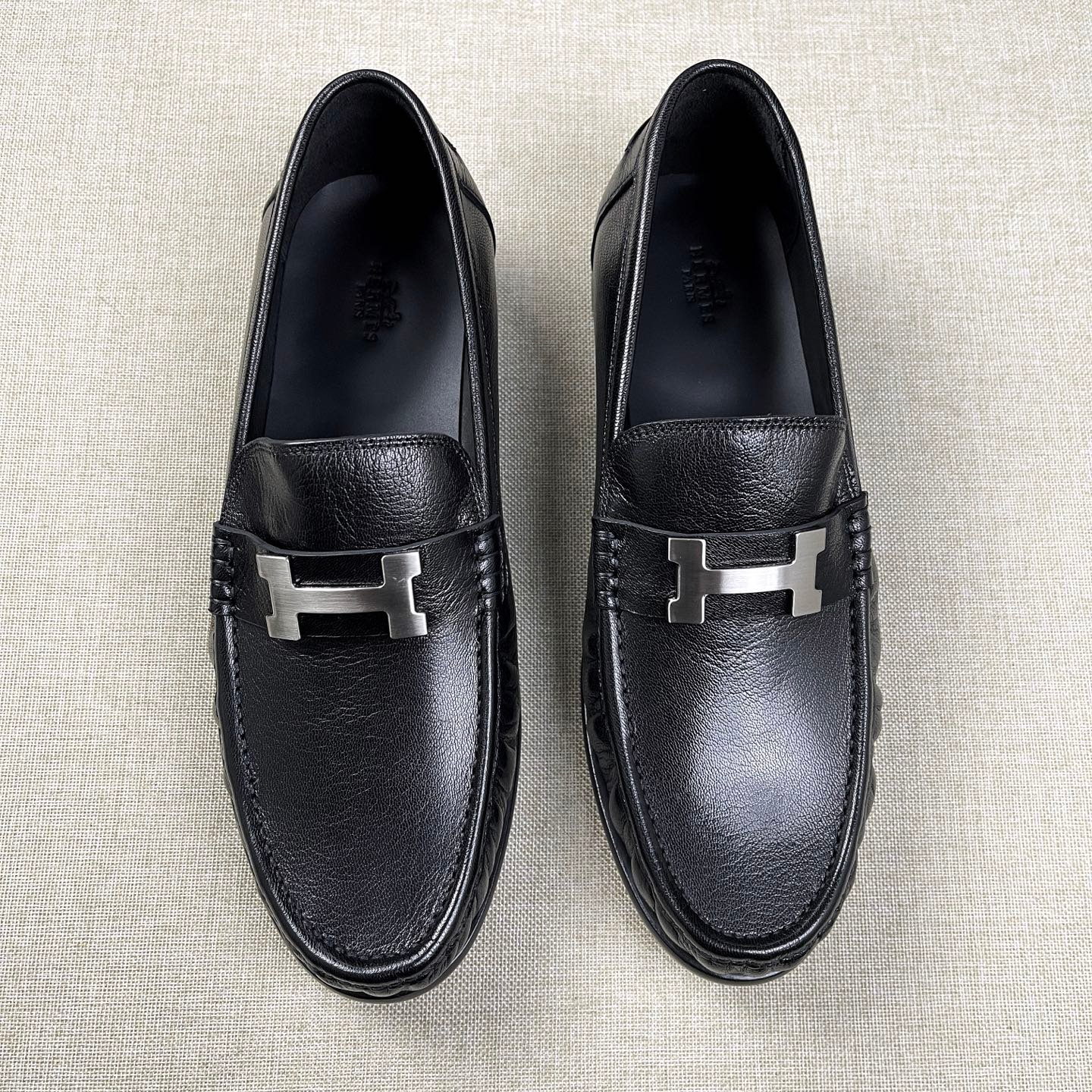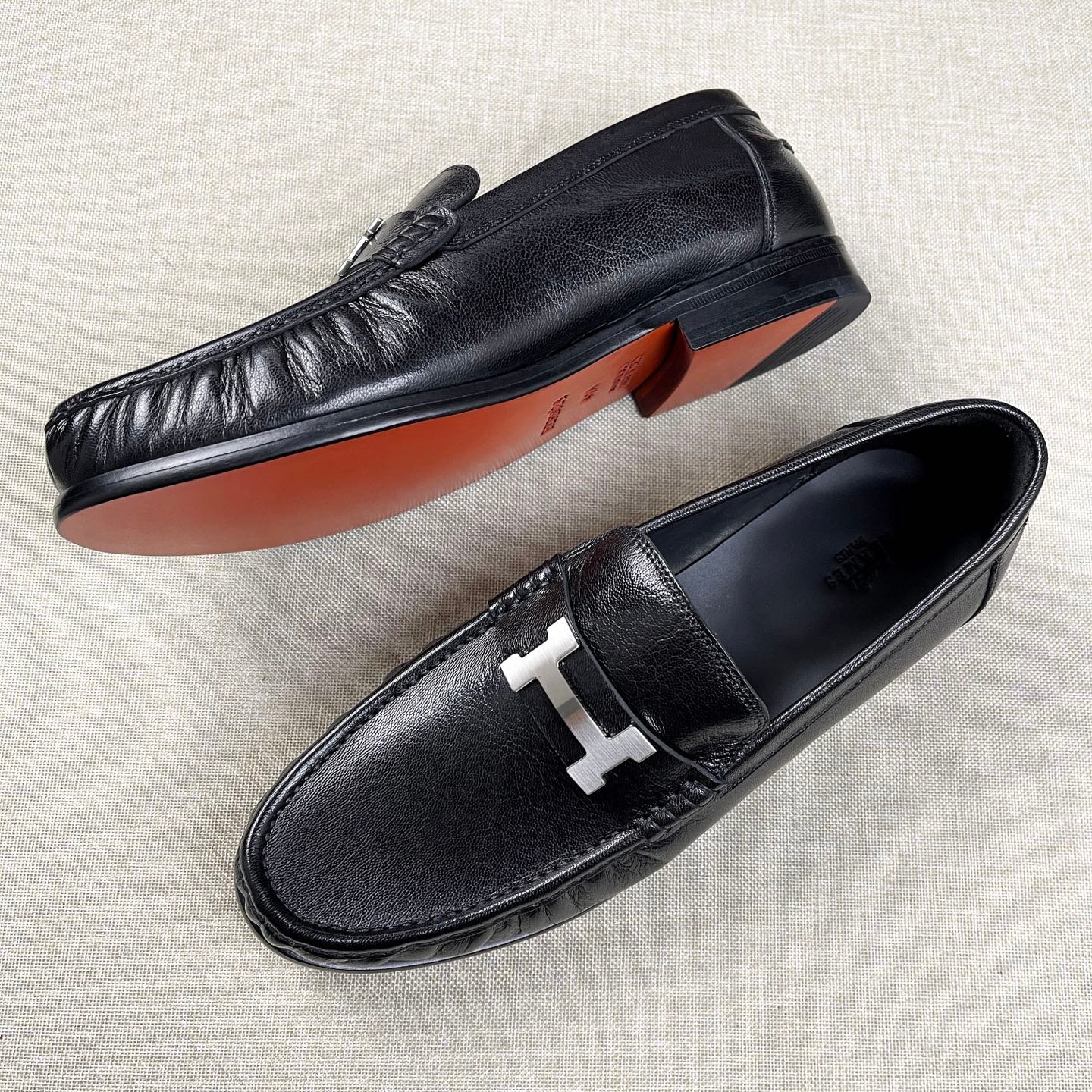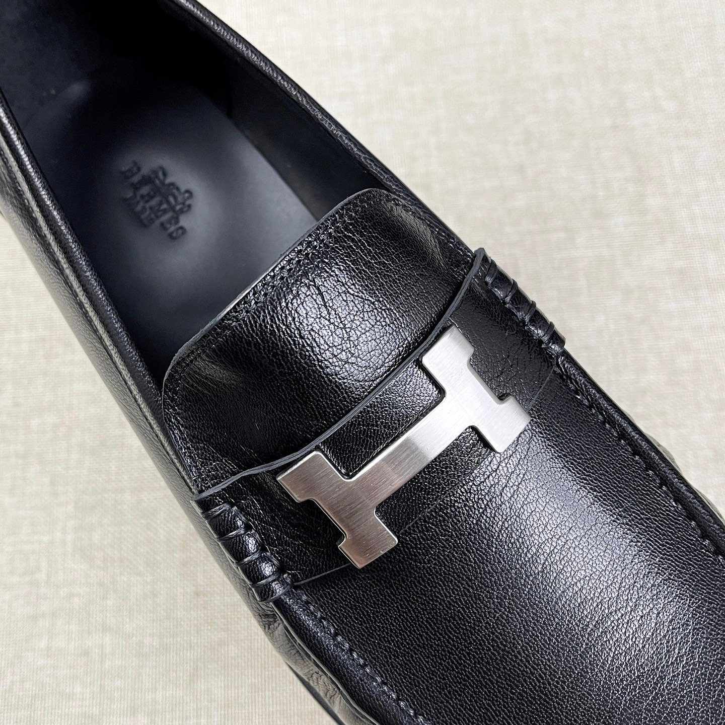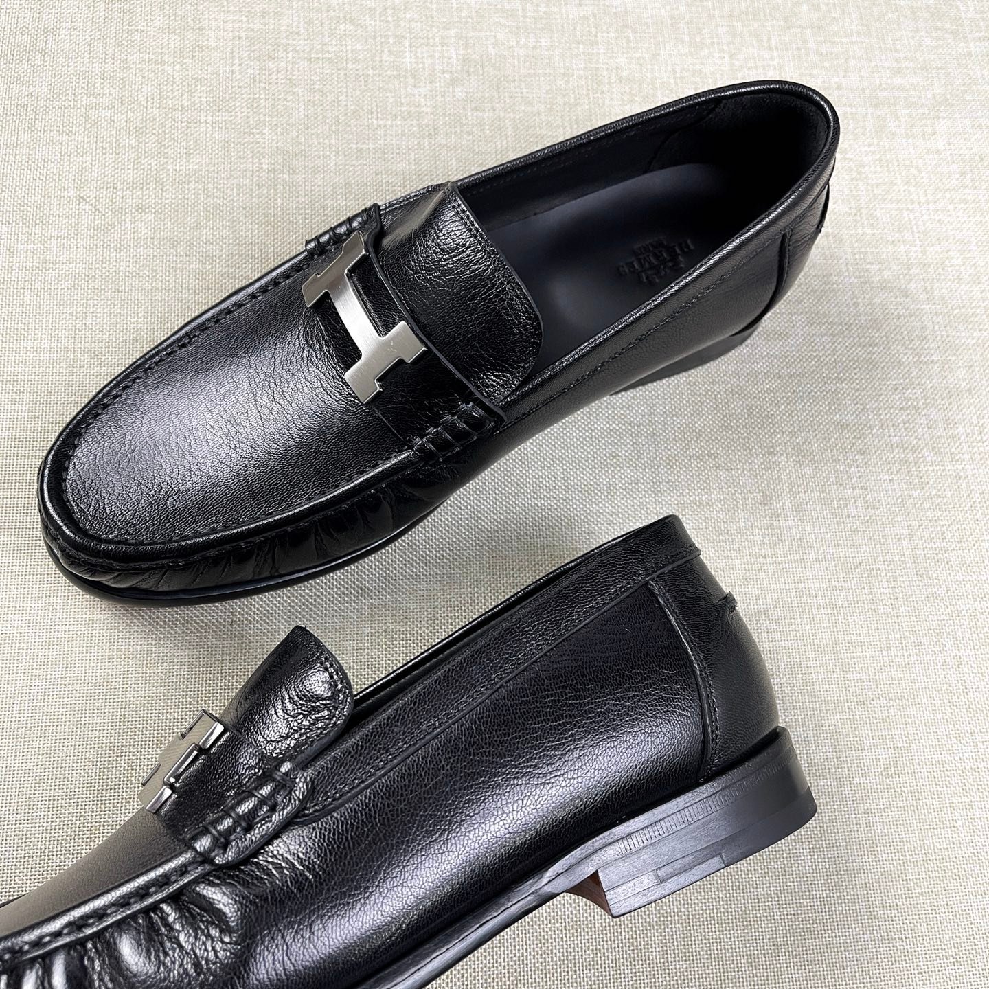 Hermès Iconic H Buckle Leather Loafers Black- Shoes for Men
