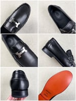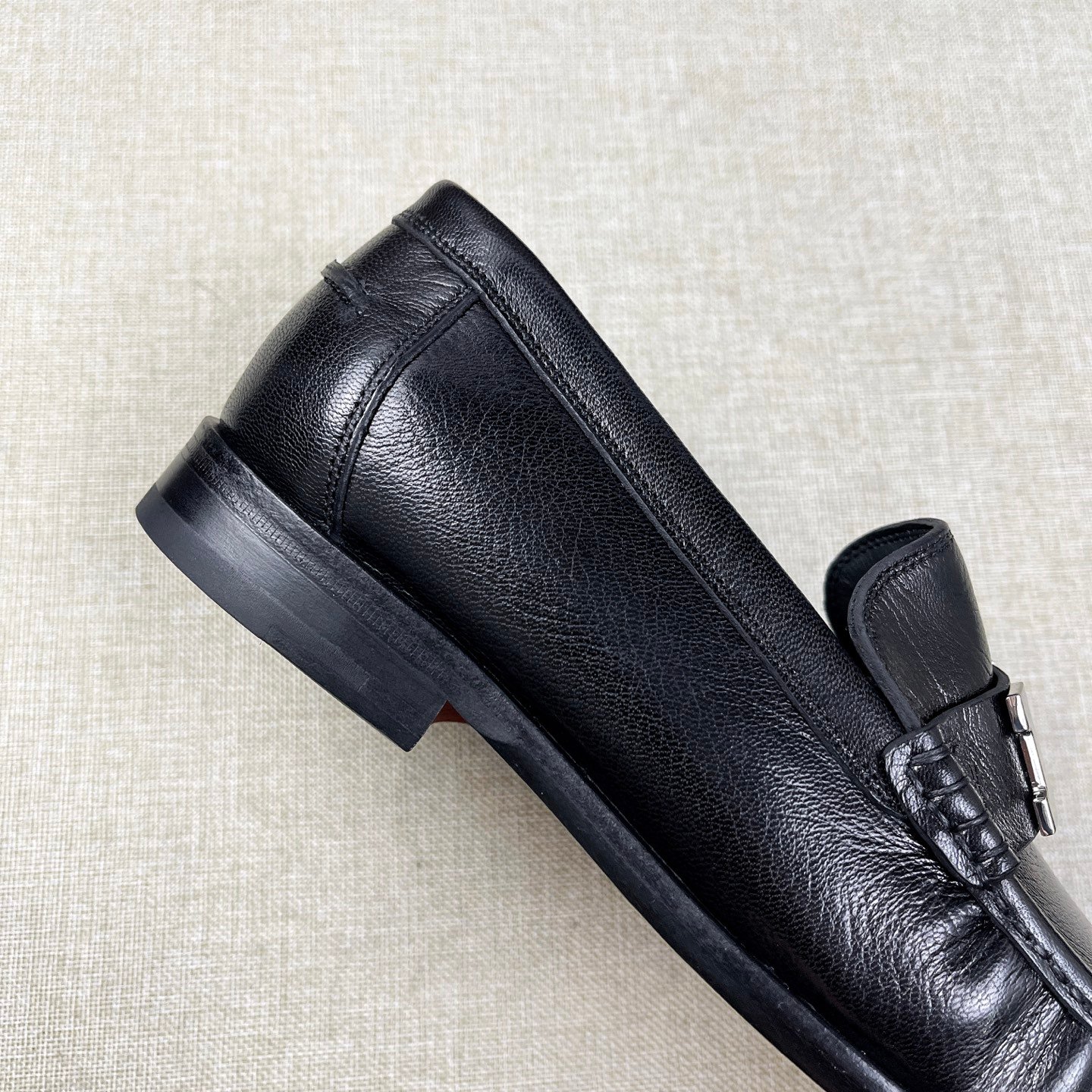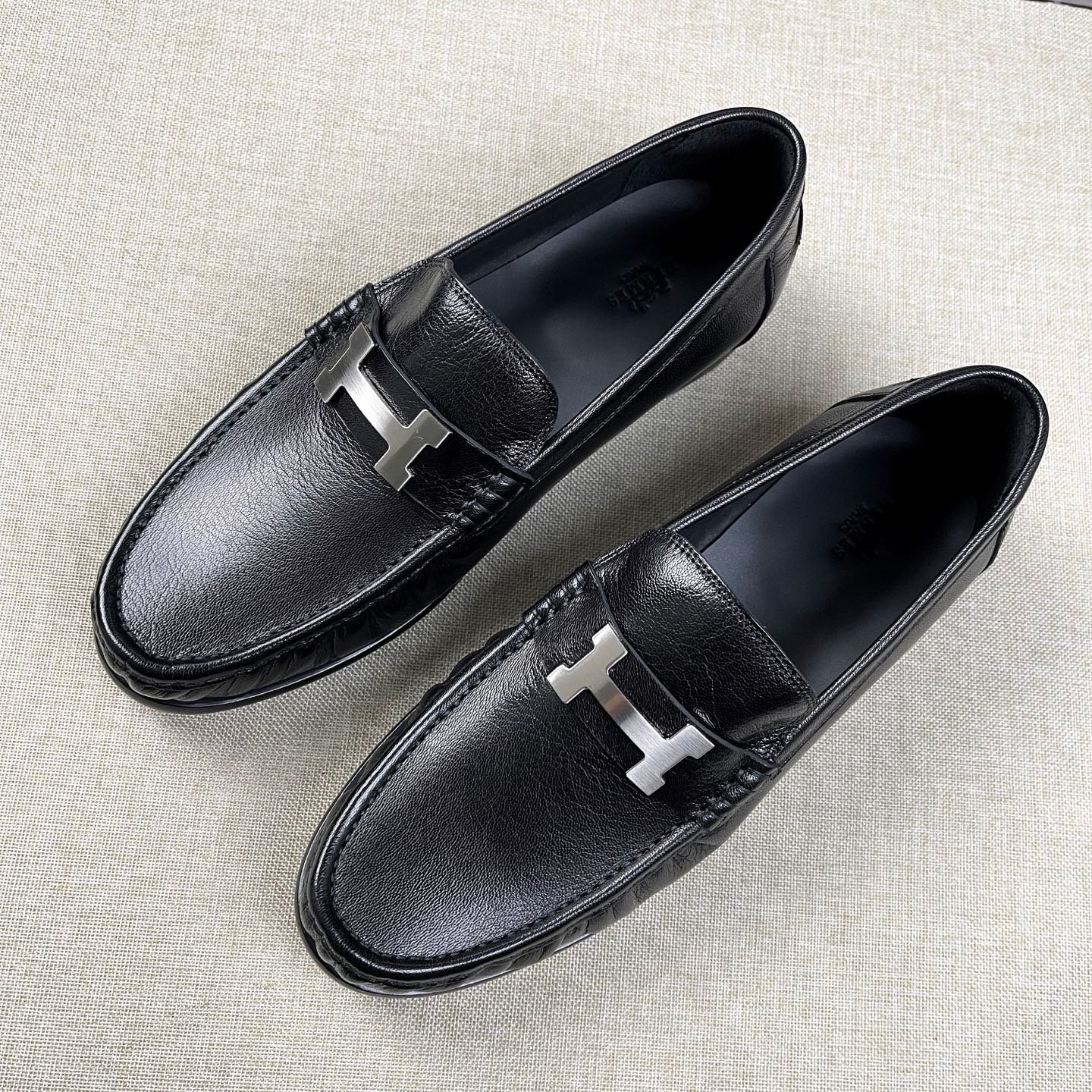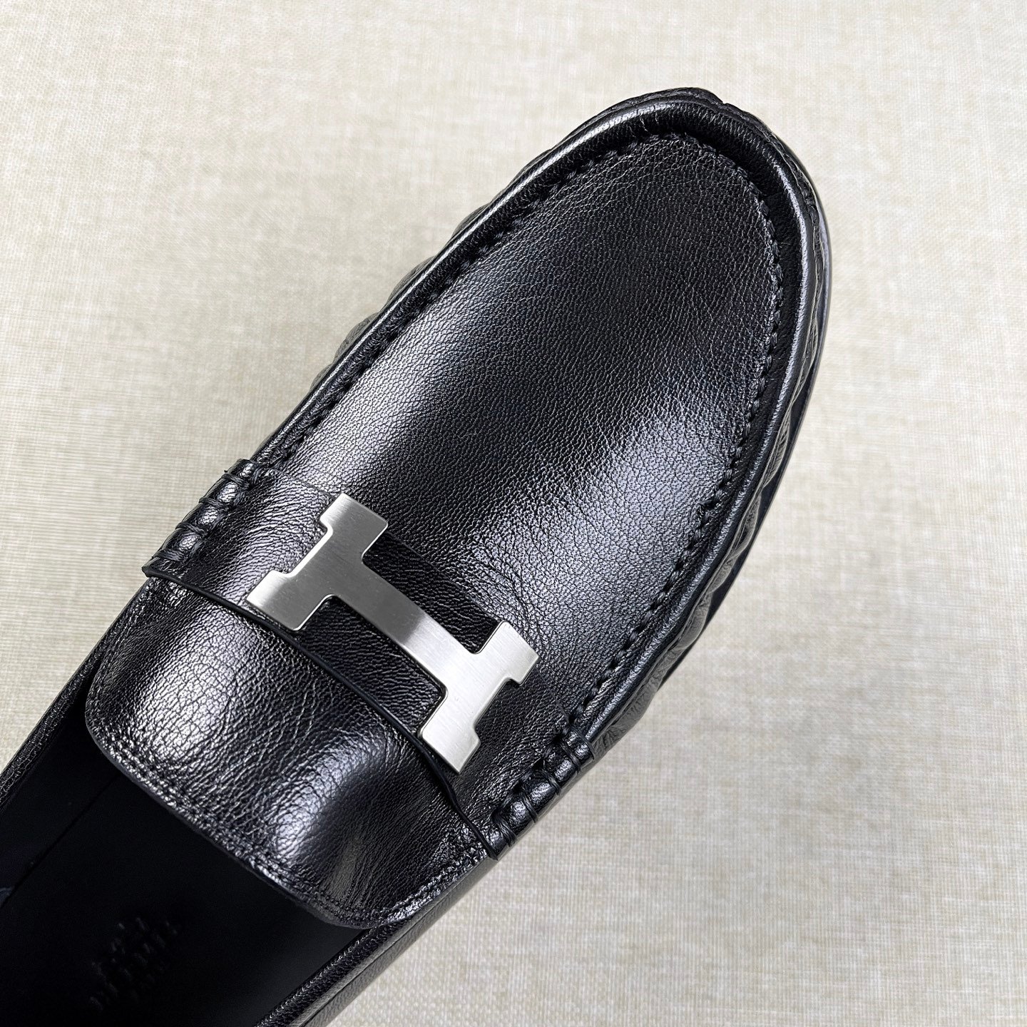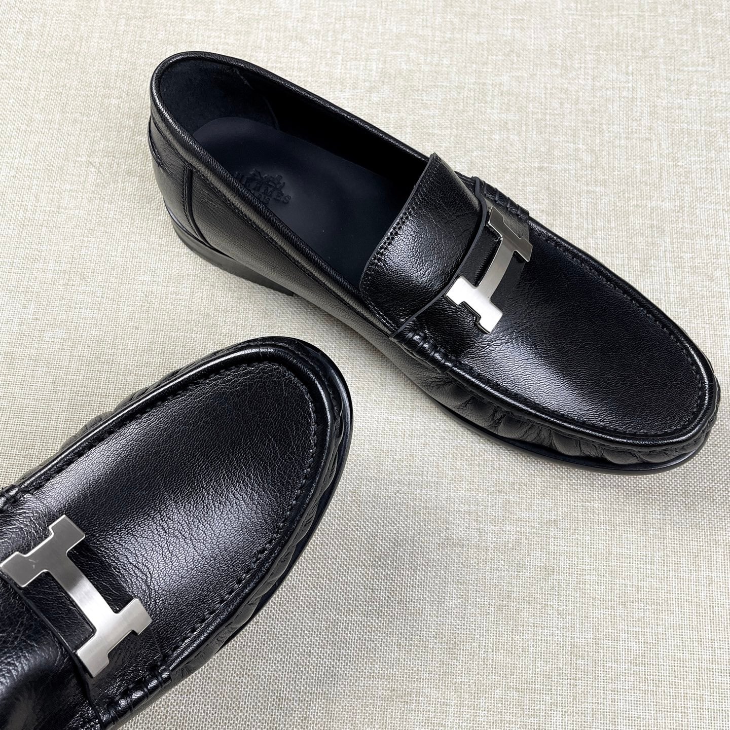 Hermès Iconic H Buckle Leather Loafers Black- Shoes for Men