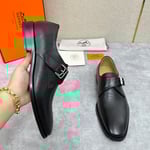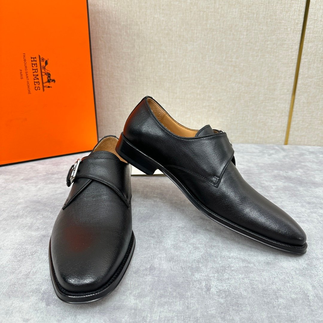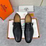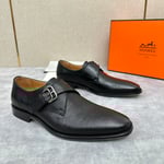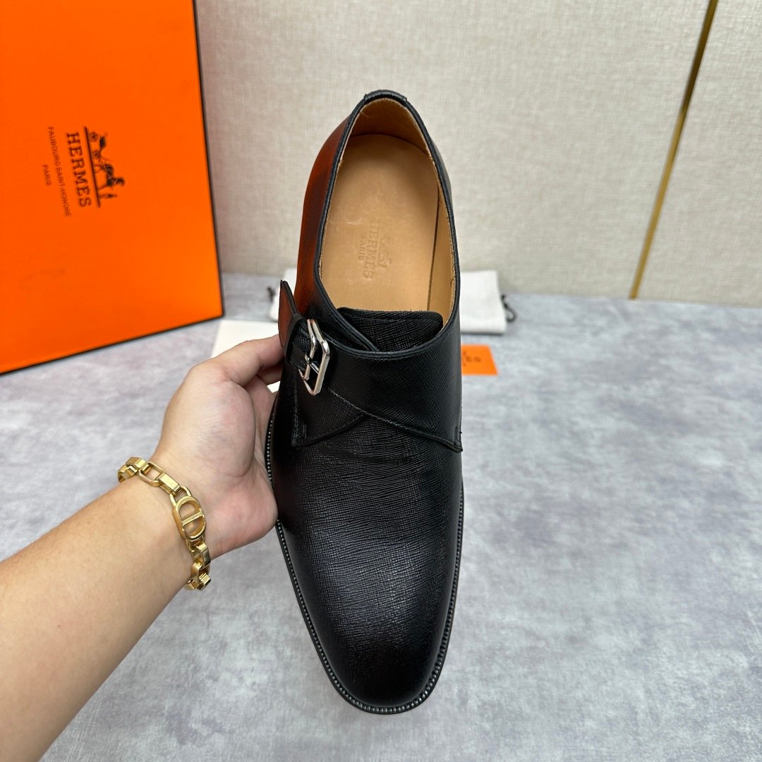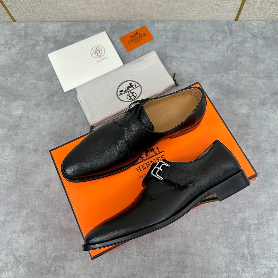 Hermès Norris Black Evercolor Leather Derby- Shoes for Men
