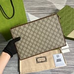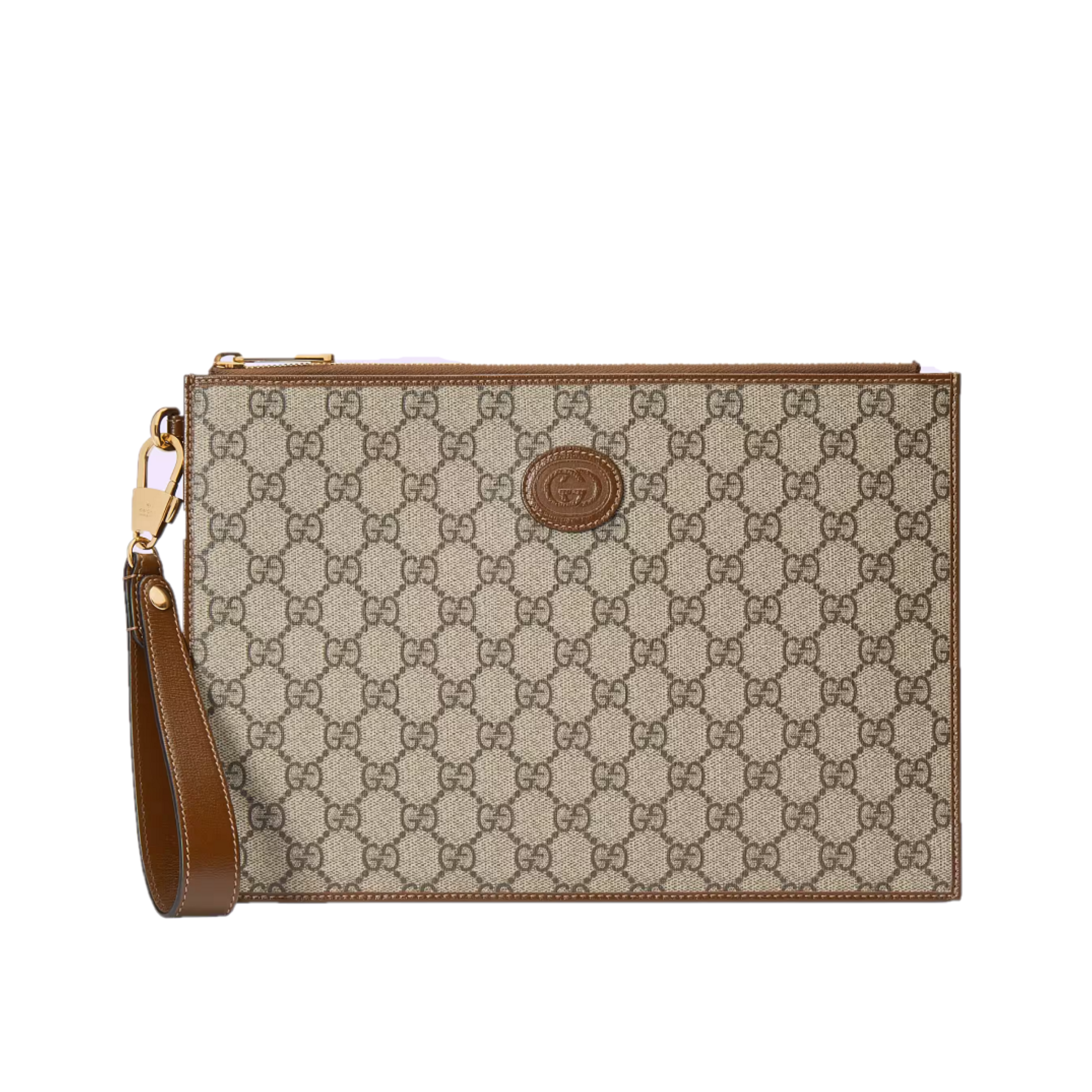 Gucci GG Wool Pouch With Interlocking G Brown 12in/31cm For Men