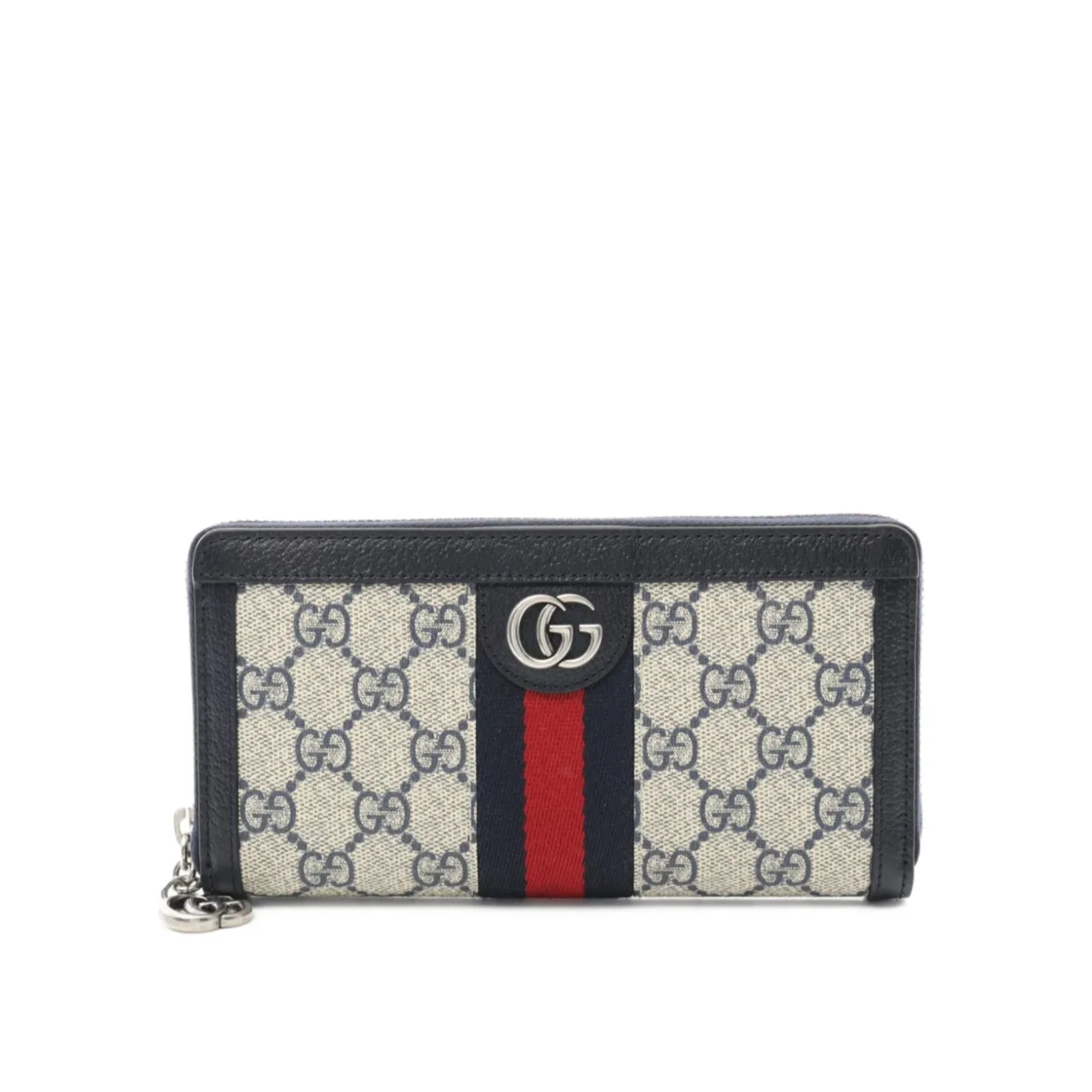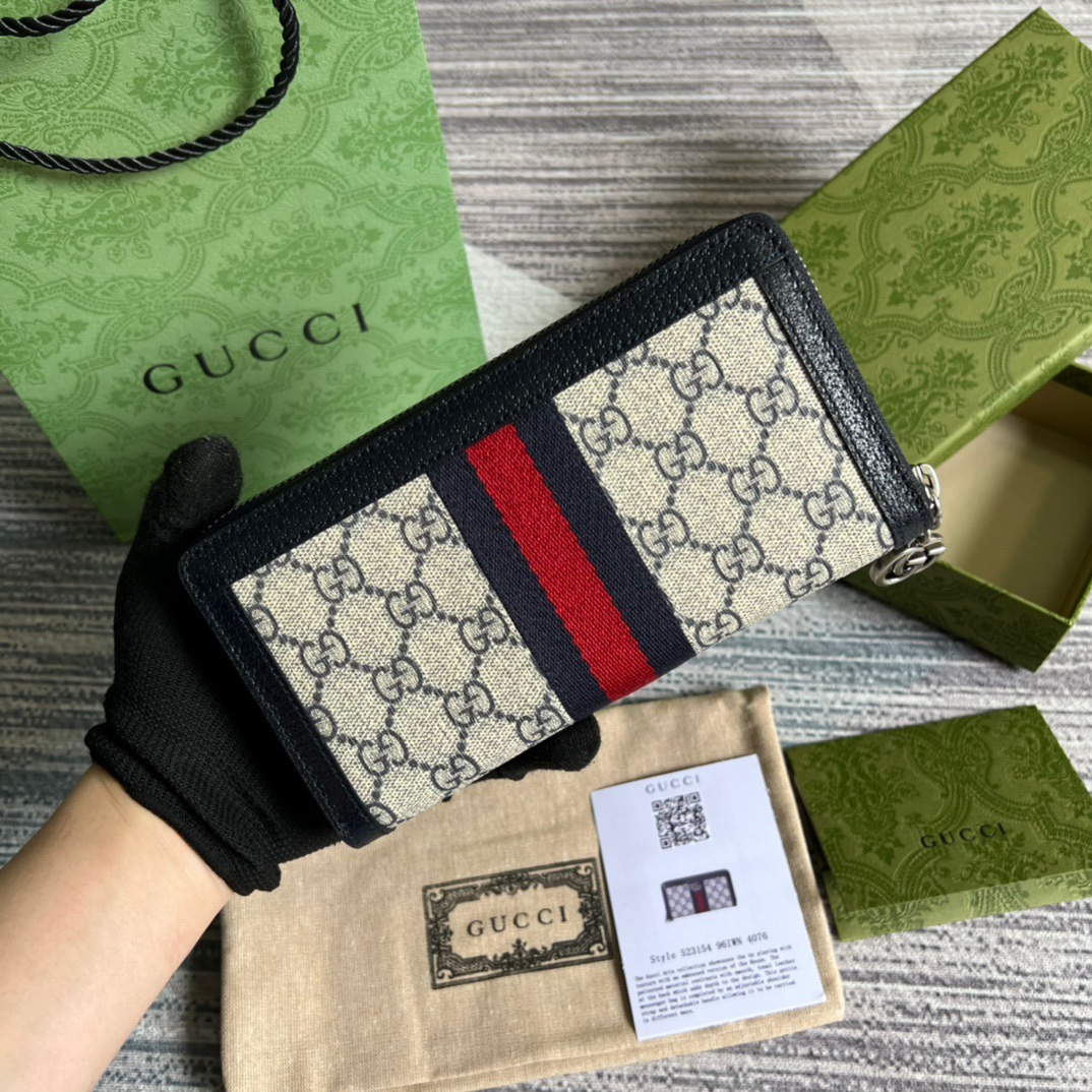 Gucci Ophidia GG Zip Around Wallet Beige With Red and Dark Blue Stripes With Silver Hardware 8in/19cm For Men