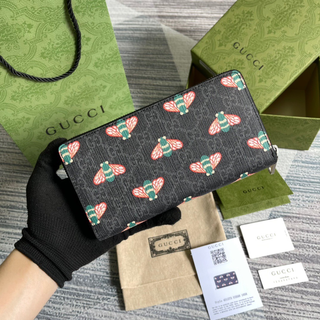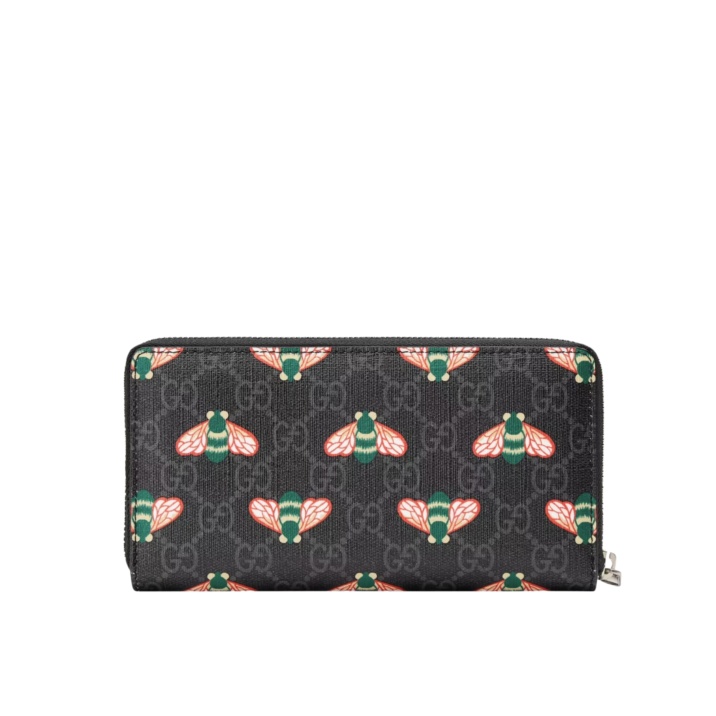 Gucci Ophidia GG Zip Around Wallet With Bee Black 7.5in/19cm For Men