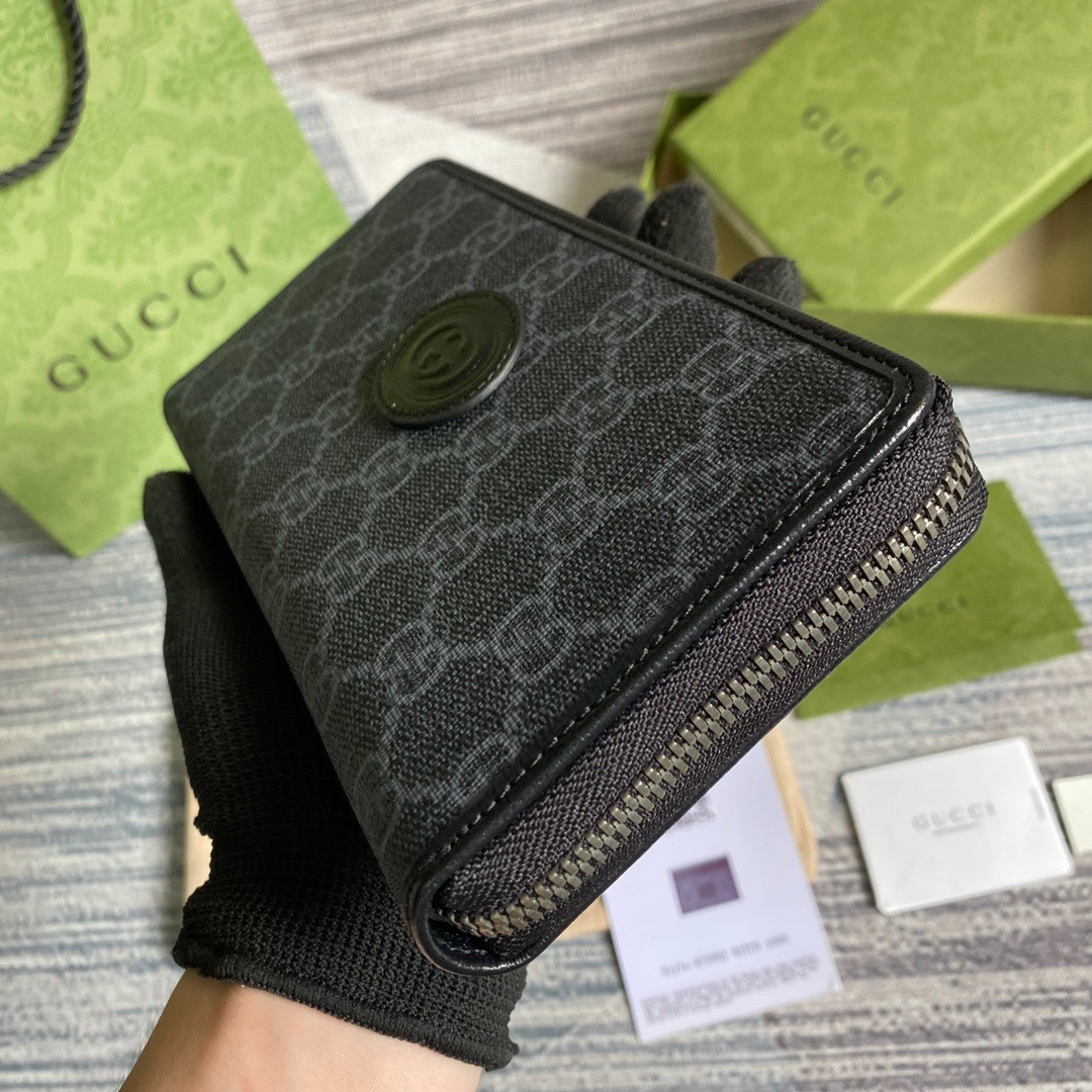 Gucci Ophidia GG Zip Around Wallet With Interlocking G Black 8in/19cm For Men