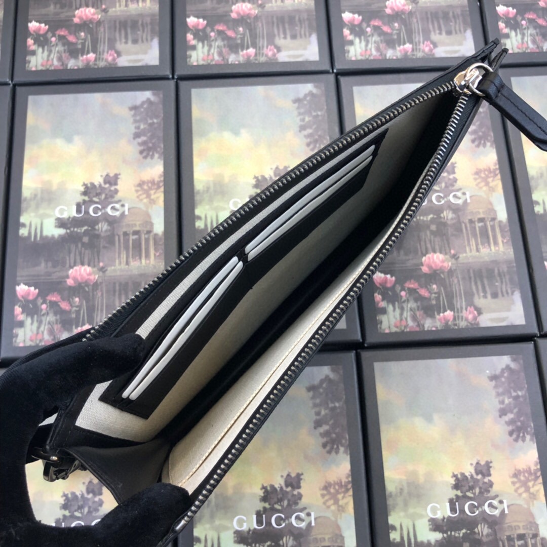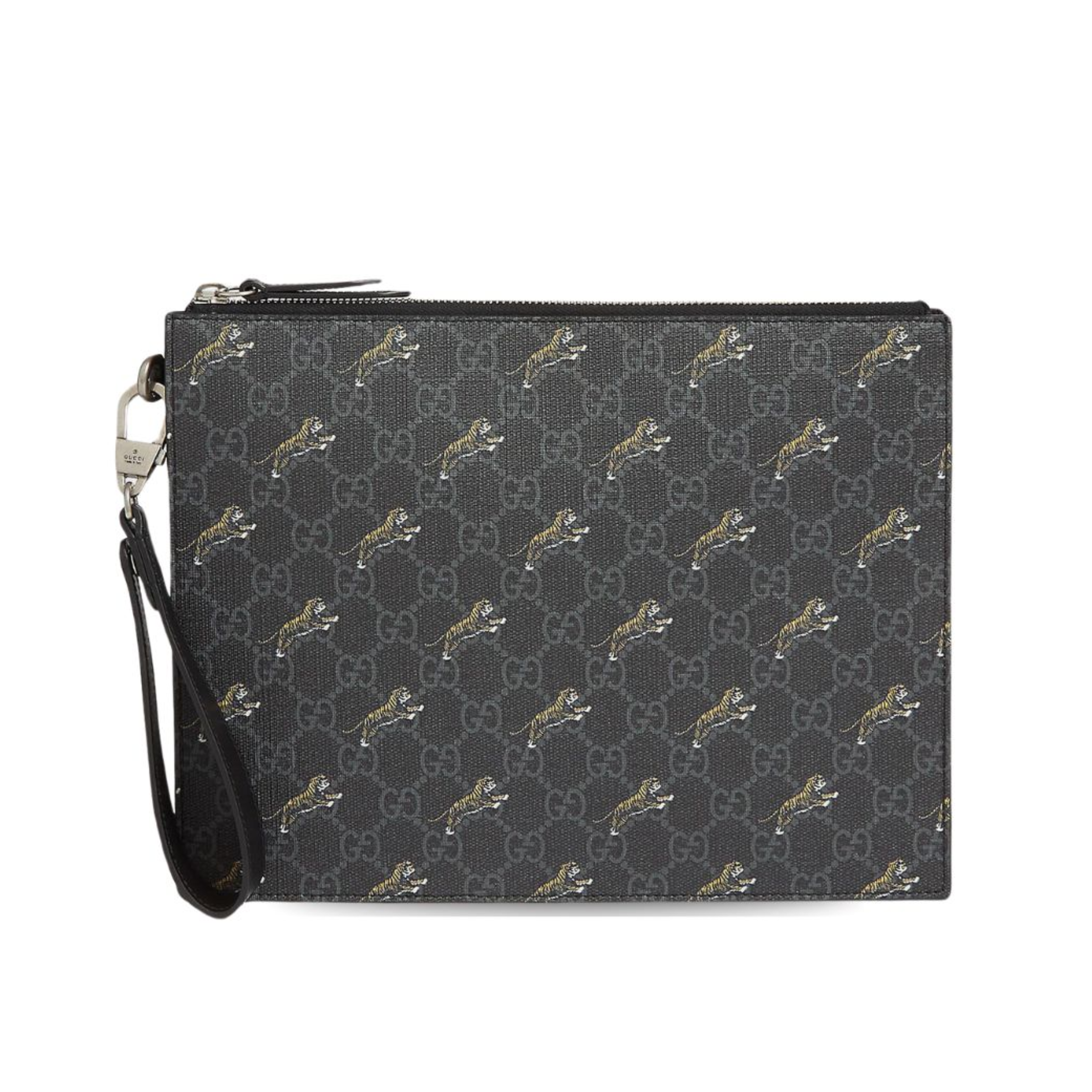Gucci Tiger Print Pouch Light Grey Black 12in/31cm For Men