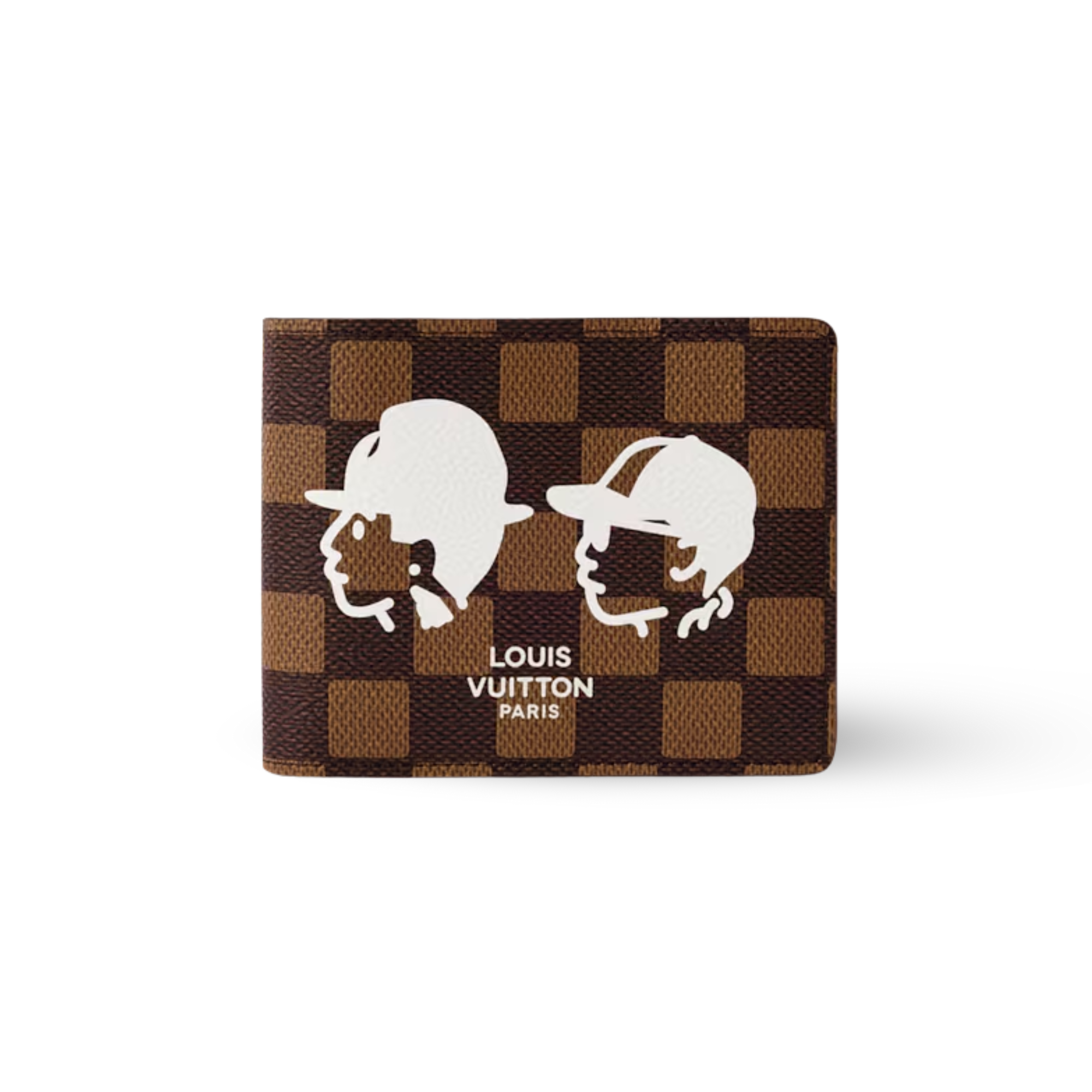 The compact Multiple Wallet is crafted from a version of Damier Ebene canvas featuring the faces of Pharrell Williams and his frequent collaborator, Nigo, celebrating their long-term friendship and frequent collaborations. Small enough to fit into almost any pocket, the Multiple Wallet offers numerous card slots, pockets, and compartments.