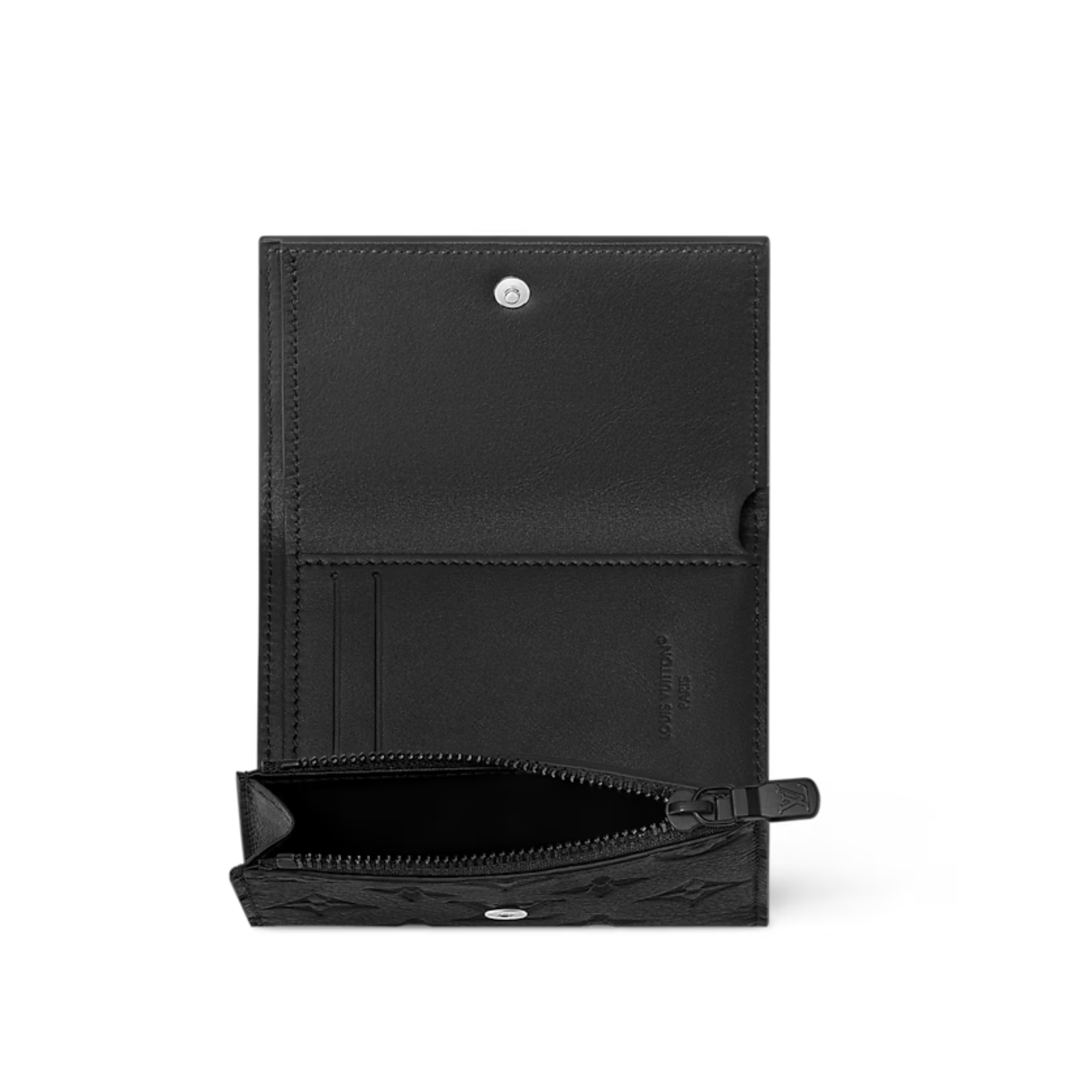 The compact Victor Wallet exudes a “luxury, elegant” feel in Monogram Shadow leather, with a subtle Monogram embossing. The Victor opens to reveal a functional interior that includes a zippered pocket, a bill and receipt compartment, and five card slots. The flap closes with a Louis Vuitton signature snap button.