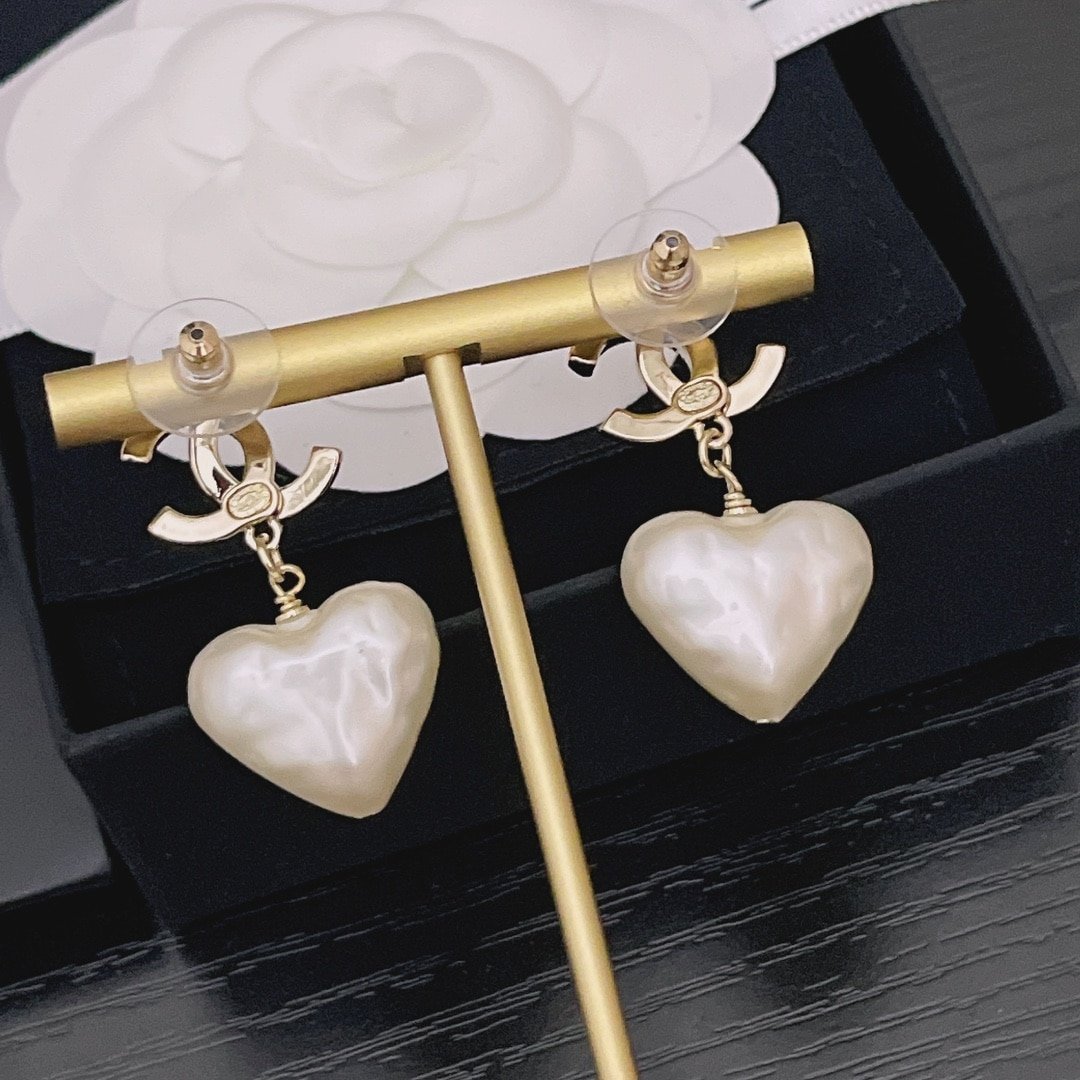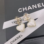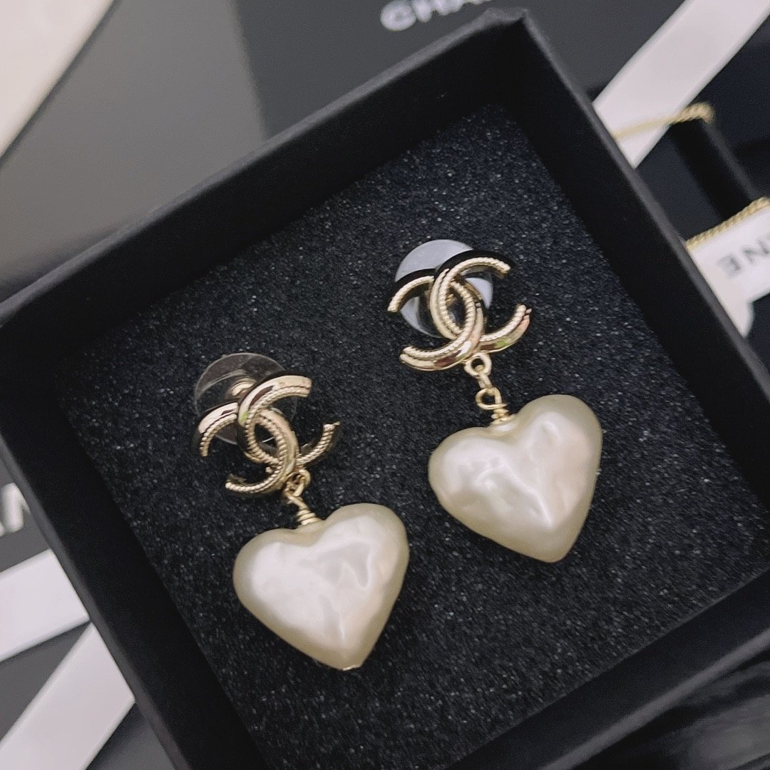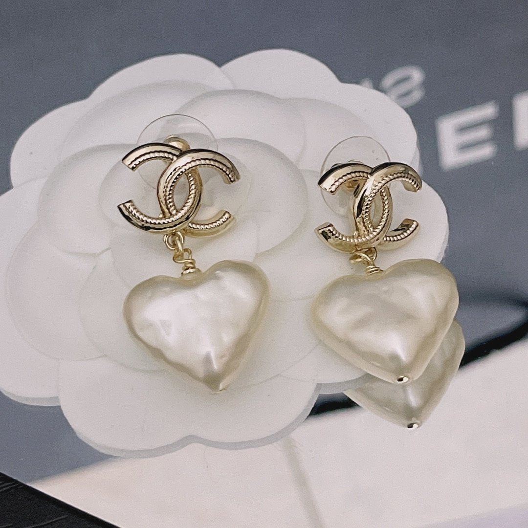 Chanel 22C Heart Pearl Pendant Cc Dangle Earrings