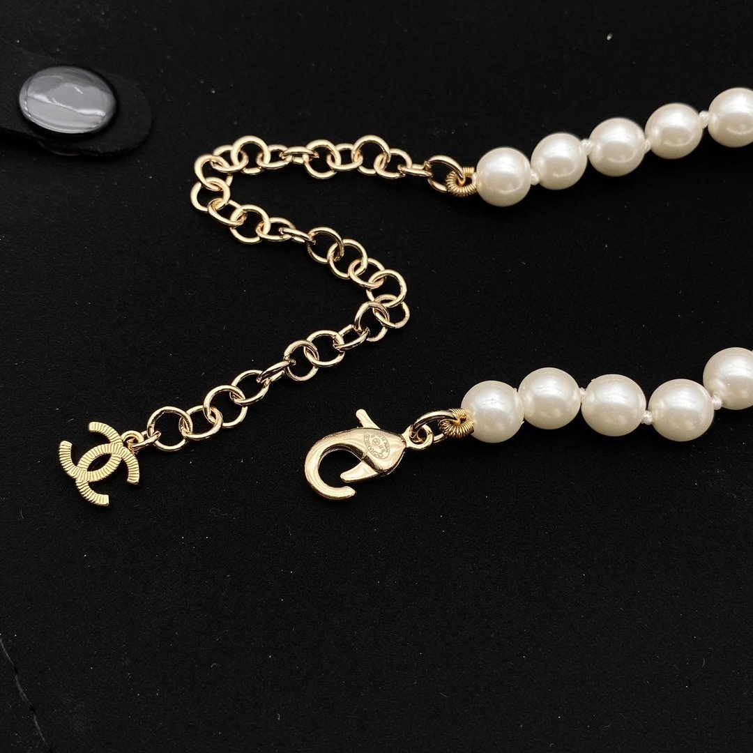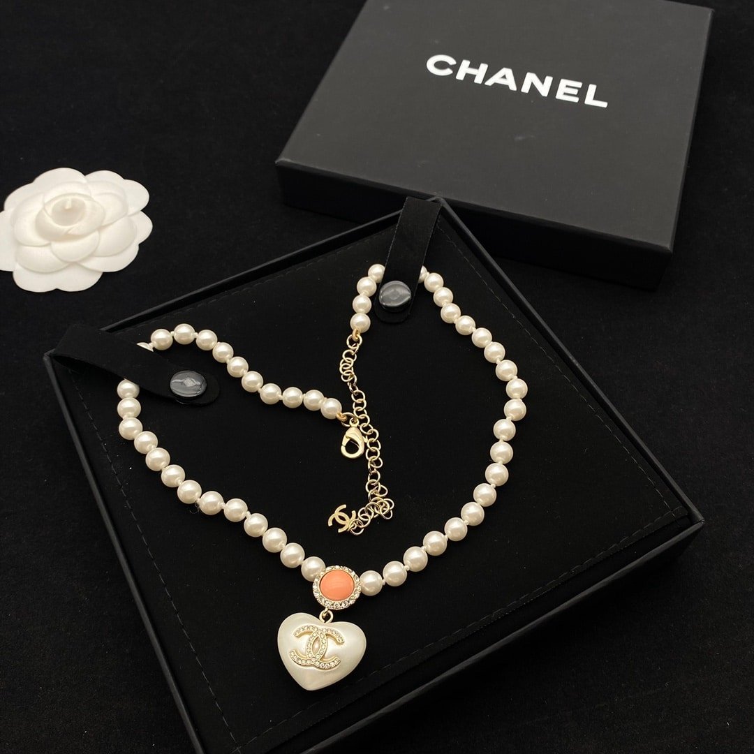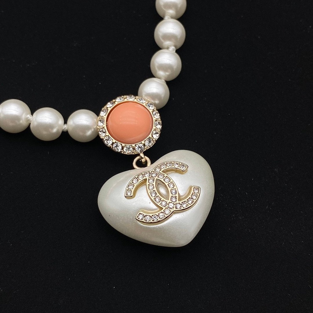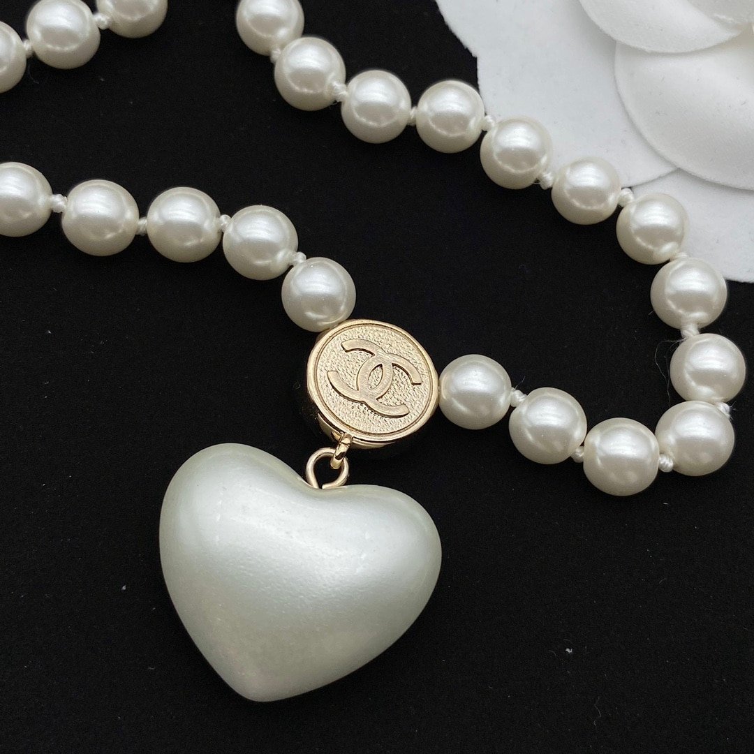 Chanel Cc Heart Pearl Necklace