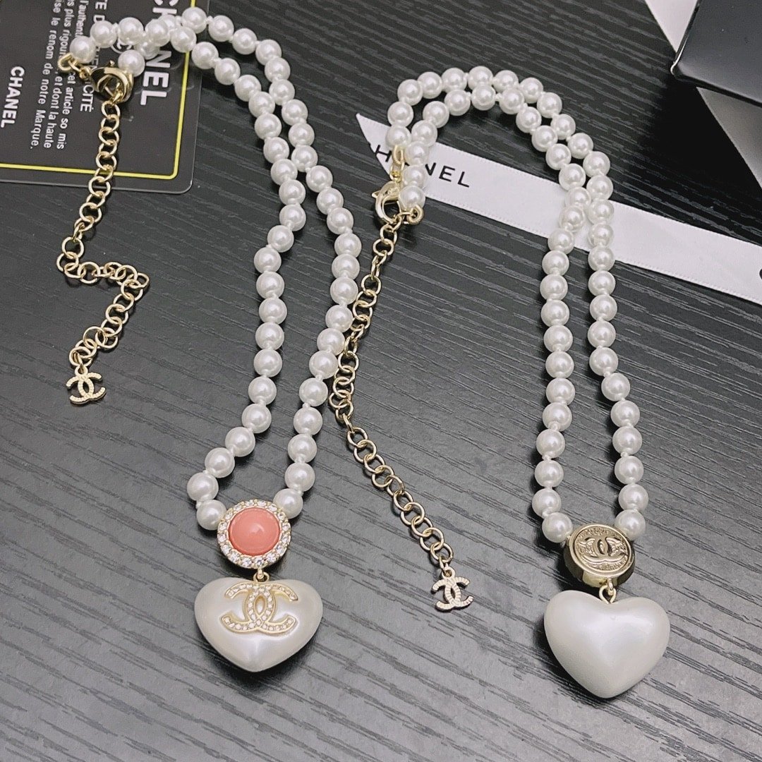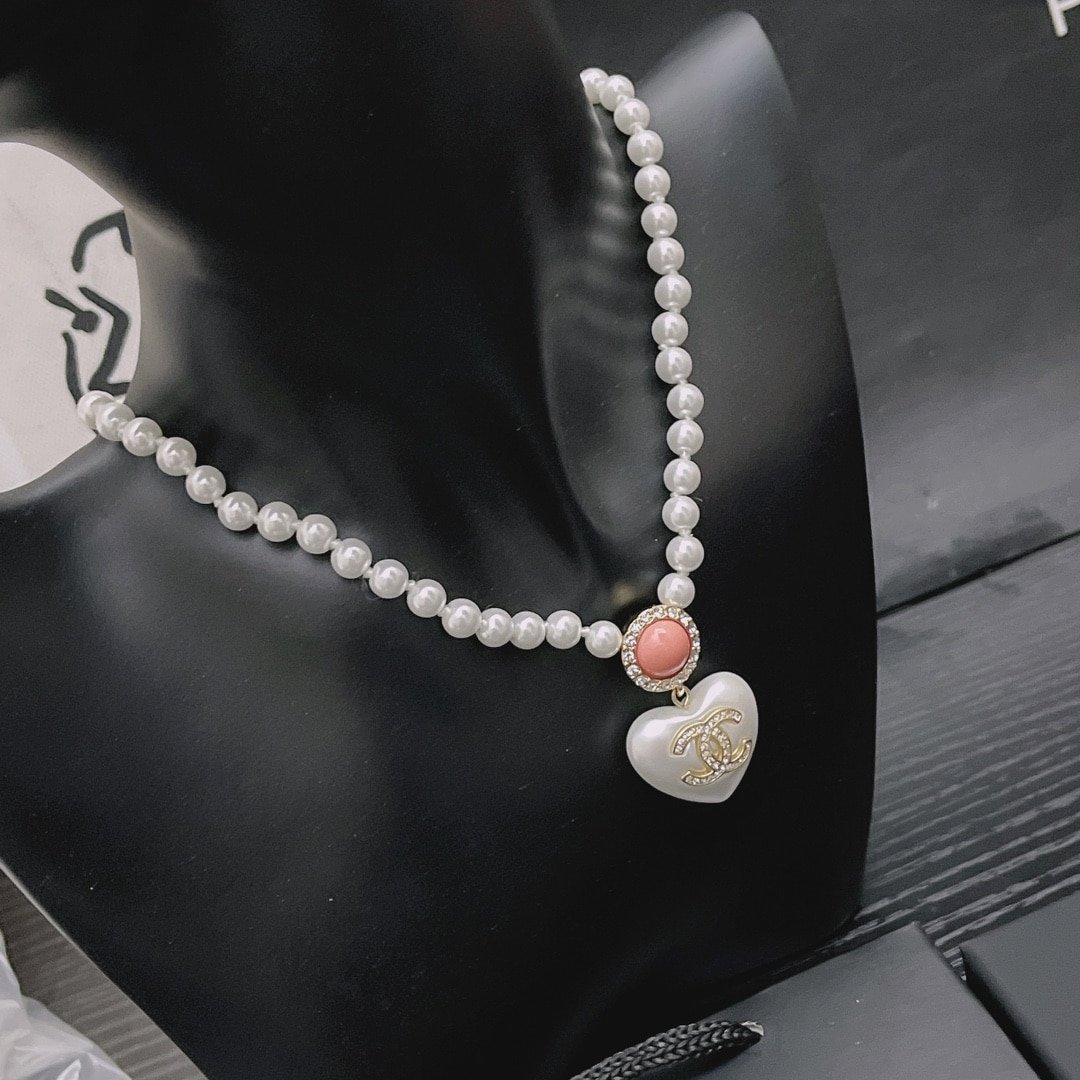 Chanel Large Heart Pearl Pink Crystal Cc Necklace