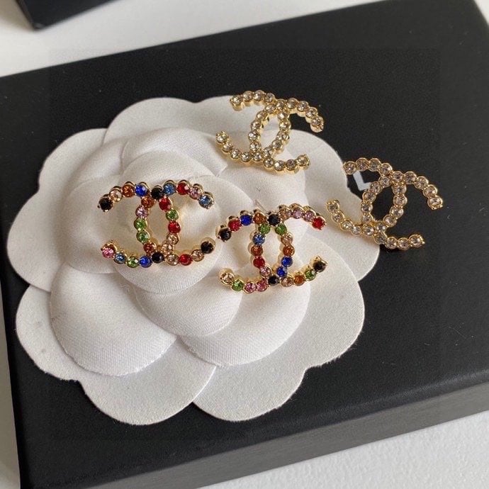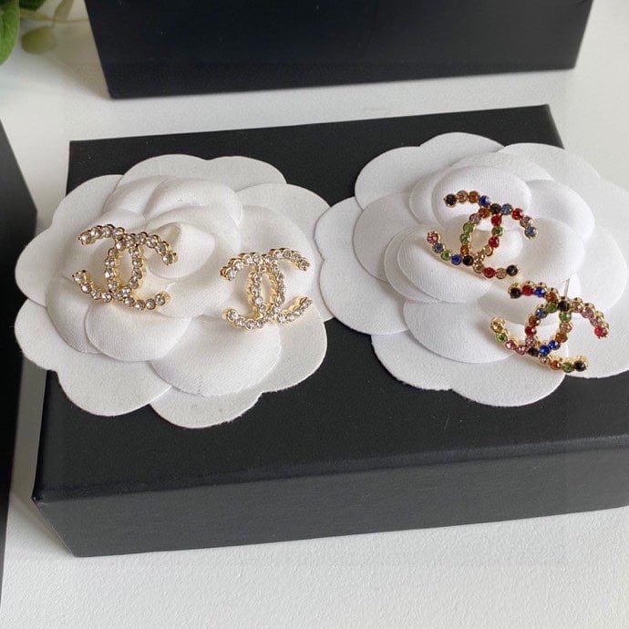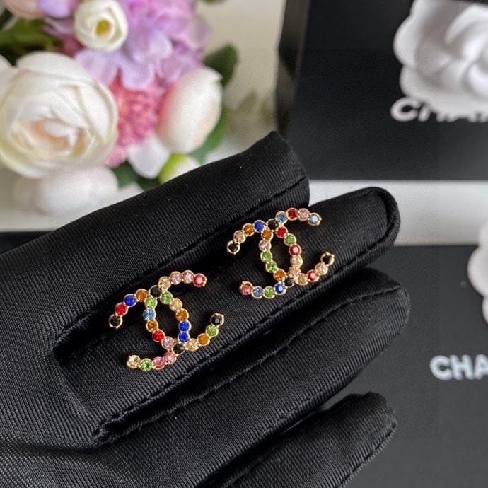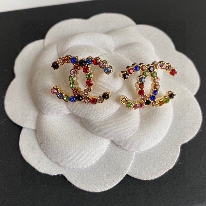 Chanel New Cc Crystal Multi Color Stud Earrings