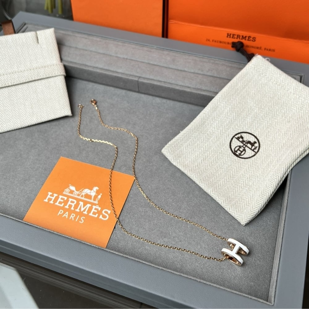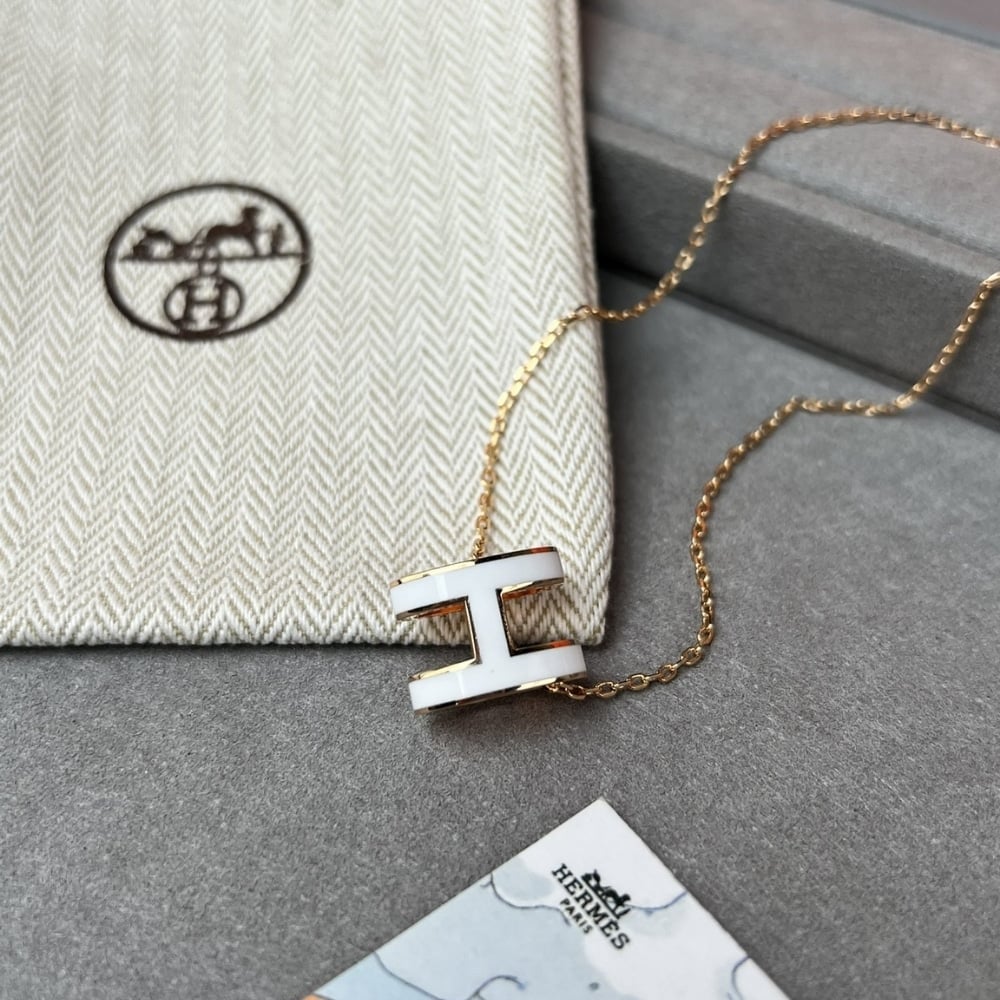 Hermes Mini Pop H Pendant Necklace White And Gold