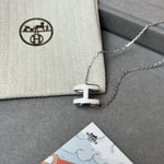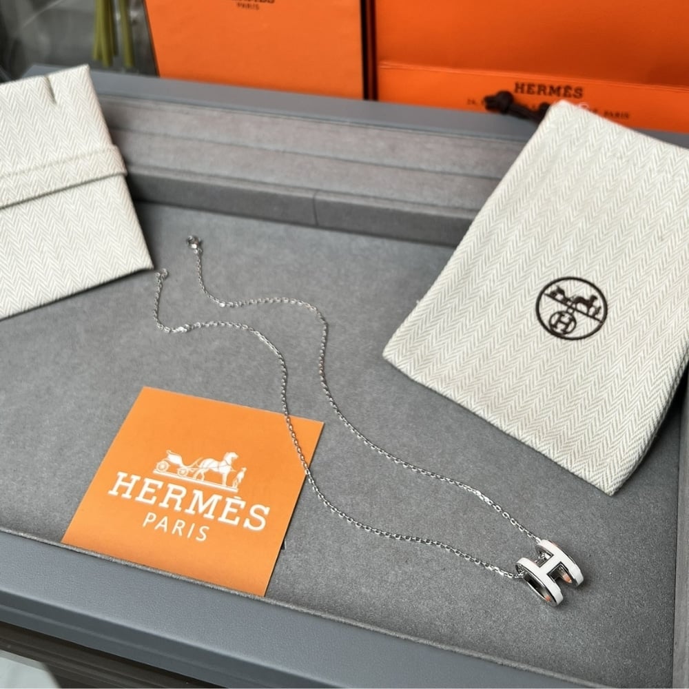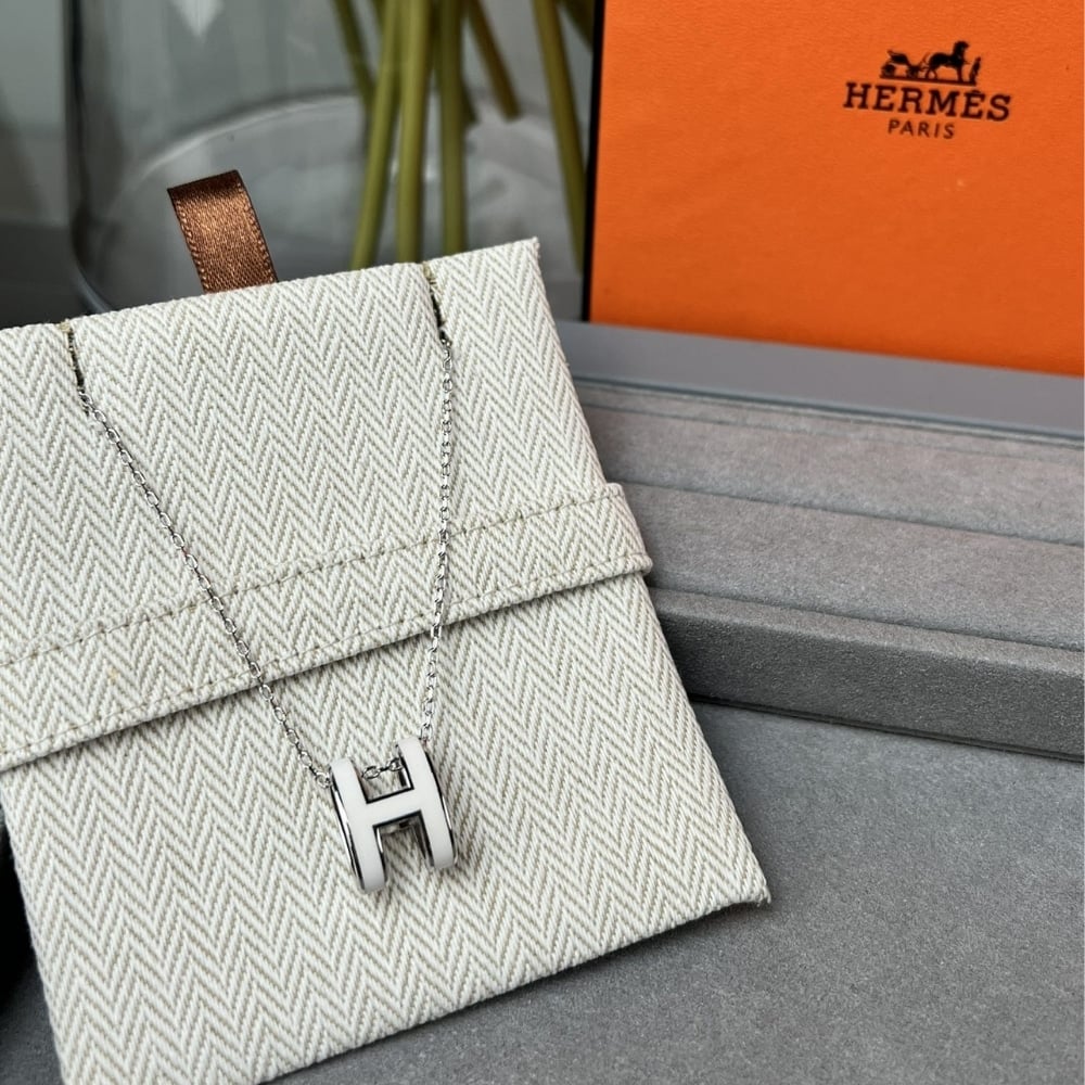 Hermes Mini Pop H Pendant Necklace White And Silver
