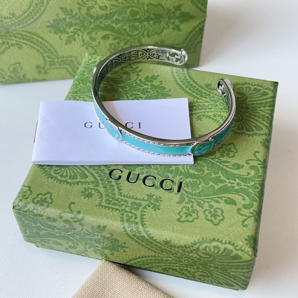 Gucci Cuff Bracelet Interlocking Gg Sterling Silver Turquoise Enamel