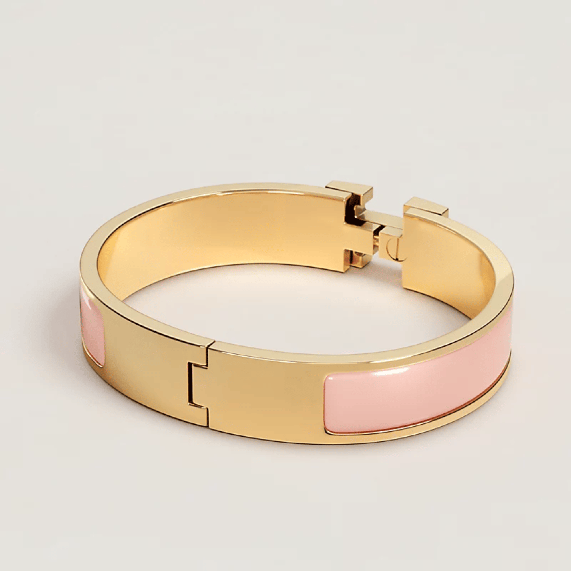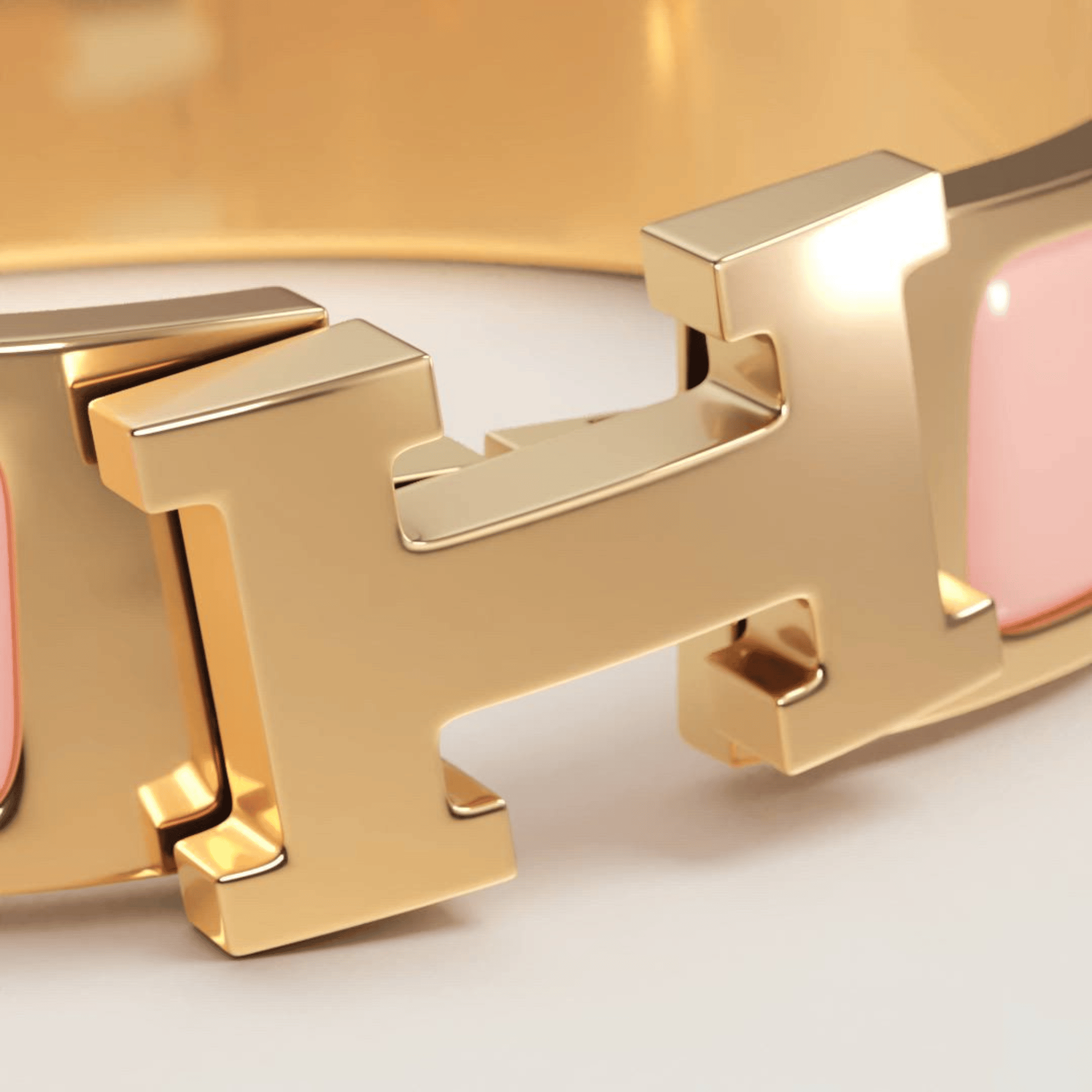 Home Shop Jewelry By Brand Hermes Jewelry Hermes Clic H Bracelet in Gold and Pink