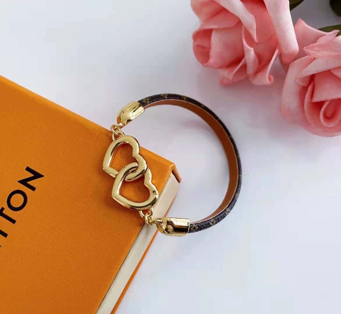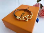 Louis Vuitton Leather Twice Gold Heart Bracelet