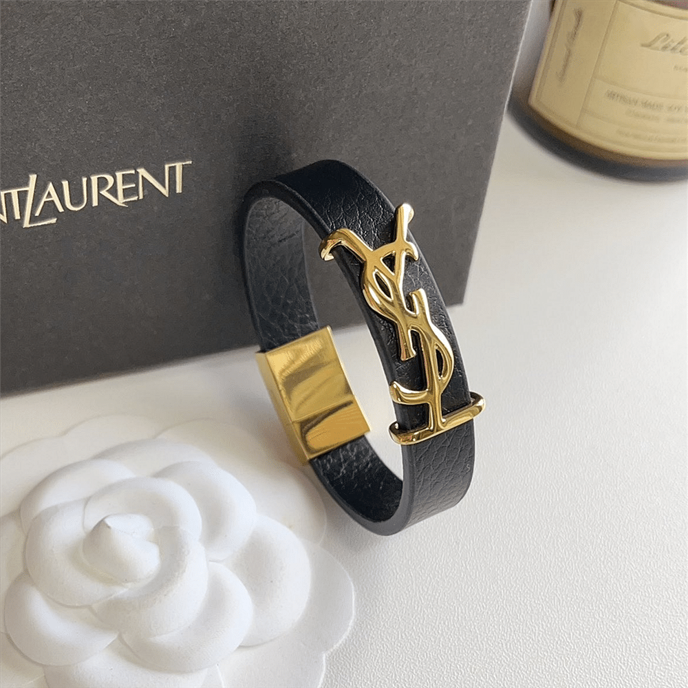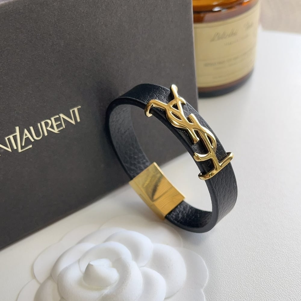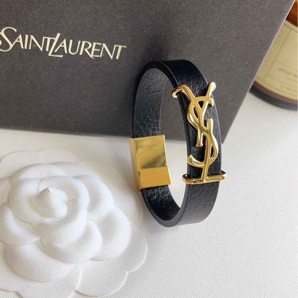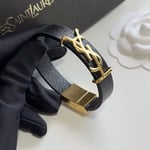 Saint Laurent Ysl Opyum Leather Bracelet Black