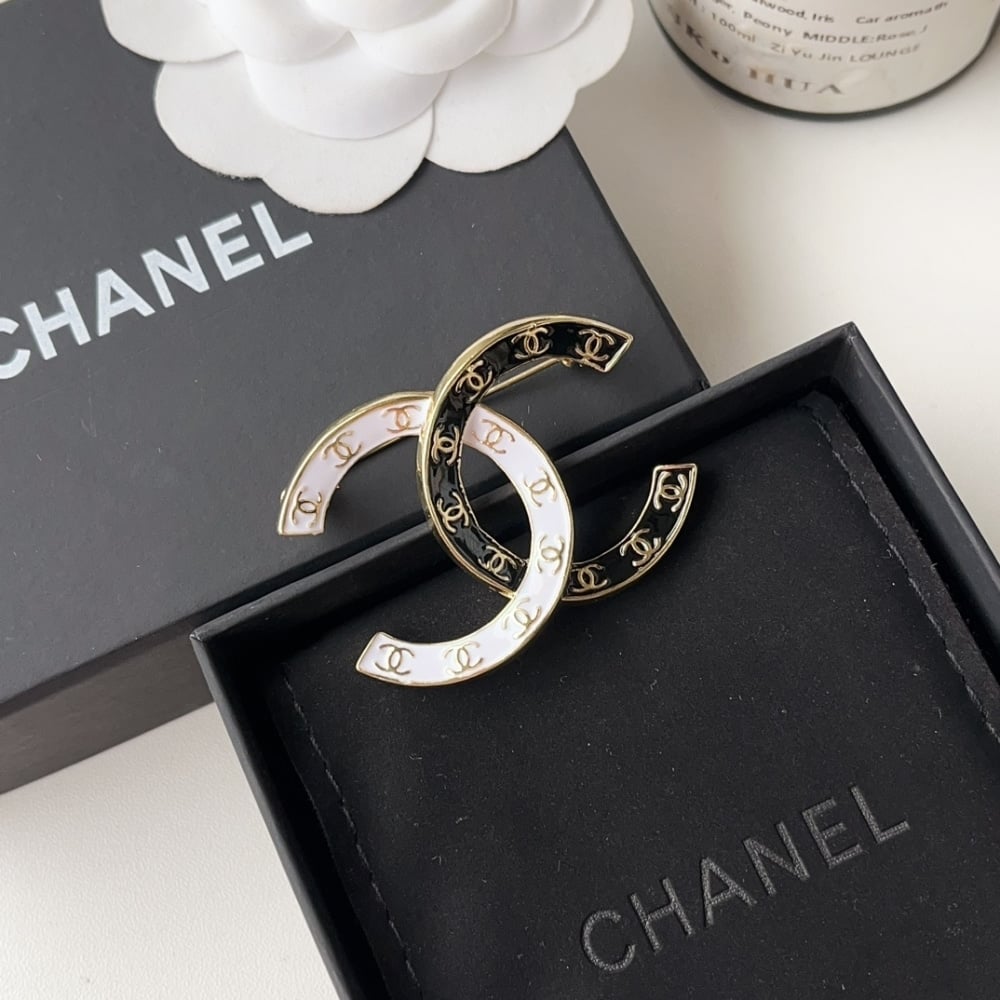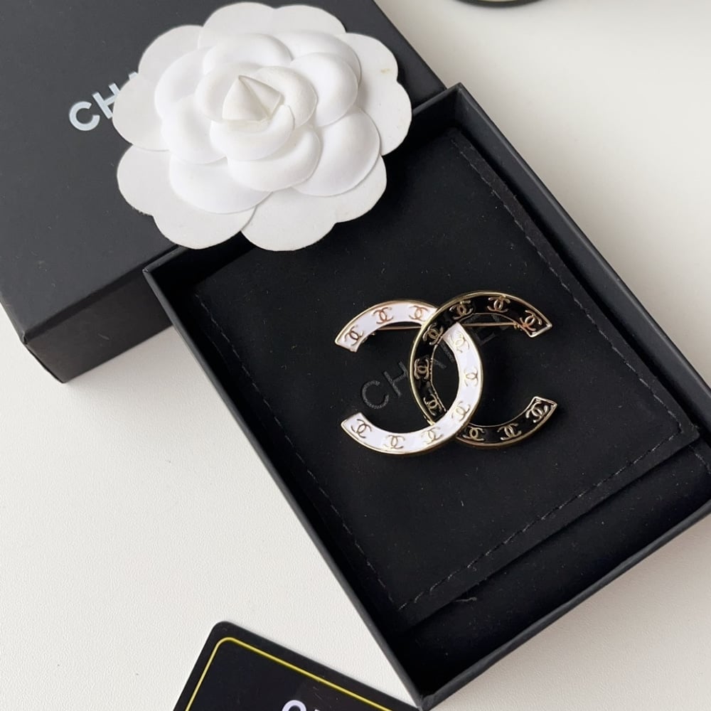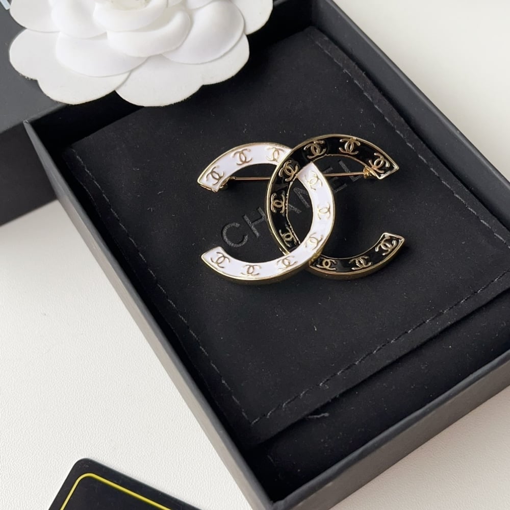 Chanel Cc Brooch Black And White