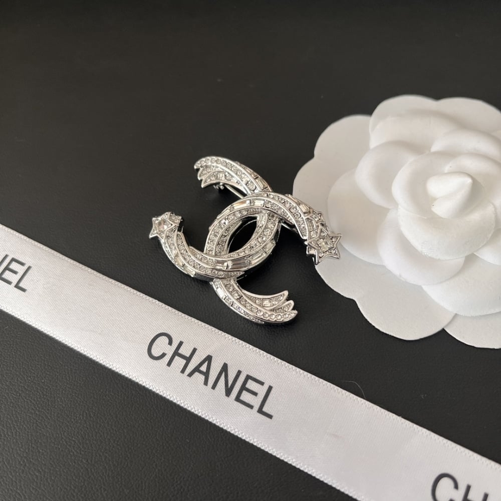 Chanel Cc Brooch Silver With Stones Attached And Two Stars
