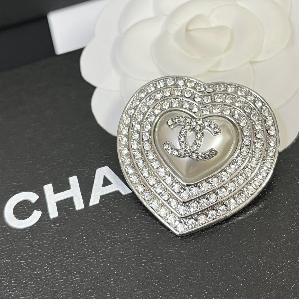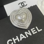 Chanel Cc Heart Brooch Silver With Pearl Heart